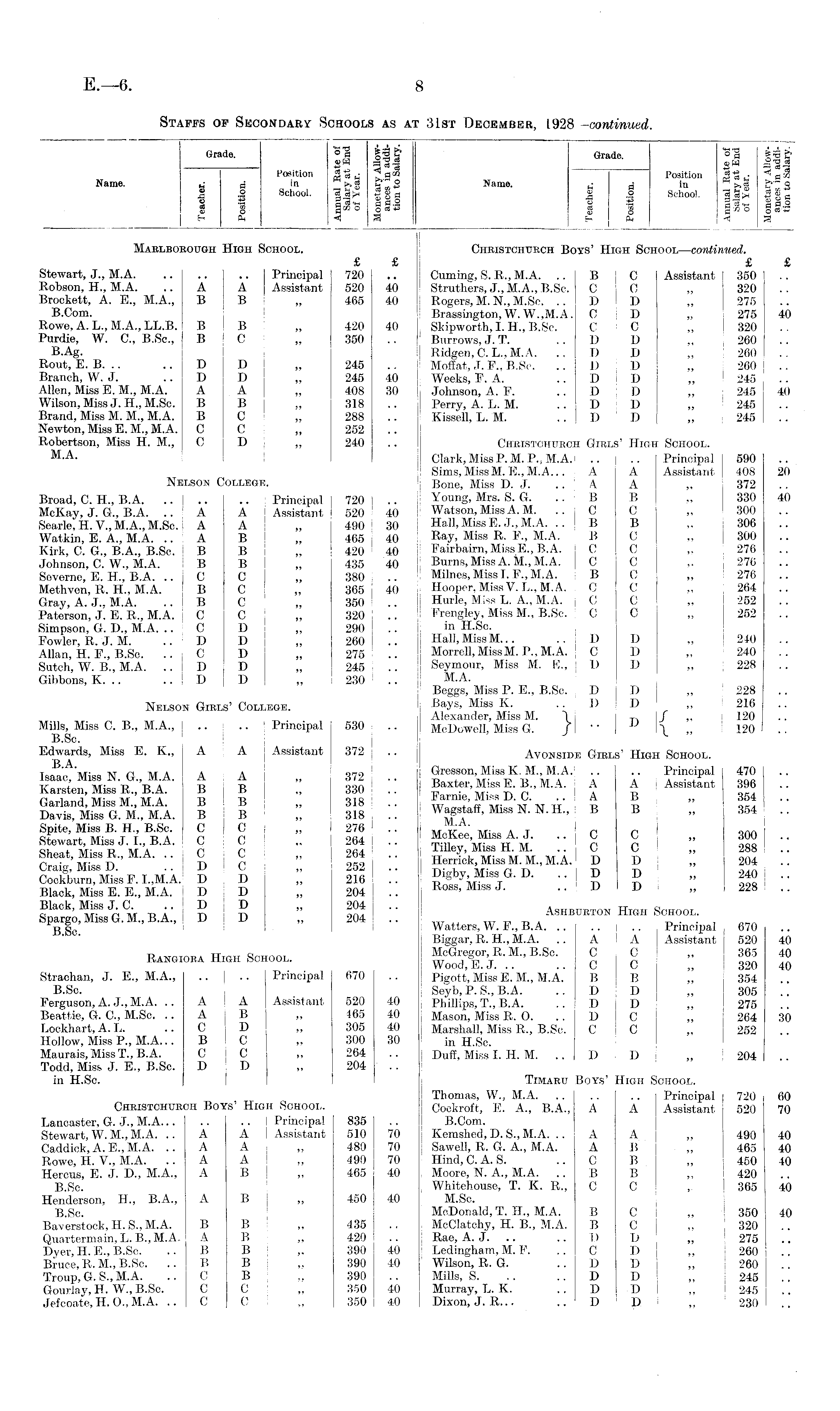 Staffs of Secondary Schools as at 31st December, 1928—continued.