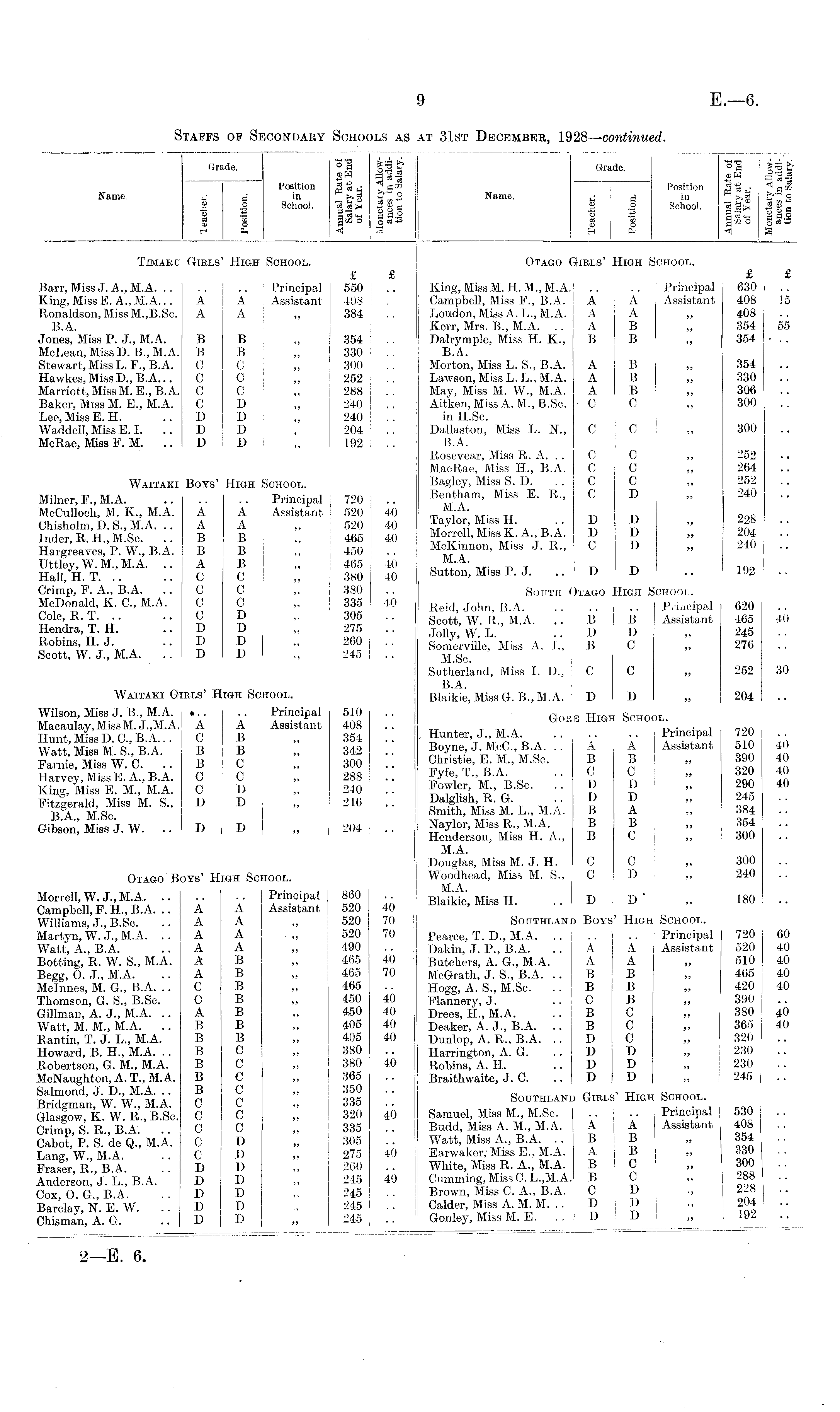 Staffs of Secondary Schools as at 31st December, 1928 —continued.