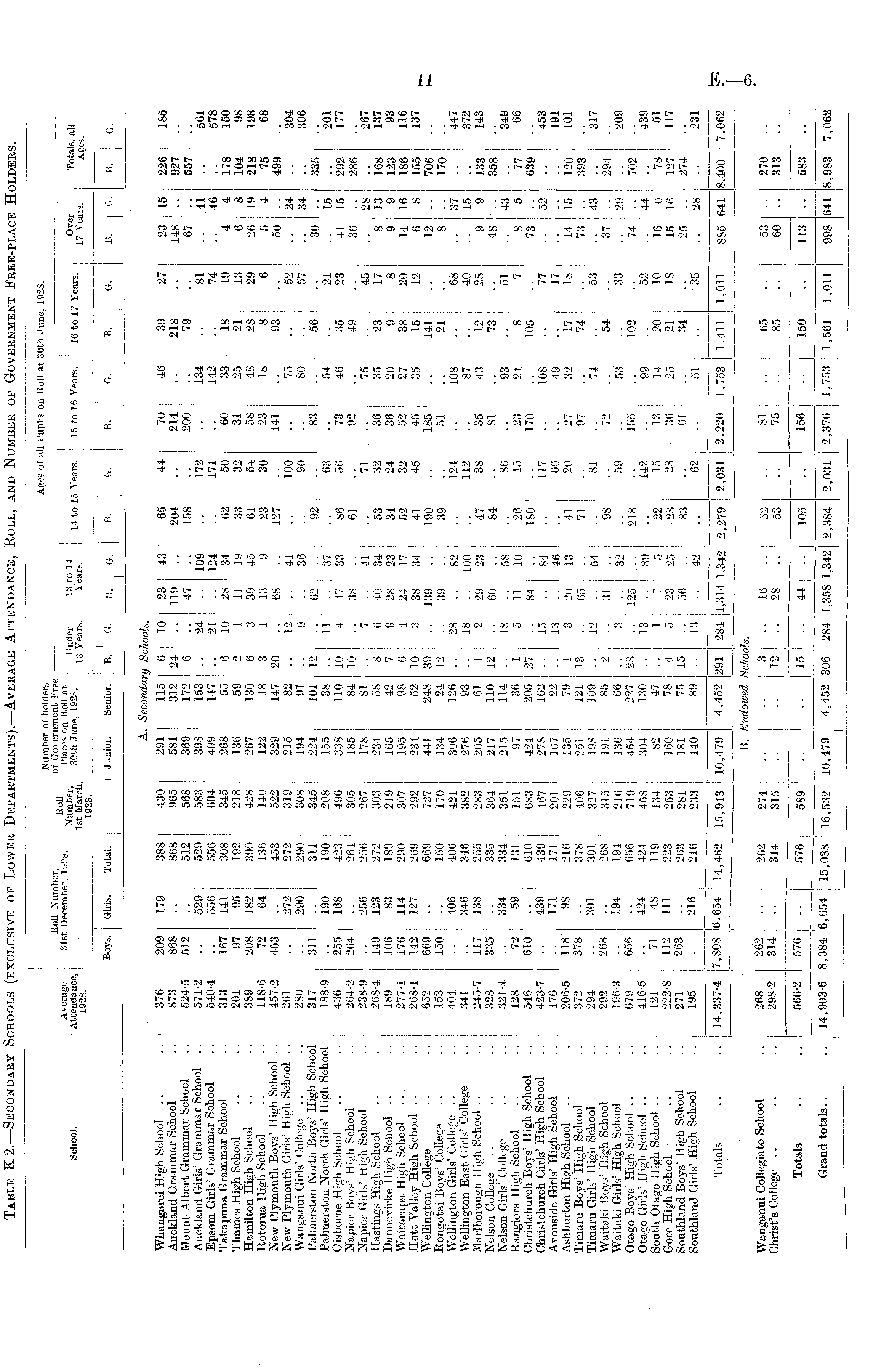 Table K2.—Secondary Schools (exclusive of Lower Departments).—Average Attendance, Roll, and Number of Government Frè-place Holders.