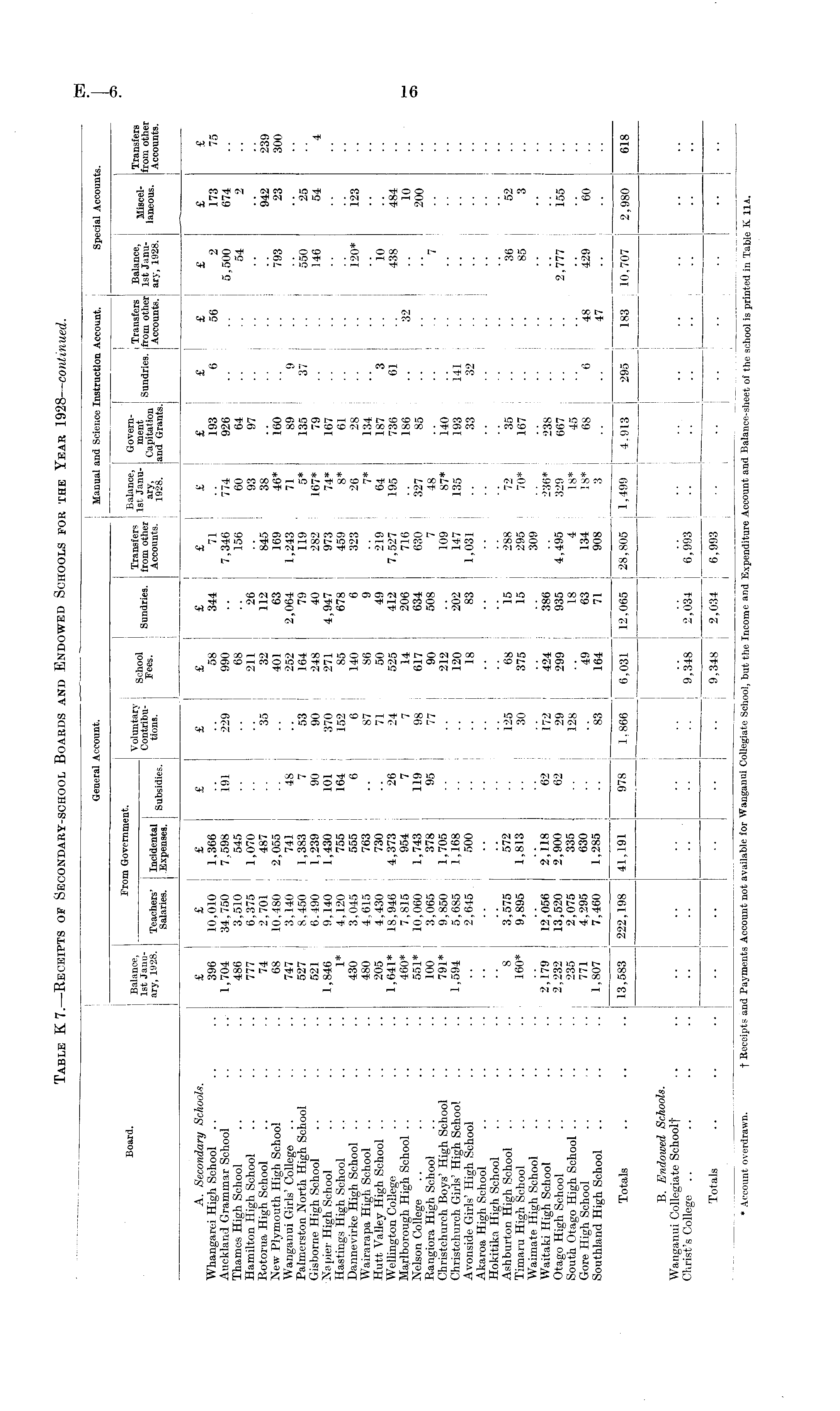 Table K7.—Receipts of Secondary-school Boards and Endowed Schools for the Year 1928—continued.