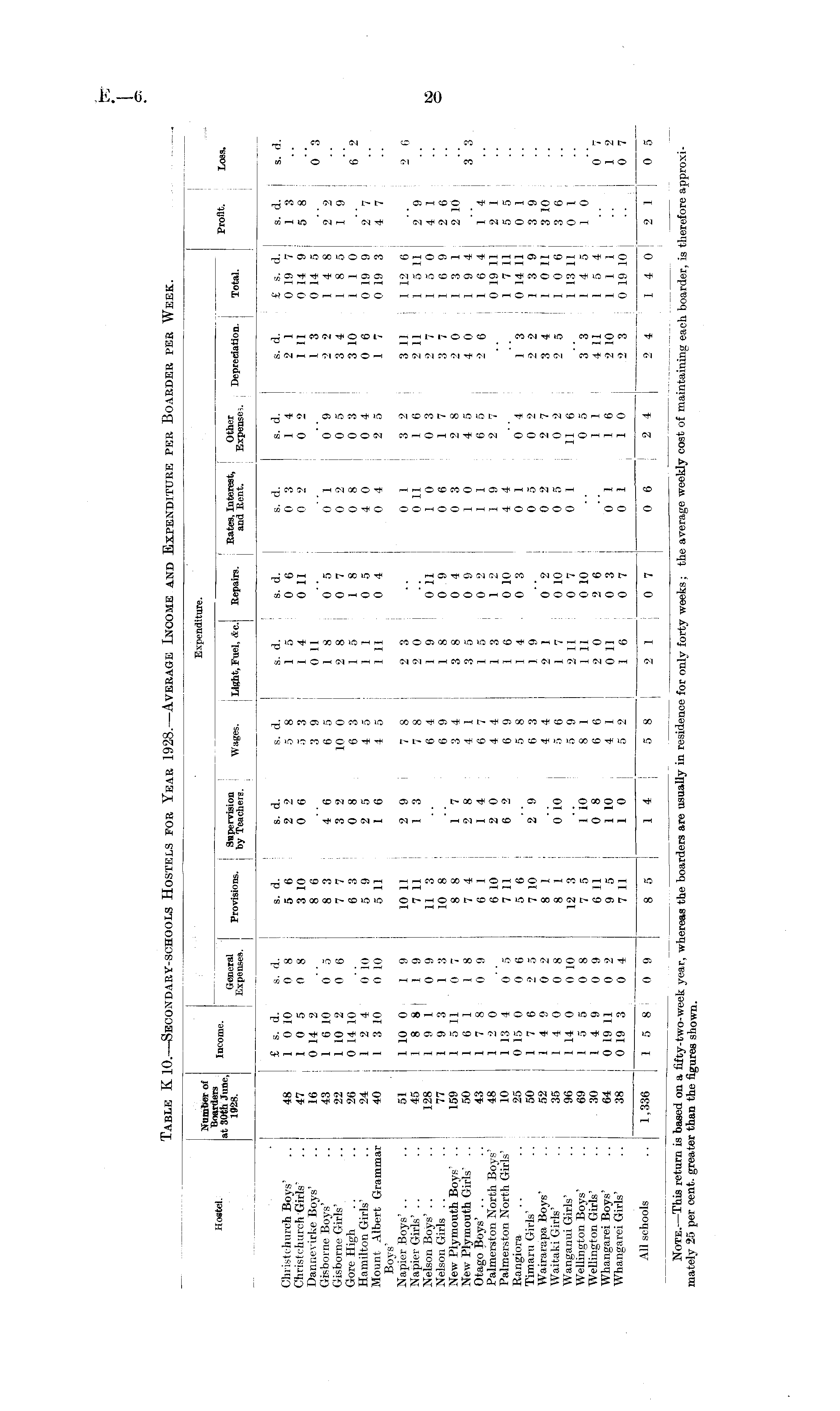 Table K10.—Secondary-schools Hostels for Year 1928.—Average Income and Expenditure per Boarder per Week.