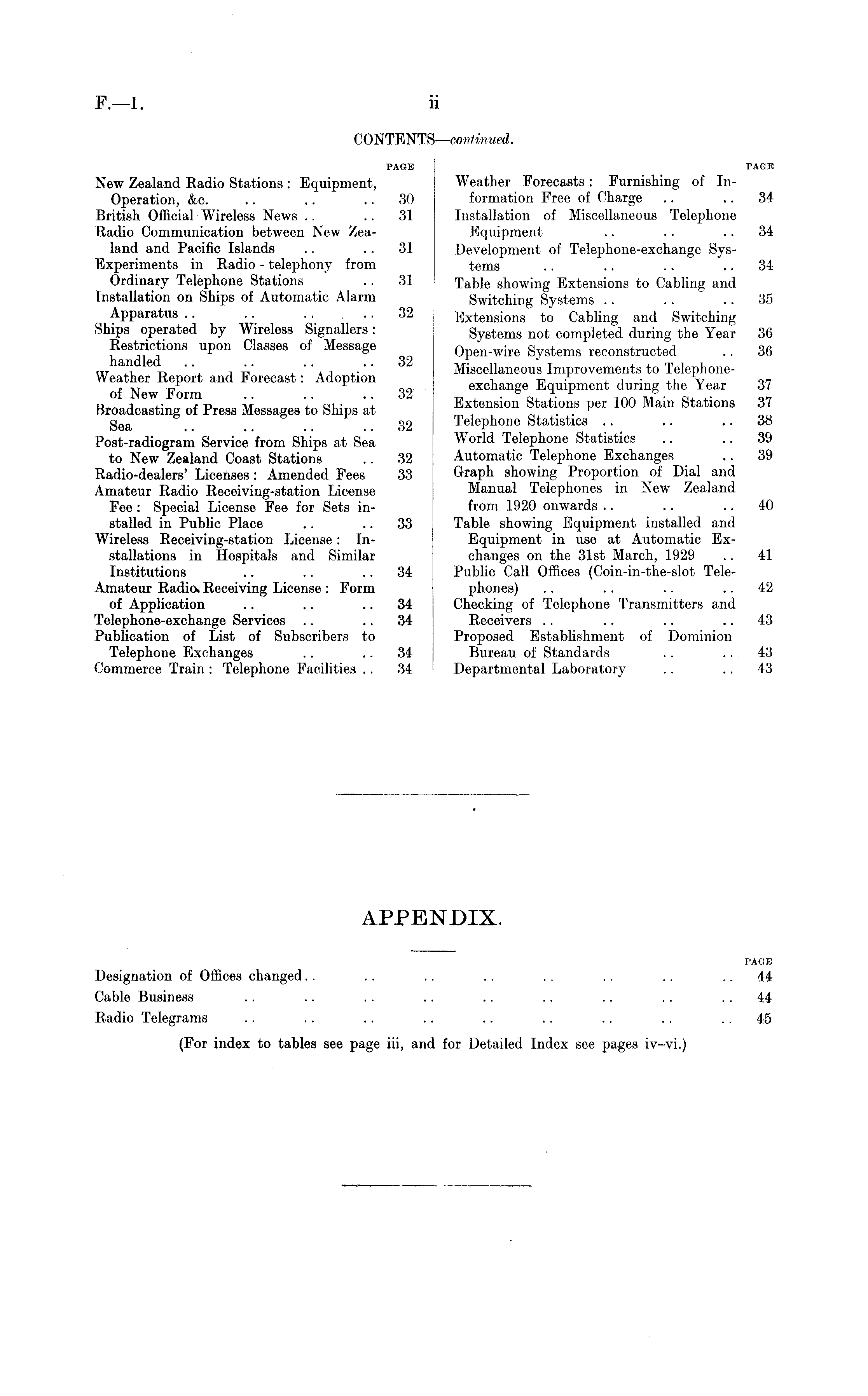 APPENDIX. PAGE Designation of Offices changed.. .. .. .. .. .. .. 44 Cable Business .. .. .. .. .. .. .. .. 44 Radio Telegrams .. .. .. .. .. .. .. .. 45 (For index to tables see page iii, and for Detailed Index see pages iv-vi.)