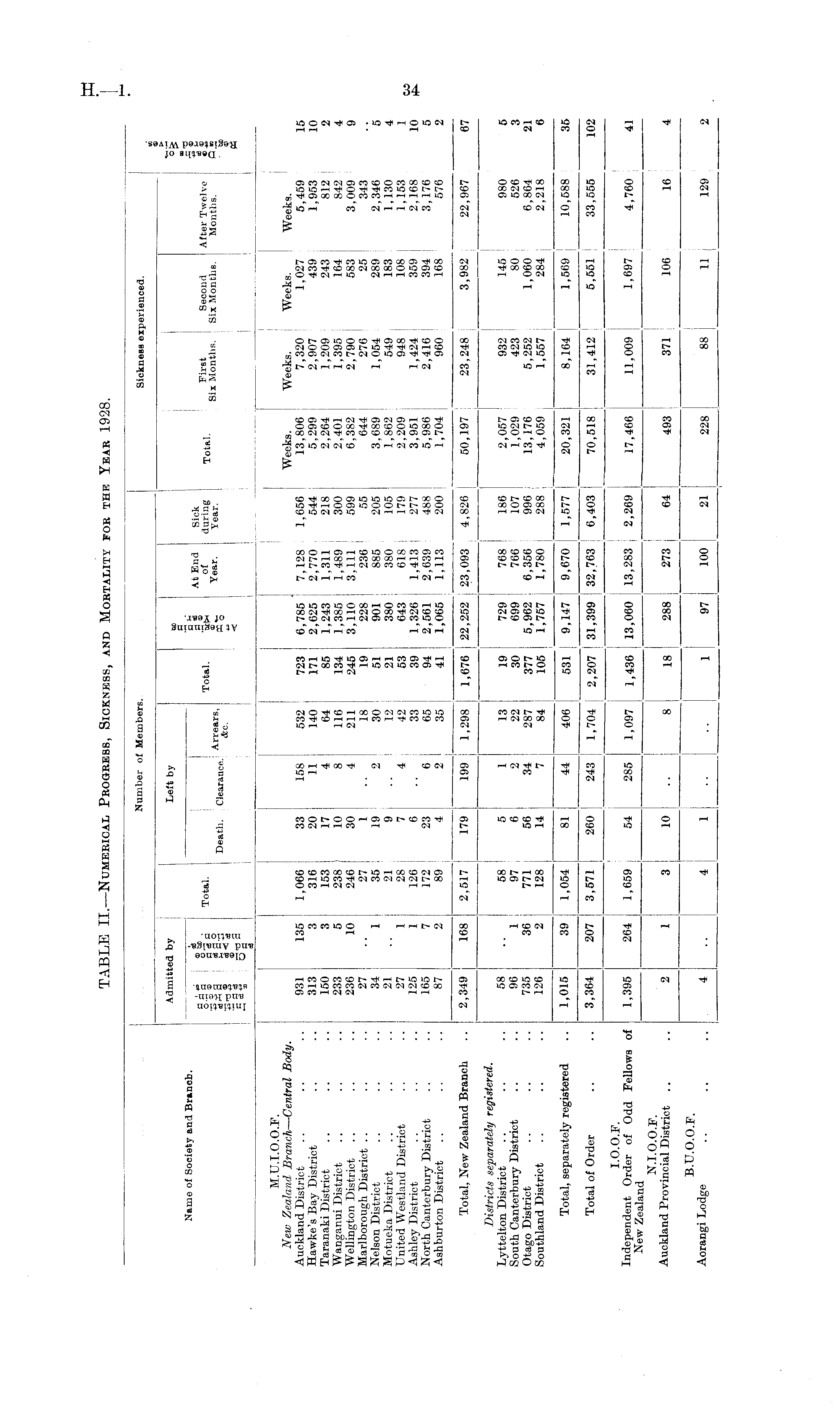 TABLE II.-Numerical Progress, Sickness, and Mortality for the Year 1928
