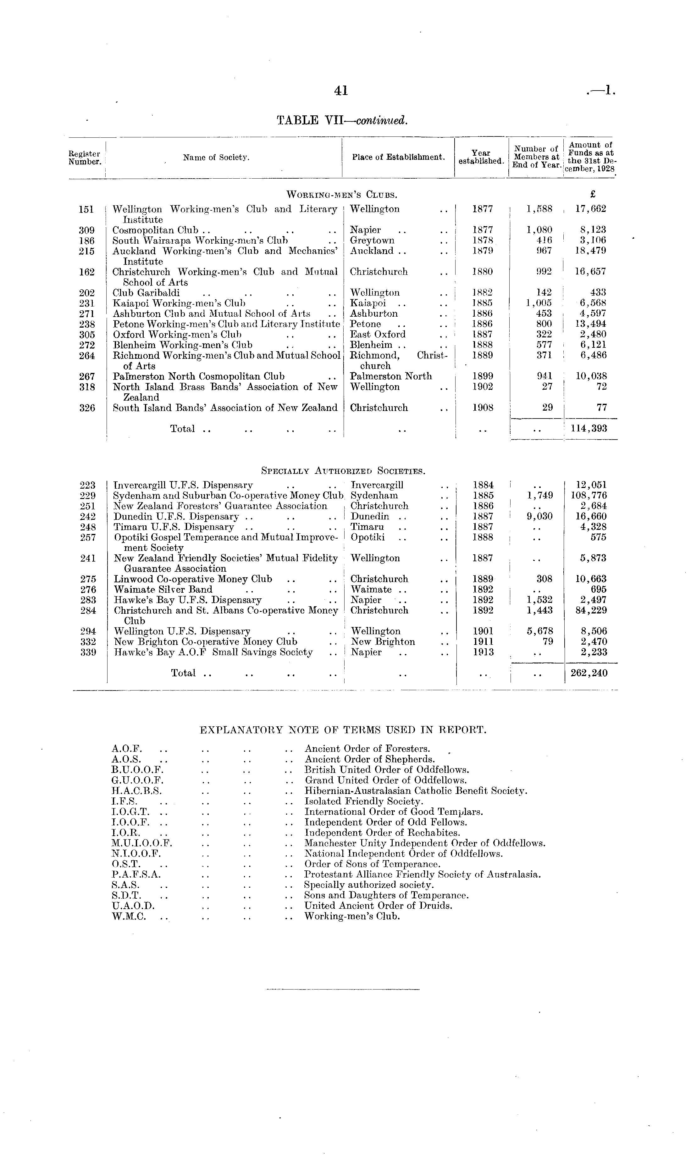 EXPLANATORY NOTE OF TERMS USED IN REPORT. A.O.F. .. .. .. .. Ancient Order of Foresters. A.O.S. .. . . .. .. Ancient Order of Shepherds. 8.U.0.0.F. .. .. .. British United Order of Oddfellows. G.U.0.0.F. .. . . .. Grand United Order of Oddfellows. H.A.C.B.S. .. .. .. Hibernian-Australasian Catholic Benefit Society. I.F.S. .. .. . • . • Isolated Friendly Society. 1.0. G.T. .. . . .. .. International Order of Good Templars. 1.0.0. F. .. .. . . . . Independent Order of Odd Fellows. 1.0. R. .. .. .. .. Independent Order of Rechabites. M.U.1.0.0.F. .. .. .. Manchester Unity Independent Order of Oddfellows. N.1.0.0.F. .. . . .. National Independent Order of Oddfellows. O.S.T. .. .. . . .. Order of Sons of Temperance. P.A.F.S.A. .. . . . . Protestant Alliance Friendly Society of Australasia. S.A.S. .. .. .. .. Specially authorized society. S.D.T. .. .. .. .. Sons and Daughters of Temperance. U.A.O.D. , , . . .. United Ancient Order of Druids. W.M.C. .. .. .. .. Working-men's Club.