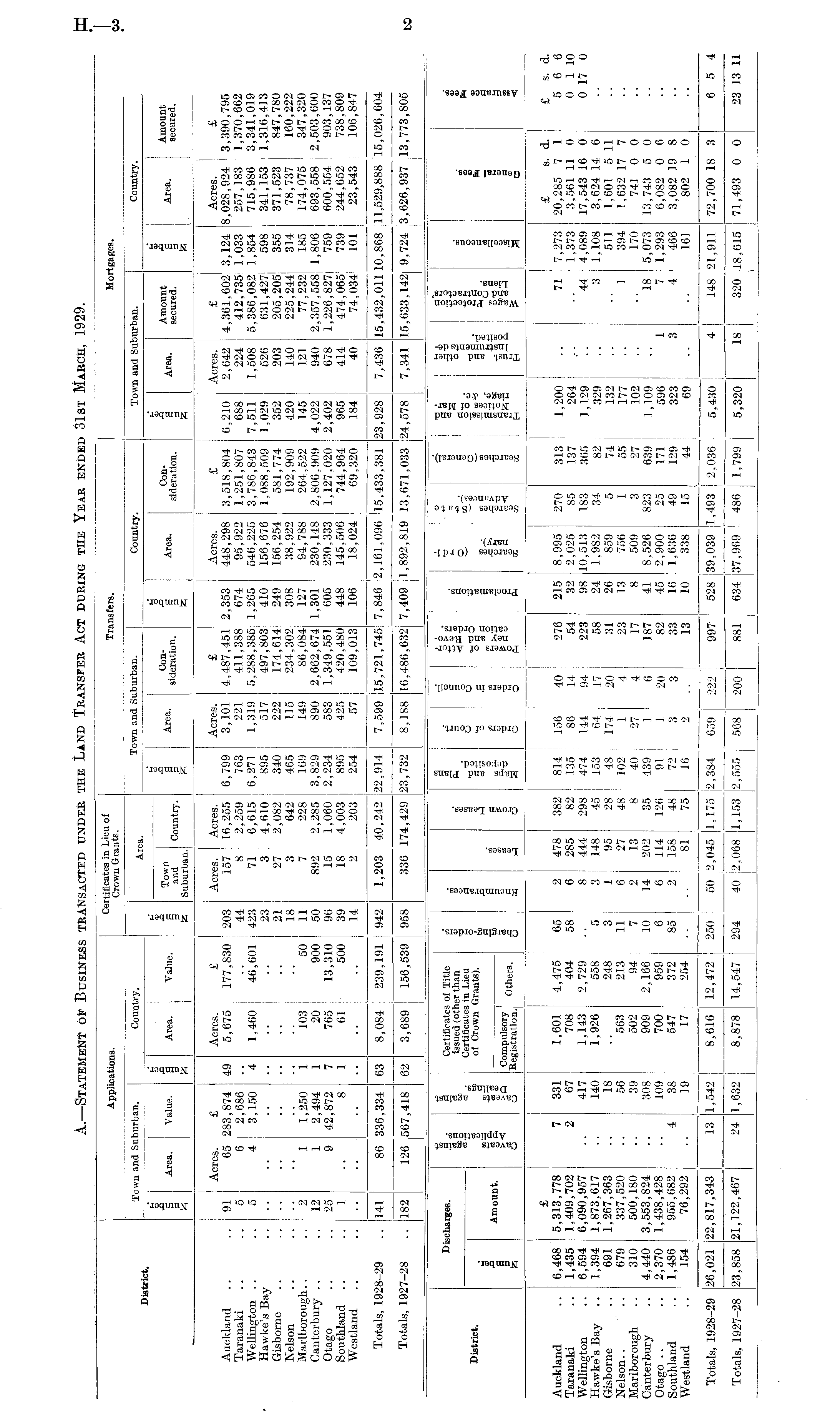 A.-Statement of Business transacted under the Land Tranfer Act during the Year ended 31st March, 1929.