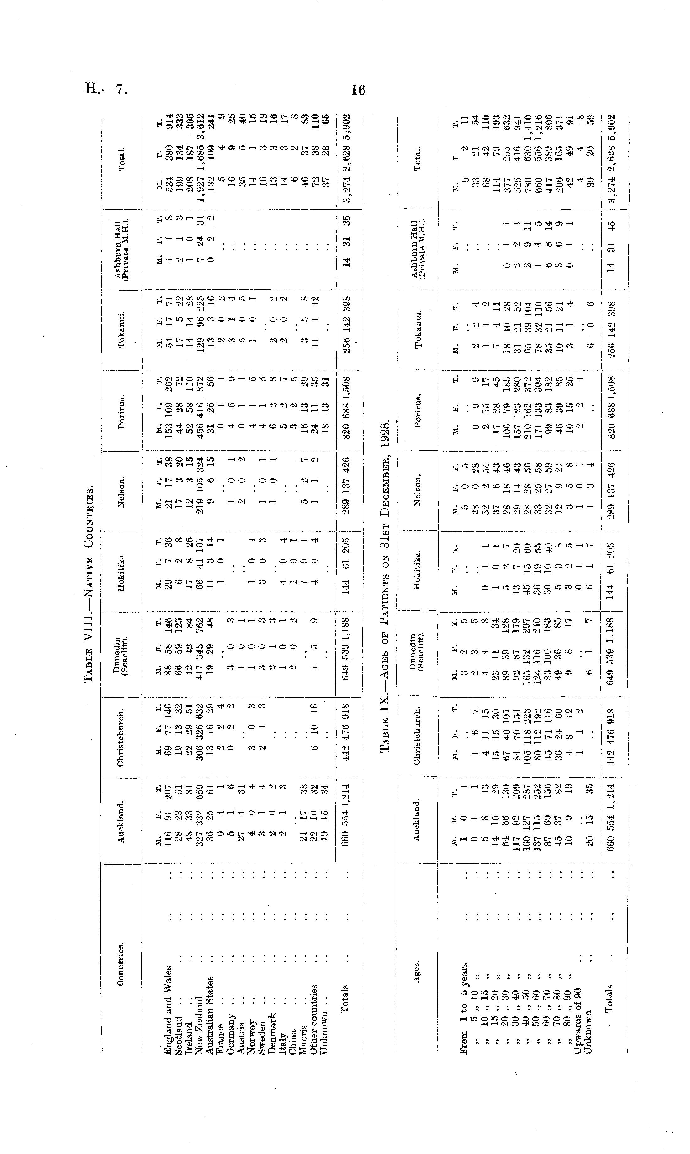 Ages. Auckland. Christchuroh. (Seacliff) Hokitika. Nelson. Porirua. Tokanui. ipSrate^H 1 ) Total. J U I . I • I i M. F. T. M. F. T. M. F. T. M. F. T. M. F. F. M. F. T. M. F. T. M. F. T. M. F T. From 1 to 5 years .. ..101 .. 325 .. 5 0 5 .. .. .. 9 2 11 5 „ 10' „ .. .. 0 1 1 1 6 7 2 3 5 .. 28 0 28 0 9 9 2 2 4 .. 33 21 54 „ 10 „ 15 „ .. .. 5 8 13 4 11 15 4 4 8 0 1 1 52 2 54 2 15 17 1 1 2 .. 68 42 110 15 „ 20 „ .. .. 14 15 29 15 15 30 23 11 34 1 0 1 37 6 43 17 28 45 7 4 11 .. 114 79 193 ». 20 „ 30 „ .. .. 64 66 130 67 40 107 89 39 128 5 2 7 28 18 46 106 79 185 18 10 28 0 1 1 377 255 632 „ 30 „ 40 „ .. .. 117 92 209 84 70 154 92 87 179 13 7 20 29 14 43 157 123 280 31 21 52 2 2 4 525 416 941 „ 40 „ 50 „ .. .. 160 127 287 105 118 223 165 132 297 45 15 60 28 28 56 210 162 372 65 39 104 2 9 11 780 630 1,410 „ 50 „ 60 „ .. .. 137 115 252 80 112 192 124 116 240 36 19 55 33 25 58 171 133 304 78 32 110 1 4 5 660 556 1,216 „ 60 „ 70 „ .. .. 87 69 156 45 71 116 83 100 183 30 10 40 32 27 59 99 83 182 35 2) 56 6 8 14 417 389 806 » 70 „ 80 „ .. .. 45 37 82 36 24 60 49 36 85 5 3 8 12 9 21 46 39 85 10 11 21 3 6 9 206 165 371 „ 80 „ 90 „ .. .. 10 9 19 4 8 12 9 8 17 3 2 5 3 5 8 10 15 25 3 1 4 0 1 1 42 49 91 Upwards of 90 .. .. .. .. 112 .. 011 10 1 2 2 4 .. .. 4 4 8 Unknown .. .. .. 20 15 35 .. 6 1 7 6 1 7 1 3 4 .. 6 0 6 .. 39 20 59 • Totals .. .. .. 660 554 1,214! 442 476 918 649 539 1,188 144 61205 289 137 426 820 688 1,508 256 142 398 14 31 45 3,274 2,628 5,902 J ! .