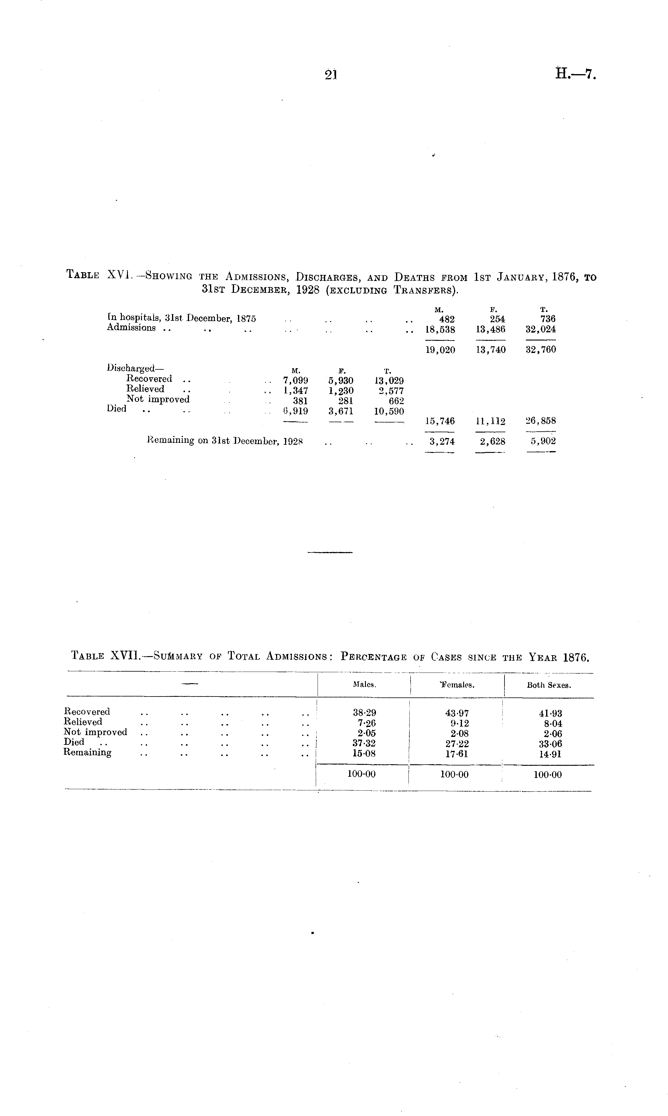 Table XVII. —Summary of Total Admissions: Percentage of Cases since the Year 1876.