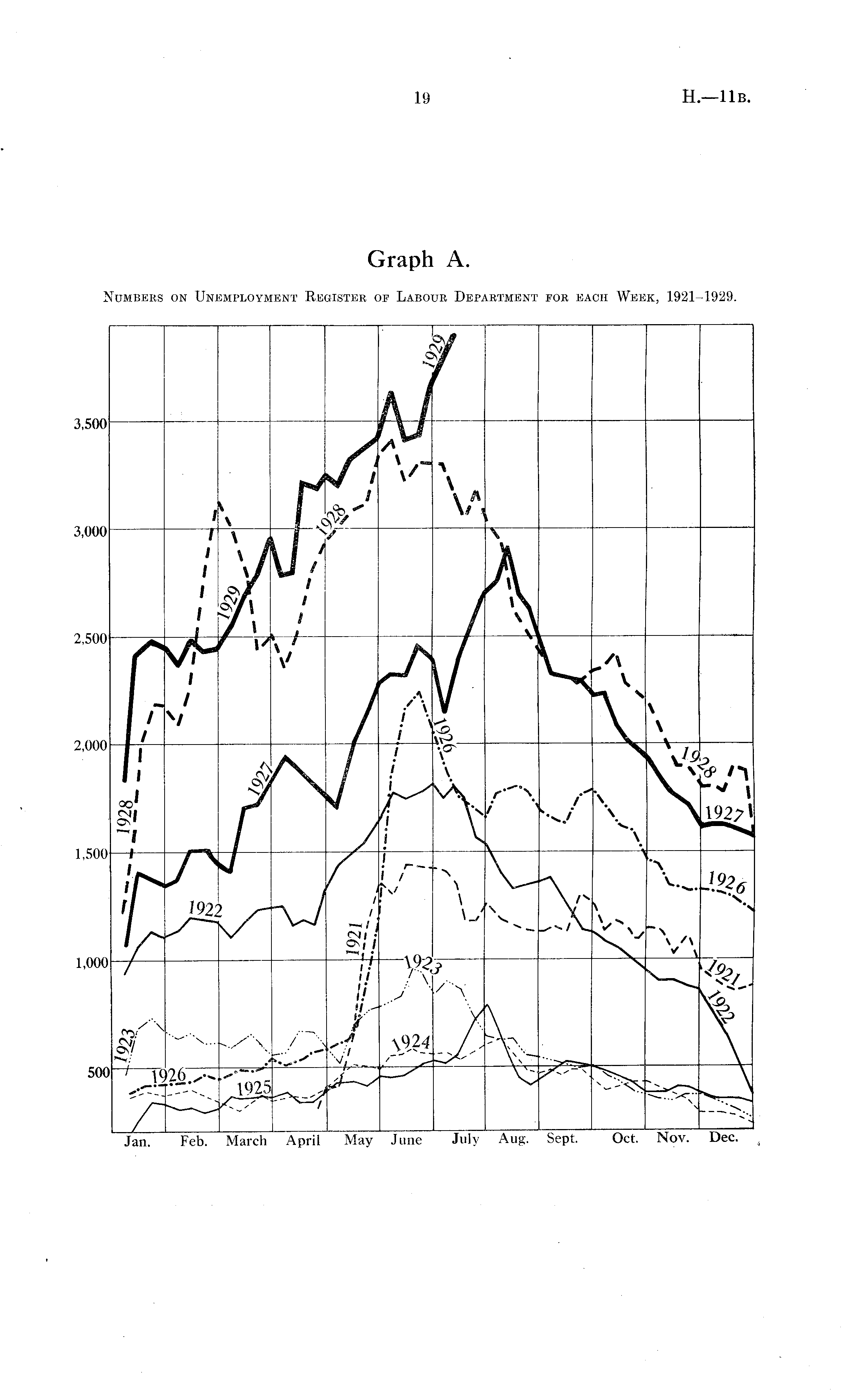 Graph A. Numbers on Unemployment Register of Labour Department for each Week, 1921-1929.