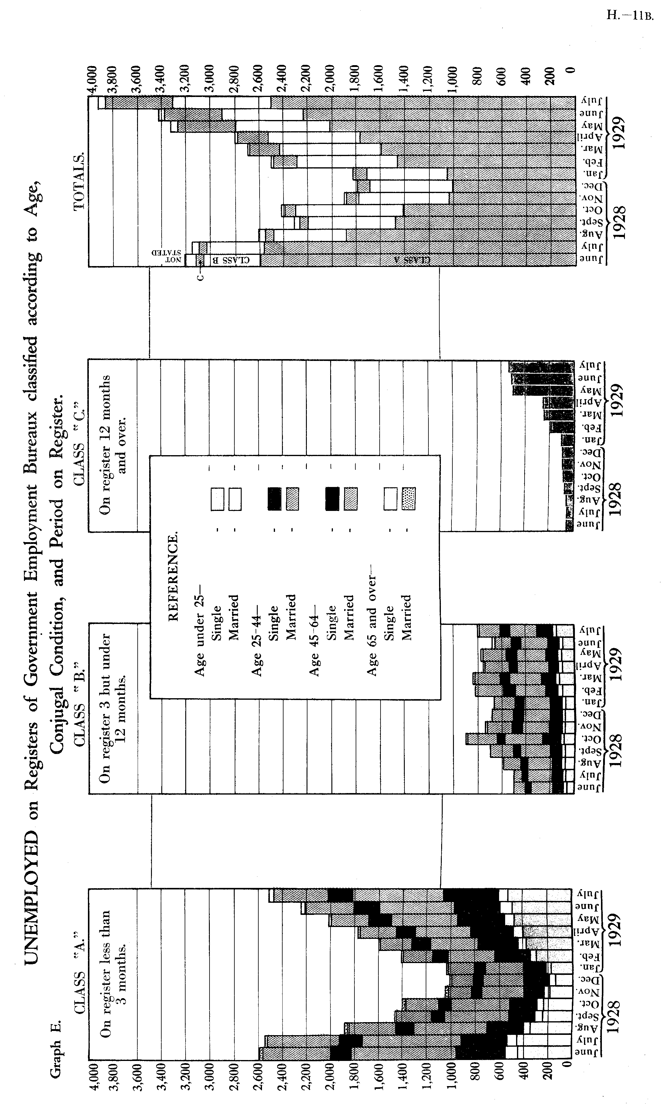 UNEMPLOYED on Register of Government Employment Bureux classified according to Age, Conjugal Condition, and Period on Register.
