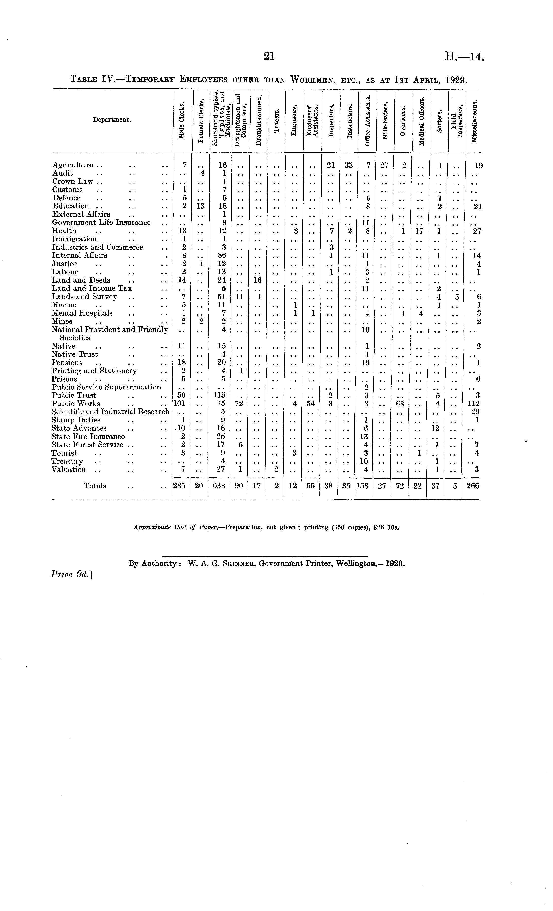 Table IV.—Temporary Employees other than Workmen, etc., as at 1st April, 1929.