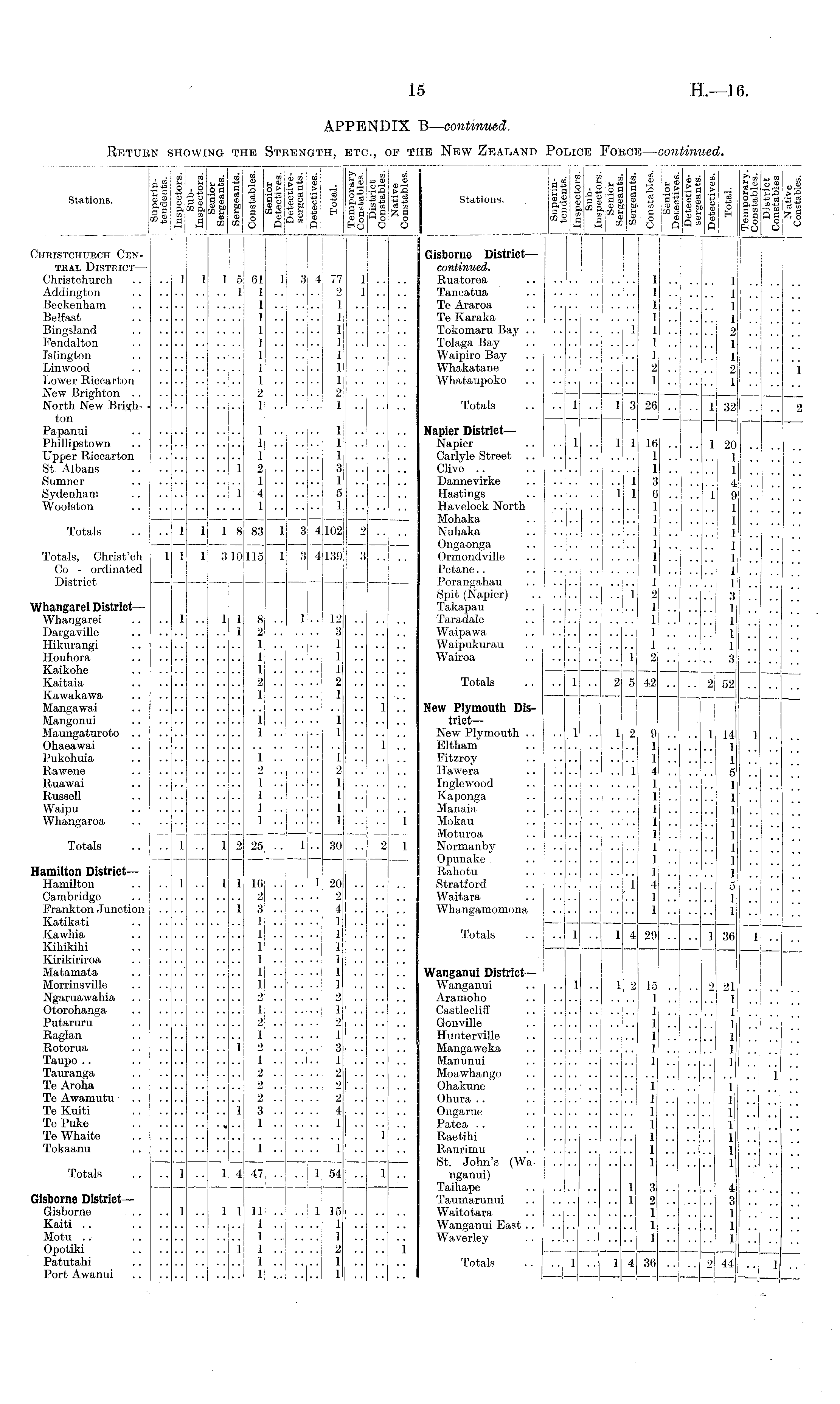 APPENDIX B—continued. Return showing the Strength, etc., of the New Zealand Police Force—continued.