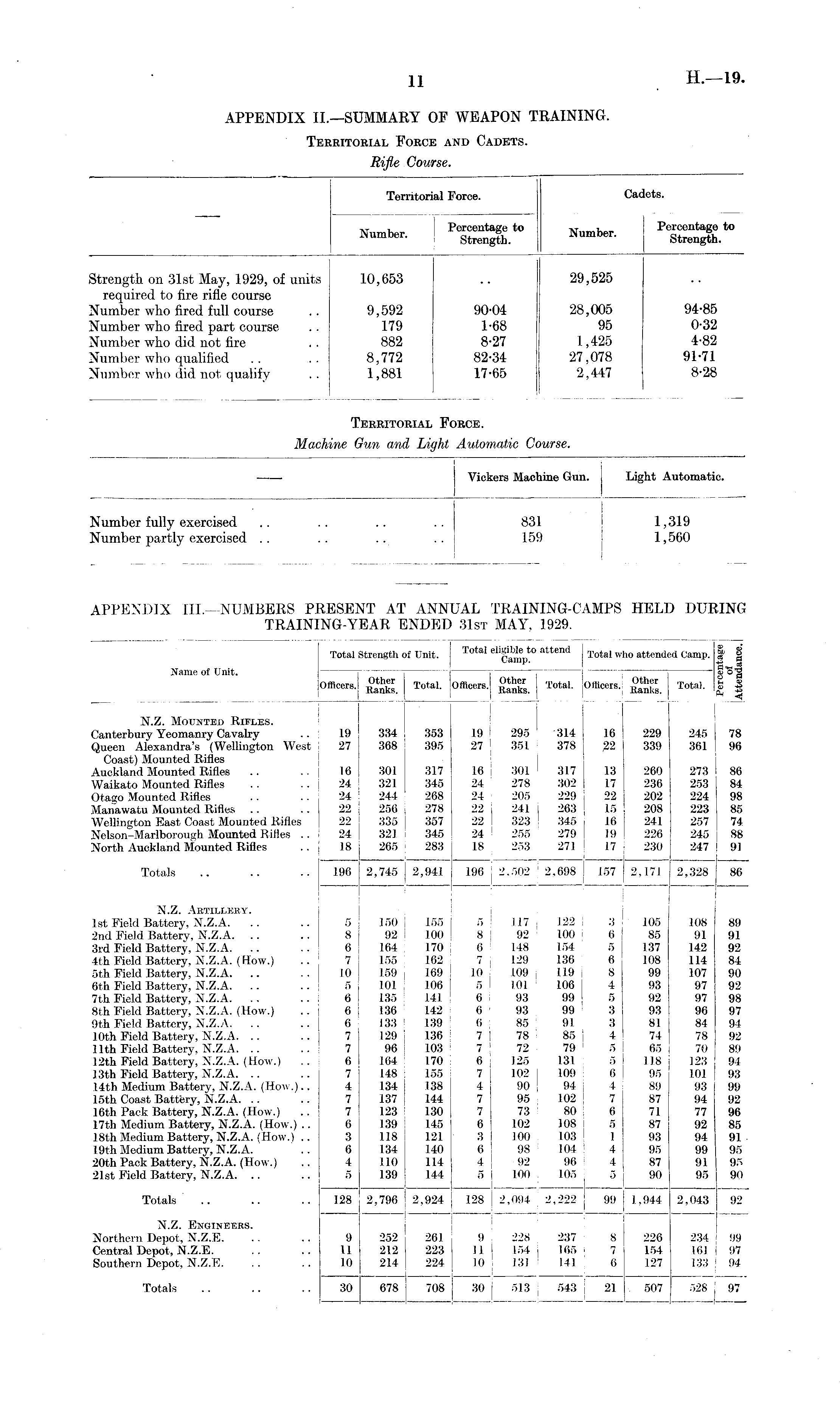 APPENDIX III.—NUMBERS PRESENT AT ANNUAL TRAINING-CAMPS HELD DURING TRAINING-YEAR ENDED 31st MAY, 1929.
