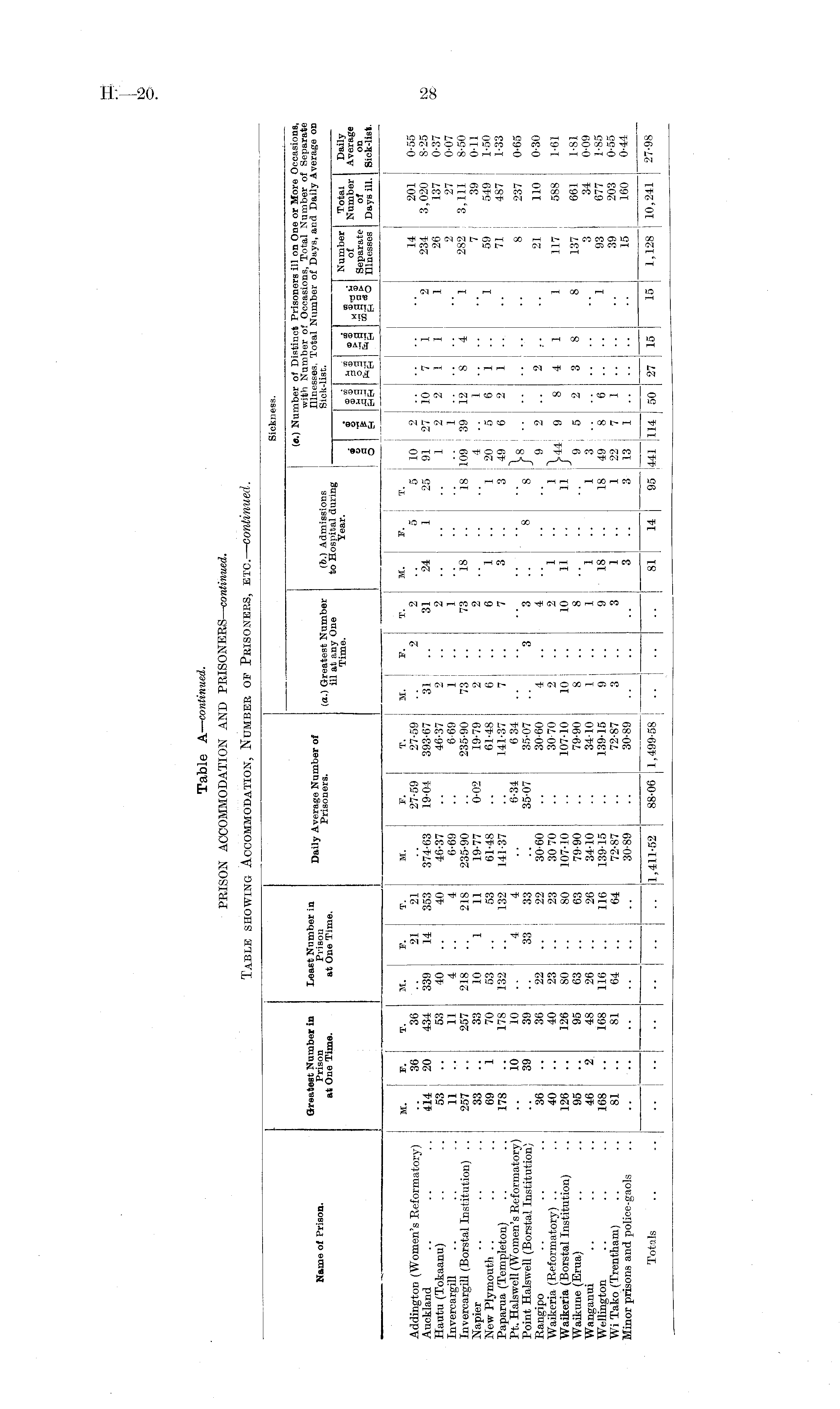 Table A—continued. PRISON ACCOMMODATION AND PRISONERS—continued. Table showing Accommodation, Number of Prisoners, etc.—continued.