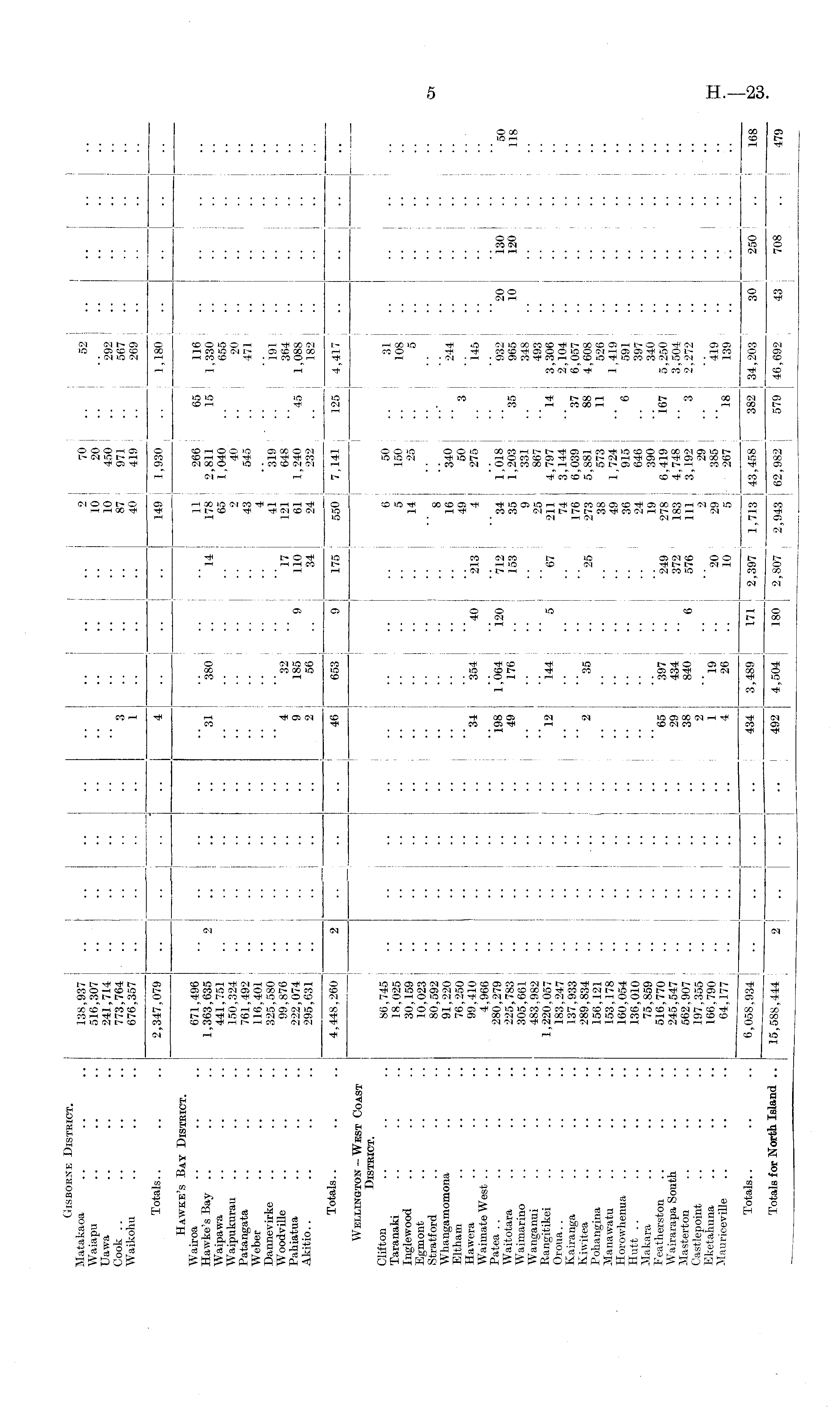 Gis borne District. I Matakaoa .. .. .. 138,937 .. .. .. .. .. .. .. .. 2 70 I 52 Waiapu .. .. .. 516,307 .. .. .. .. .. .. .. .. 10 20 ' .. .. '' '' " Uawa .. .. .. 241,714 .. .. .. .. .. .. .. .. 10 450 .. 292 .. .. ! Cook •• •• •• •• 773,764 .. .. .. .. 3 .. .. .. 87 971 .. 567 .. .. .. !! Waikohu .. .. .. 676,357 .. .. .. .. 1 .. .. .. 40 419 .. 269 Totals.. .. .. 2,347,079 .. .. .. .. 4 .. .. .. 149 1,930 .. 1,180 Hawke's Bay District. Wairoa .. .. .. 671,496 .. .. .. .. .. .. ... .. 11 266 65 116 Hawke's Bay .. .. .. 1,363,635 2 .. .. 31 380 14 178 2,811 15 1,330 Waipawa .. .. .. 441,751 .. .. .. .. .. .. .. .. 65 1,040 .. 655 Waipukurau .. .. .. 150,324 .. .. .. .. .. .. .. .. 2 40 .. 20 .. Patangata .. .. .. 761,492 .. .. .. .. .. .. .. .. 43 545 " : 471 " " Weber .. .. .. 116,401 .. .. .. .. .. .. .. .. 4 .. .. " Dannevirke .. .. .. 325,580 .. .. .. .. .... .. .. 41 319 .. 191 | Woodville .. .. .. 99,876 .. .. .. .. 4 32 .. 17 121 648 .. 364 Pahiatua .. .. .. 222,074 .. .. .. .. 9 185 9 I 110 61 1,240 45 1.088 Akitio.. •• .. .. 295,631 .. .. .. .. 2 56 i 34 24 232 .. 182 i — 1 ] ! 1 ■' Totals.. .. .. 4,448,260 2 .. 46 653 9 175 550 7,141 125 4,417 Wellington -West Coast District. Clifton •• •• 86,745 I .. .. .. .. .. .. 6 50 31 Taranaki .. .. .. 18,025 .. .. .. .. .. .. .. .. 5 150 .. 108 " .. !. Inglewood .. .. .. 30,159 .. .. .. .. .. .. 14 25 i 5 " " Egmont .. .. .. 10,023 .. .. .. .. .. Stratford .. .. .. 80,592 .. .. .. .. .. .. .. " " 8 .. .!• Wkangamomona .. .. 91,220 .. .. '' " '' .. " 10 '34O " '944 Eltham .. .. .. 76,250 .. .. .. I ! 49 50 3 .. ' Hawera .. .. .. 99,410 .. .. .. .. 34 354 40 213 4 ' 275 .. 145 Waimate West .. .. .. 4,966 .. .. .. .. .. j •• £f tea " •• •• 280,279 .. .. .. .. i98 1.064 i20 712 34 1,018 .. 932 20 i30 " "50 Waitotara .. .. .. 225,783 .. .. .. .. 49 176 153 35 1,203 35 965 10 120 .. 118 W aimarino .. .. .. 305,661 .. .. .. .. I .. .. .. 9 | 331 .. 348 Wanganui .. .. .. 483,982 .. i" !! ! !. " !! " 25 ! 867 !! 493 !! !! i !! Rangitikei .. .. .. 1,220,057 .. .. .. .. 12 144 5 67 211 4,797 14 3,306 0roua -- •• 183,247 .. .. .. ... .. .. 74 3 144 .. 2 104 Kairanga .. .. .. 137,933 .. .. .. .. .. .. .. 1 76 6 ]o39 37 " !! !! Kiwitea .. .. .. 289,834 .. .. .. 2 35 .. 25 273 5,881 88 4,608 Pohangina .. .. .. 156,121 .. .. .. .. .. .. .. .. 38 573 11 526 Manawatu .. .. .. 153,178 .. .. _ .. .. 49 1 724 .. 1 419 Horowhenua .. .. .. 160,054 .. .. .. .. 3g '915 6 591 M'itt •• •• •• •• 136,010! .. .. .' .. .. .. .. '' 24 646 .. 397 " " ! !' Makara .. .. .. 75,859 .. .. .. .. .. .. .. .. i9 390 .. 340 .. .... Featherston .. .. .. 516,770 .. .. .. .. 65 397 249 278 6,419 167 5,250 Wairarapa South .. .. 245,547 .. .. .. 29 434 372 183 4 748 .. 3,504 Masterton .. .. .. 562.907 i .. .. .. 38 840 6 576 111 3 192 3 2,272 Castlepoint .. .. .. 197,355 .. .. .. .. 2 .. .. .. 2 29 ; Eketahuna .. .. .. 166,790 .. .. .. .. 1 19 20 29 385 419 .! !! 1 .. " Maurieeville .. .. .. 64,177 .. .. .. .. 4 26 10 5 267 18 139 Totals -- •• 6,058,934 .. .. .. .. 434 3,489 171 2,397 ' 1,713 43,458 j 382 34,203 30 250 .. 168 Totals for North Island .. 15,588,444 j 2 .. .. .. 492 4,504 180 2,807 i 2,943 j 62,982 j 579 46,692 43 708 .. 479