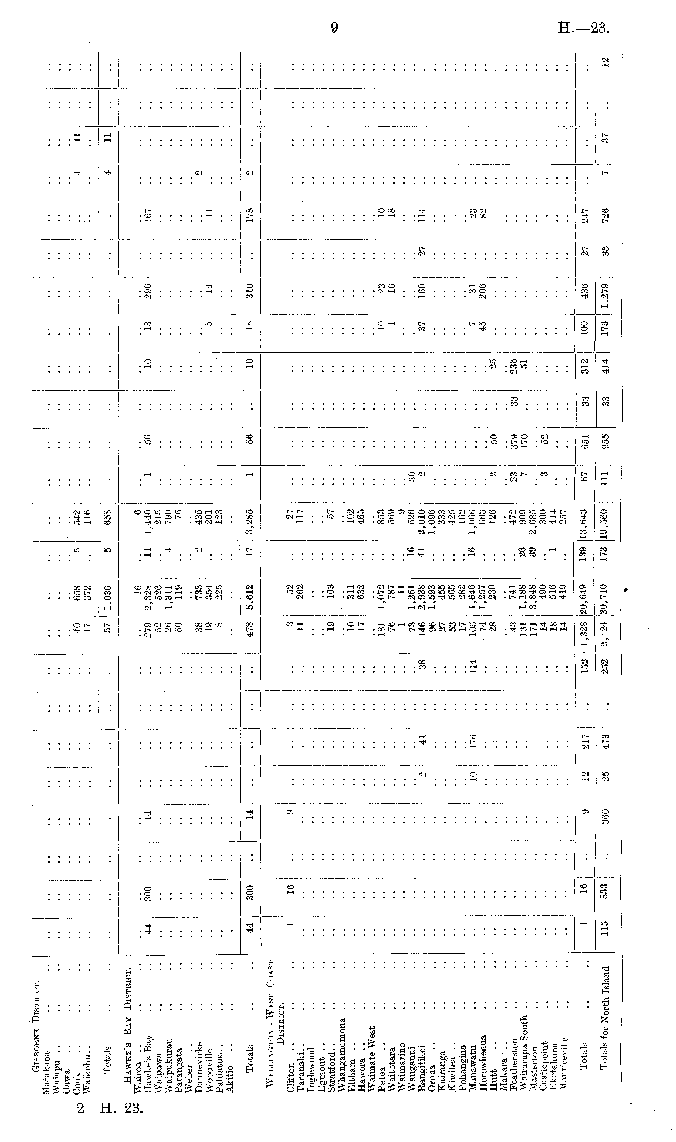 Gisborne District. j | Matakaoa .. .. .. I .. .. .. I .. .. .. .. Waiapu .. .. .. .. .... .. .. .... Uawa .. .. .. .. .. .. .. .. .. .. .. .. .. .... Cook .. .. .. .. .. .. .. .. .. .. .. 40 658 5 542 .. .. .. .. .. .. .. .. 4 11 Waikohu.. .. .. .. j .. .. .. .. .. .. 17 372 .. 116 Totals .. .. .. .. .. .. .. .. | .. .. 57 1,030 | 5 658 .. .. .. .. .. .. .. ..I 4 11 Hawke's Bay District. Wairoa .. .. .. .. .. .. .. .. .. .. .. .. 16 .. 6 Hawke's Bay .. .. 44 300 .. 14 .. .. .. .. 279 2,328 11 1,440 1 56 .. j 10 13 296 .. 167 Waipawa .. .. .. .. .. .. .. .. .. I 52 526 .. 215 .. .. ! .. .. ! Waipukurau .. .. .. .. .. .. .. ..I .. .. ! 26 1,311 4 790 .. .. .. j .. j .. .. .. Patangata .. .. .. .. .. .. .. .. .. .. 56 119 . 75 .. .. .. .. .. .. Weber .. .. .. .. .. .. .. .. .. .. .. .. .. .. .. .. .. .. .. . . .. .. .. Dannevirke .. .. .. .. .. .. .. .. .. .. 38 733 2 435 .. .. .. .. .. .. .. .. 2 Woodville .. .. .. .. .. .. .. .. .. | 19 354 .. 201 .. .. .. .. 5 1 14 .. 11 .. Pahiatua.. .. .. .. .. .. .. I •• I •• 225 j .. 123 .. .. .. .. j .. .. .. .. .. j Akitio .. .. .. .. .. .. .. I j ' .. .. " * * ' * * * i * * * * I * * • * I * * • • ! Totals .. .. 44 300 .. 14 .. .. .. .. 478 5,612 17 3,285 1 56 10 18 310 .. 178 ! 2 Wellington - West Coast District. Clifton .. .. .. 1 16 .. 9 .. .. .. .. 3 52 .. 27 .. .. .. .. .. .. .. Taranaki.. .. .. .. .. .. .. .. .. .. . . 11 262 .. 117 .. .. .. .. .. .. .. .. .. .. .. Inglewood .. .. .. .. Egmont Stratford.. .. .. .. .. • • • • .. .. .. .. 19 103 .. 57 Whangamomona .. . . .. .. • • • • .. .. .. .. . • Eltham .. .. .. .. .. • • •. . . .. . . .. 10 311 .. 102 Hawera .. .. .. .. .. • • .. . . . . . . .. 17 632 .. 465 Waimate West .. .. .. .. • • .. .. .. .. .. .. Patea .. .. 181 1,072 .. 853 10 23 .. 10 Waitotara .. .. .. .. .. .. .. .. .. .. 76 787 j .. 569 .. .. .. .. 1 16 .. 18 Waimarino .. .. .. .. .. .. .. .. .. .. 1 11 j 9 Wanganui .. .. .. .. .. .. .. .. ! .. .. 73 1,251 16 526 30 .. .. .. .. .. .. .. .. .. Rangitikei .. .. .. .. .. ! .. j 2 41 1 38 146 2,938 41 2,010 2 .. .. .. 37 160 27 114 ! .. .. Oroua .. .. .. .. .. . . .. .. .. .. .. 96 1,593 .. 1,096 Kairanga .. .. .. .. .. .. .. .. .. .. 27 455 .. 333 .. .. .. Kiwitea .. .. .. .. .. .. .. .. .. .. .. 53 565 .. 425 Pohangina .. .. .. .. .. . . . . . . . . .. 17 282 .. 162 .. .. .. .. I j .. .. Manawatu .. .. .. .. .. .. 10 176 .. 114 105 1,646 16 1,066 .. .. .. .. j 7 31 .. 23 Horowhenua .. .. .. .. .. .. .. .. .. .. 74 1,257 .. 663 .. .. .. .. 45 206 .. 82 Hutt .. .. .. .. 28 230 .. 126 2 50 .. 25 ! Makara .. .. .. • • • • •. .. .. .. .. .. .. • • • • • • .. .. .. .. • • .. .. Featherston .. .. .. 43 741 .. 472 23 379 33 236 Wairarapa South .. •• •• •• •• .. .. .. .. .. 131 1,188 26 909 7 170 .. 51 Masterton .. .. • • • • • • .. .. .. .. .. 171 3,848 39 2,685 Castlepoint .. .. • • • • • . . . . . .. . . .. 14 490 .. 300 3 52 Eketahuna .. .. .... .. .. . . . . .. I 18 516 1 414 Mauriceville .. .. j .. .. . . I .. .. j 14 419 .. 257 Totals .. .. 1 16 j 9 12 217 .. 152 j 1,328 |20,649 139 13,643 67 651 33 312 100 436 27 247 .. .. j .. Totals for North Island 115 833 j .. 360 25 j 473; .. 252 2,124 30,710 173 19,560 111 955 33 414 173 1,279 35 726 7 37 .. | 12