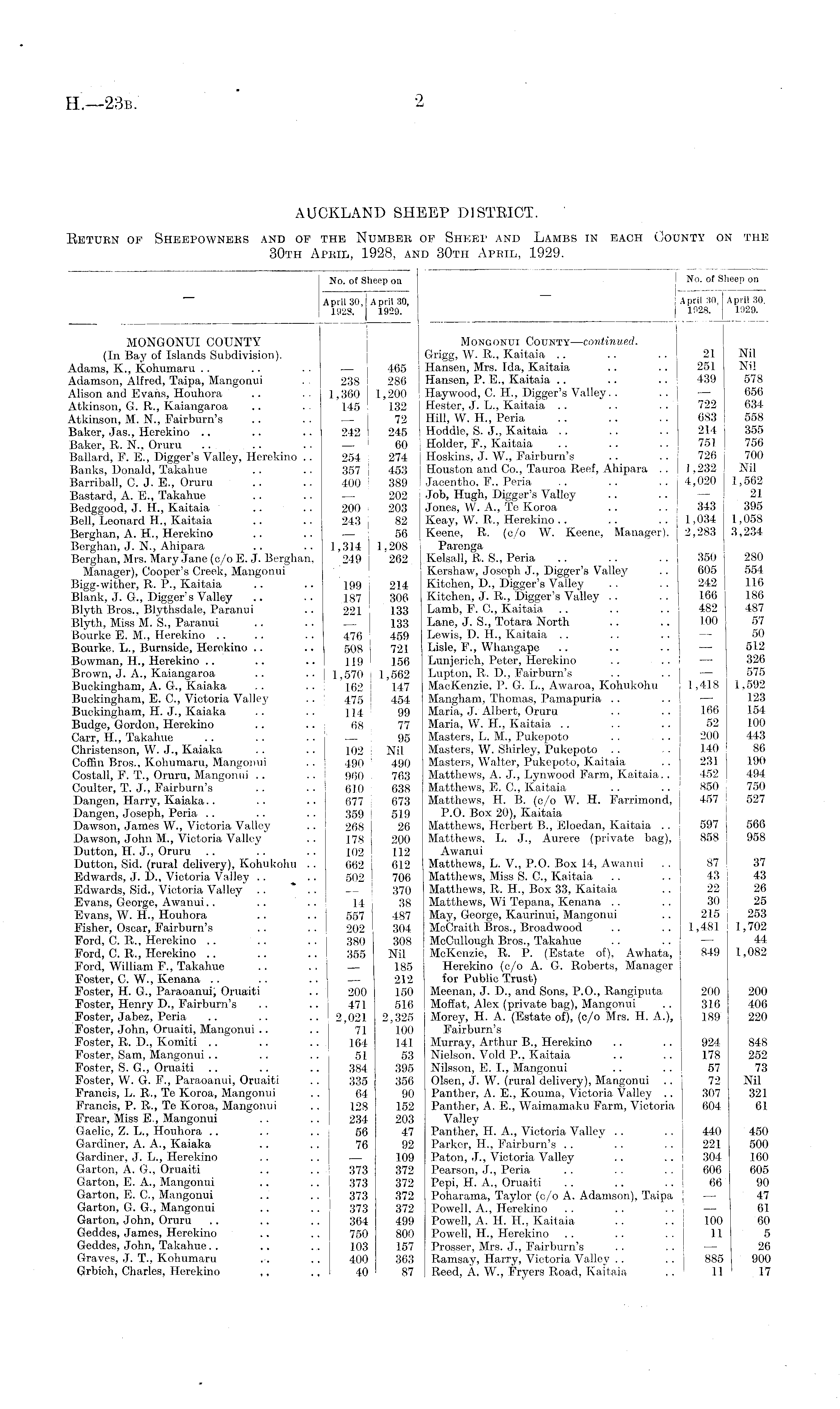 AUCKLAND SHEEP DISTRICT. Return of Sheepowners and of the Number of Sheep and Lambs in each County on the 30th April, 1928, and 30th April, 1929.