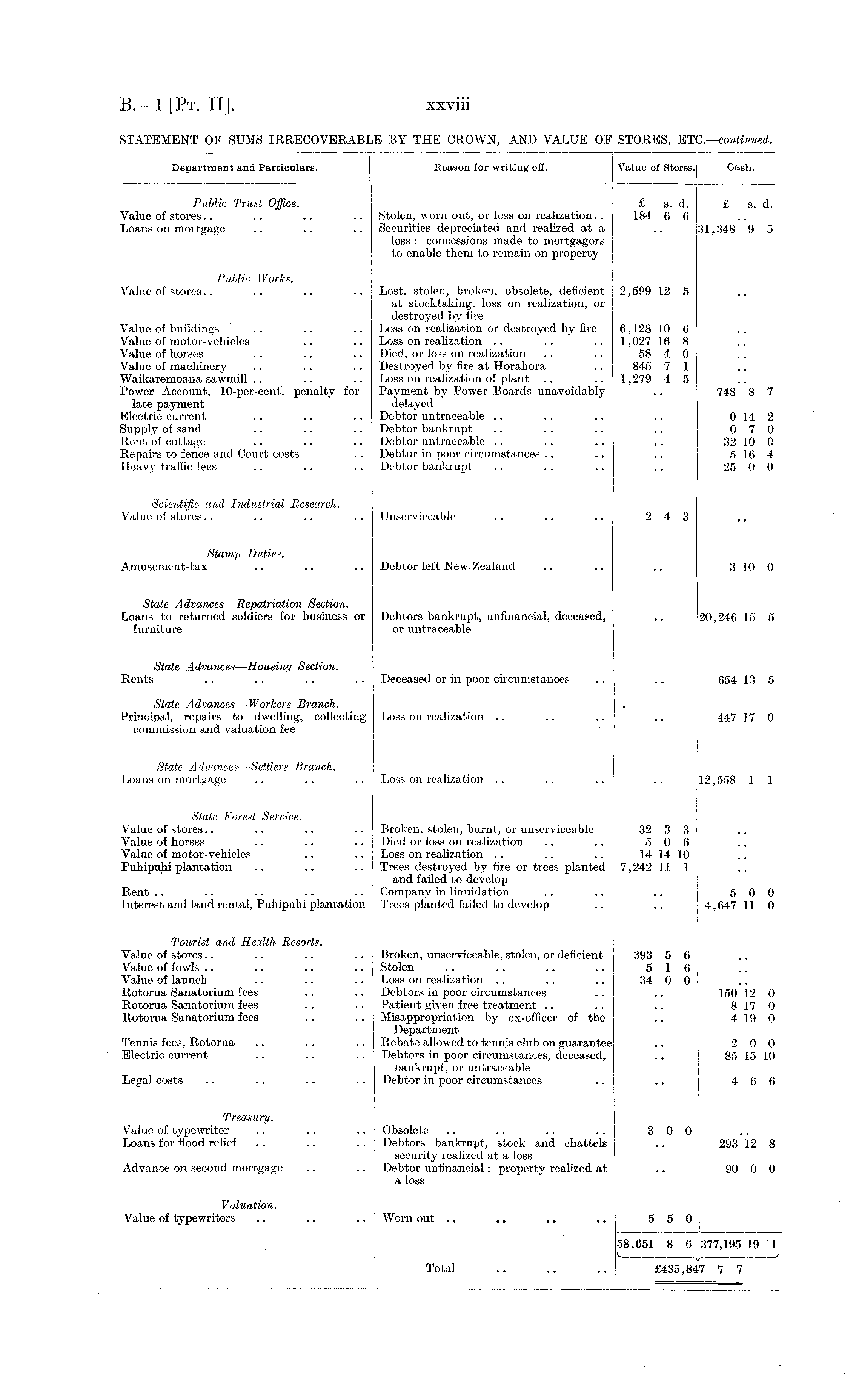 STATEMENT OF SUMS IRRECOVERABLE BY THE CROWN, AND VALUE OF STORES, ETC. —continued.