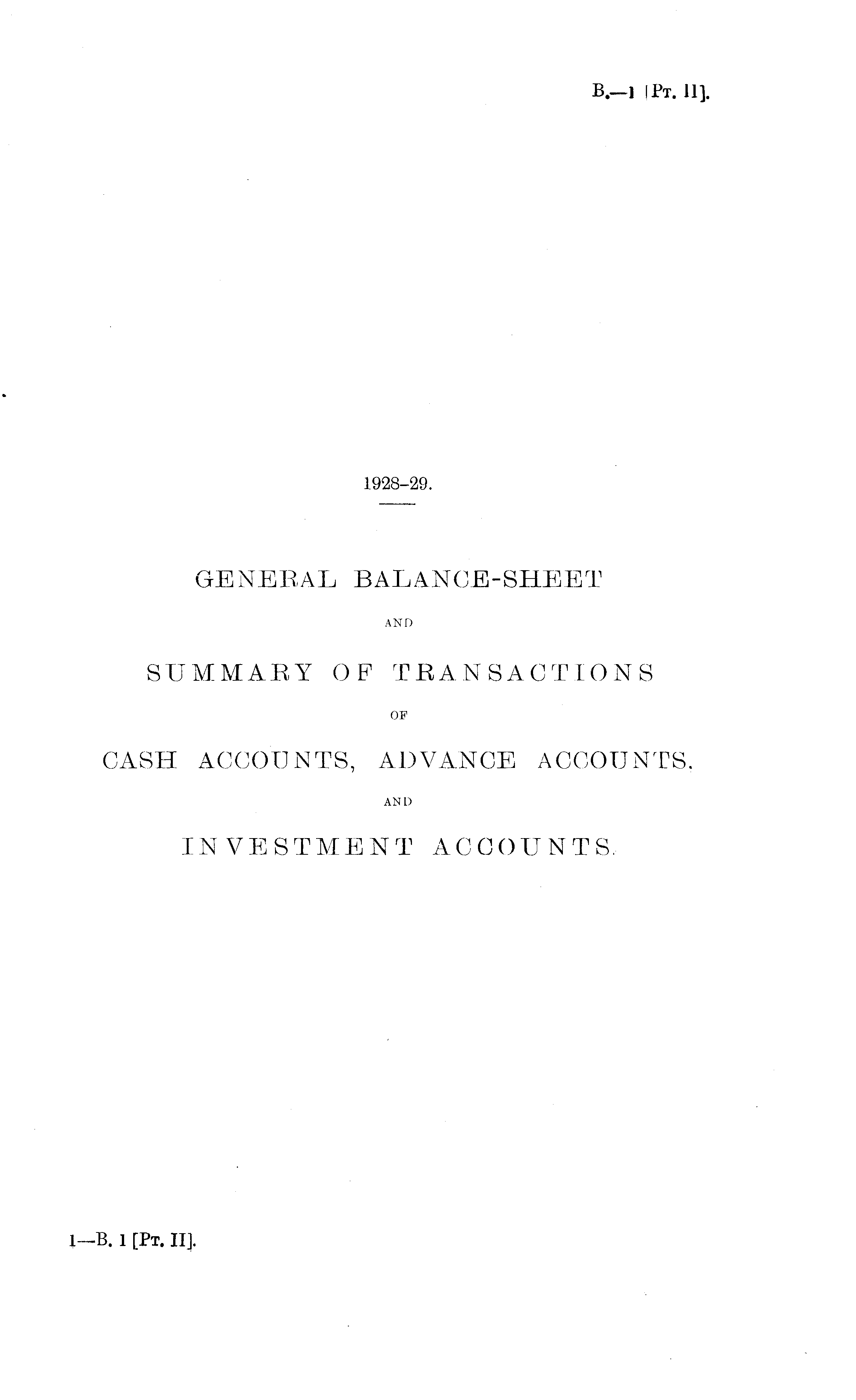 1928-29. GENERAL BALANCE-SHEET AND SUMMARY OF TRANSACTIONS OF CASH ACCOUNTS, ADVANCE ACCOUNTS. AND INVESTMENT ACCOUNTS.