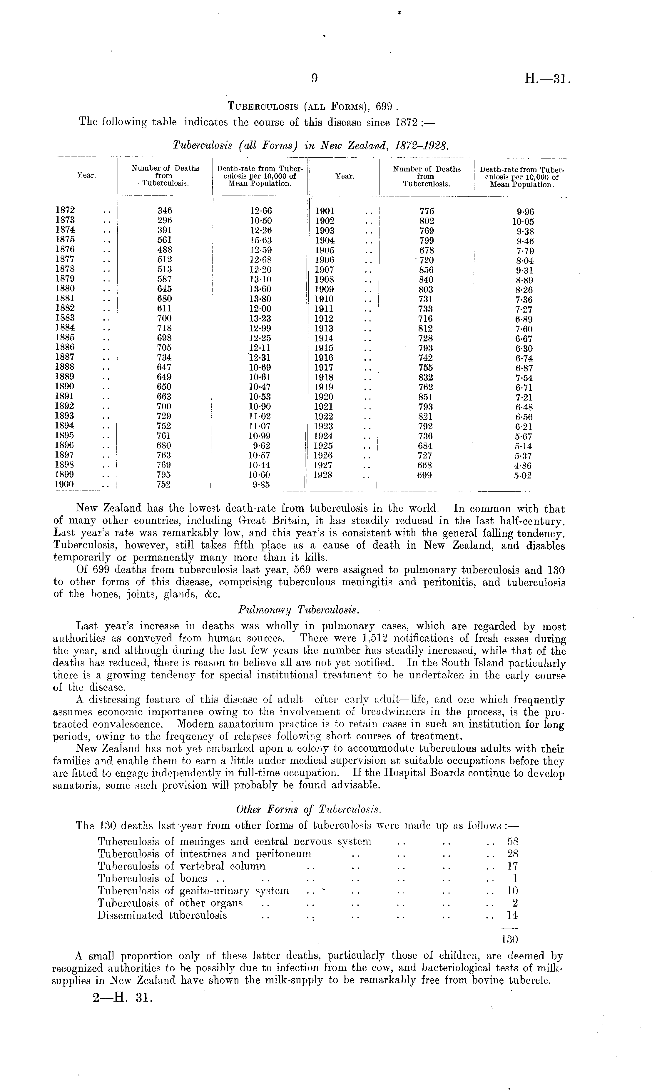 Tuberculosis (all Forms) in New Zealand, 1872-1928.