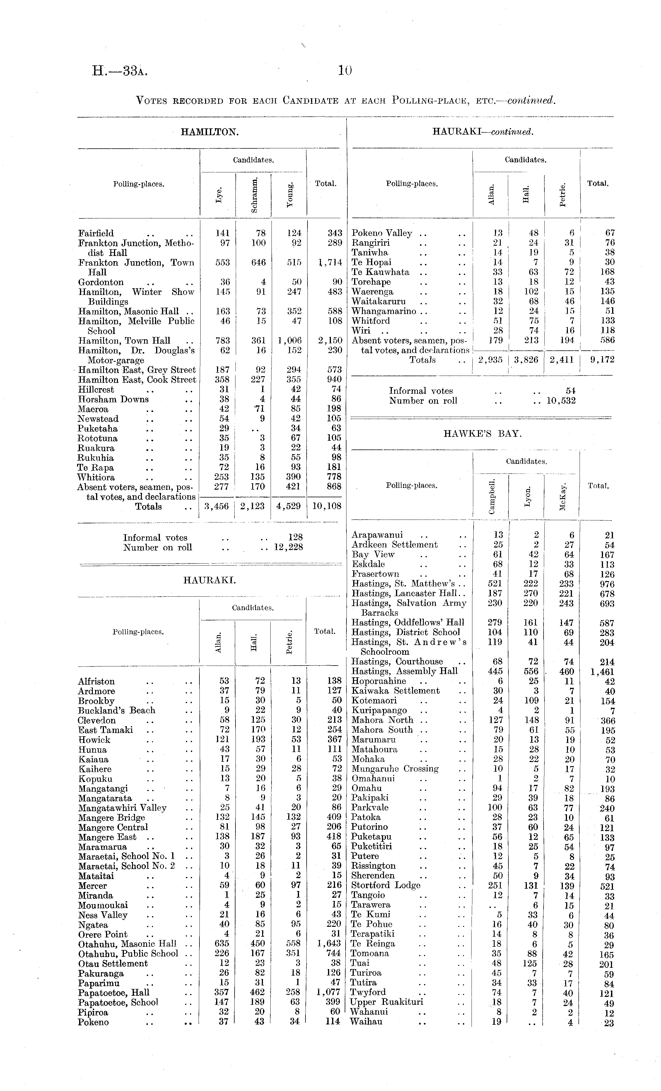Votes recorded for each Candidate at each Polling-place, etc. —continued.
