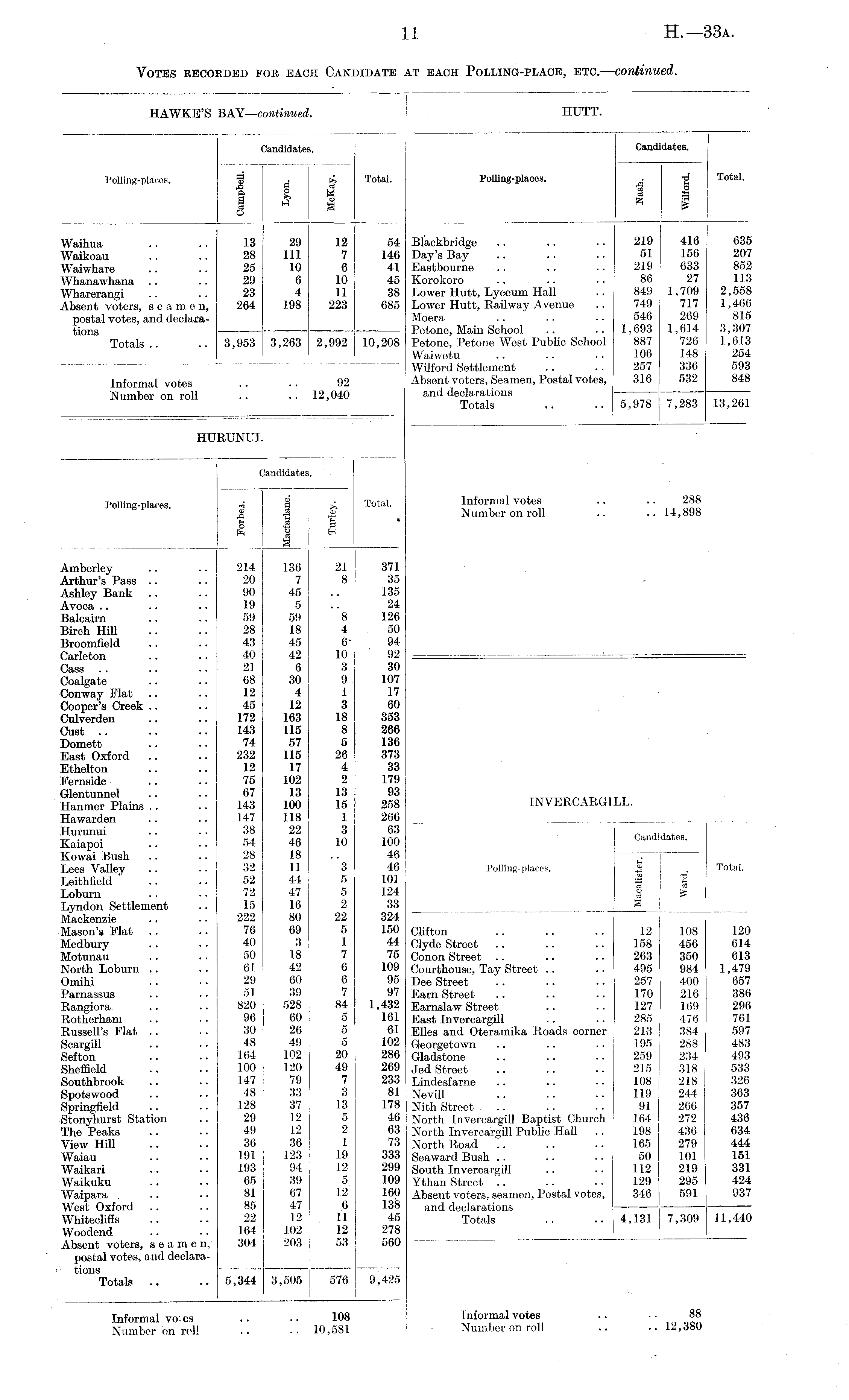 Votes recorded for each Candidate at each Polling-place, etc. —continued.