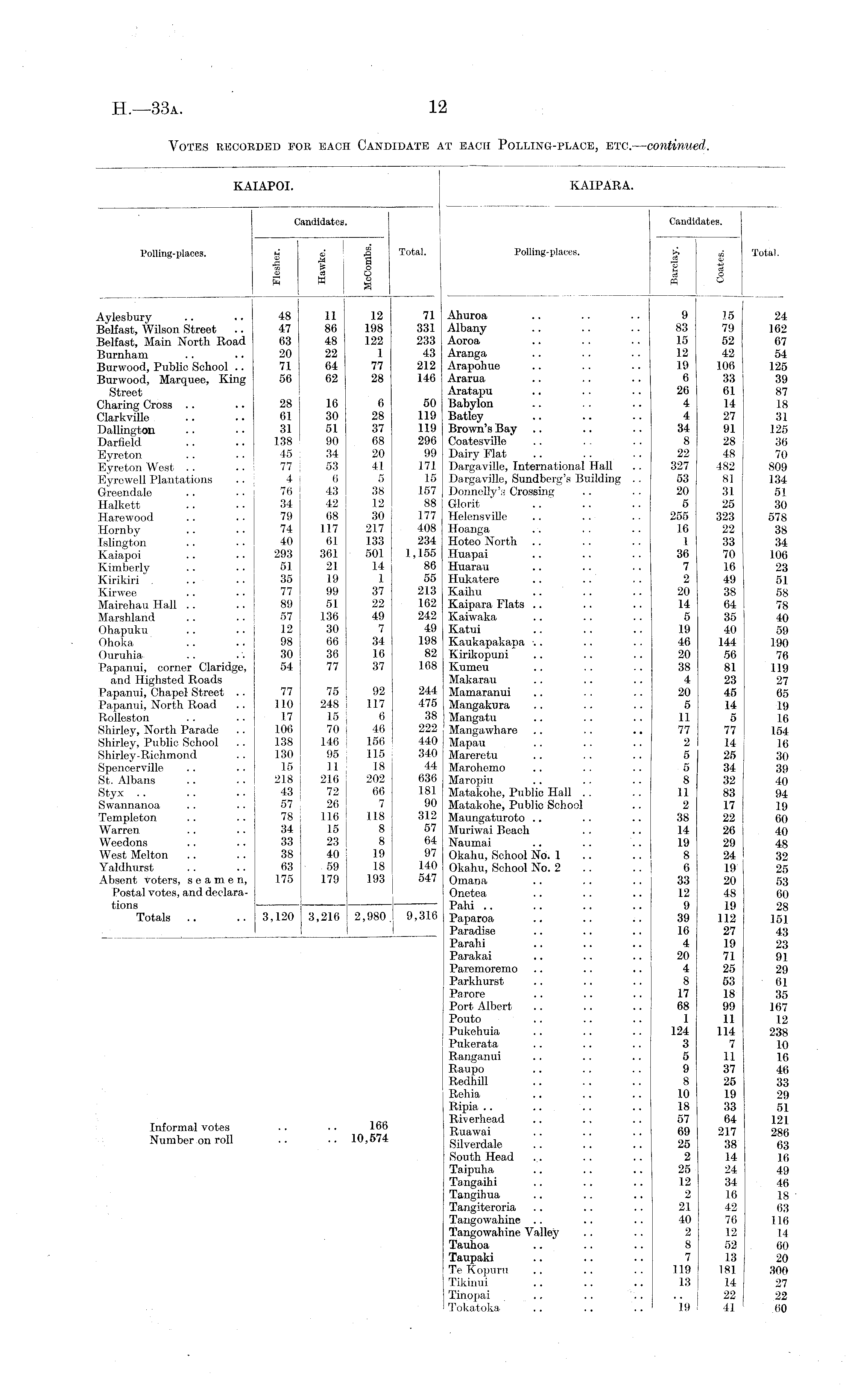 Votes recorded for each Candidate at each Polling-place, etc. —continued.