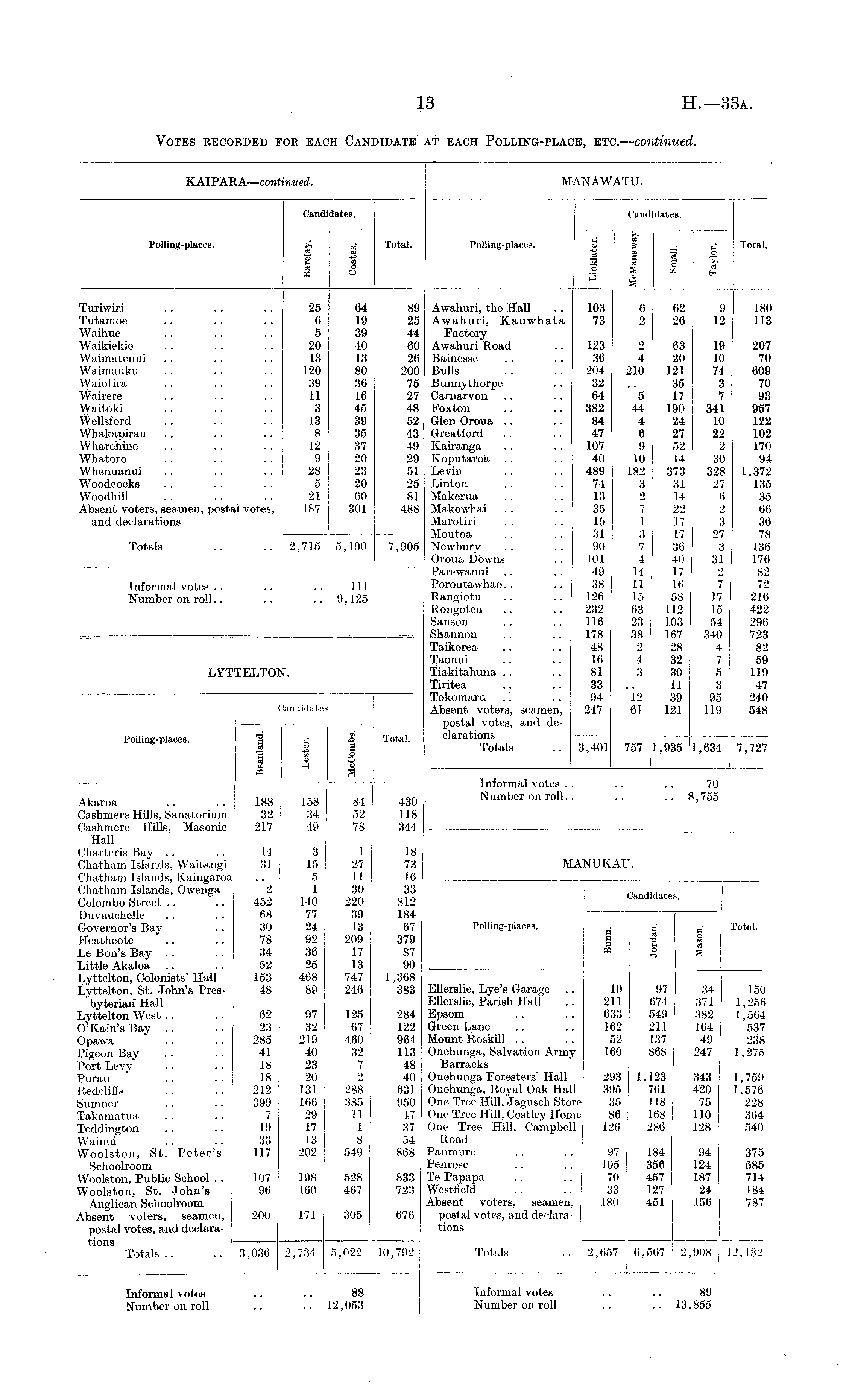 Votes recorded for each Candidate at each Polling-place, etc. —continued.