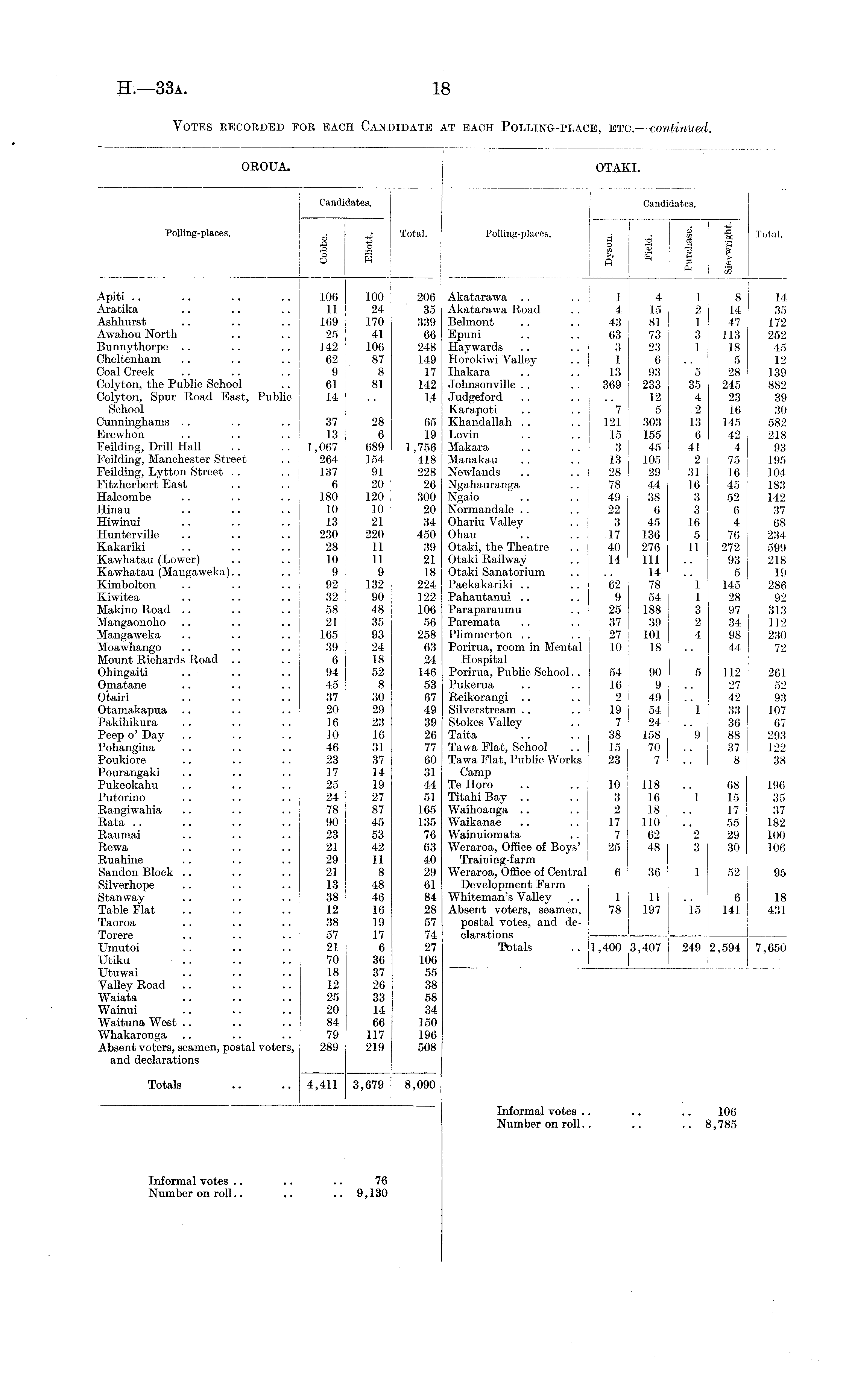 Votes recorded for each Candidate at each Polling -place, etc. —continued.