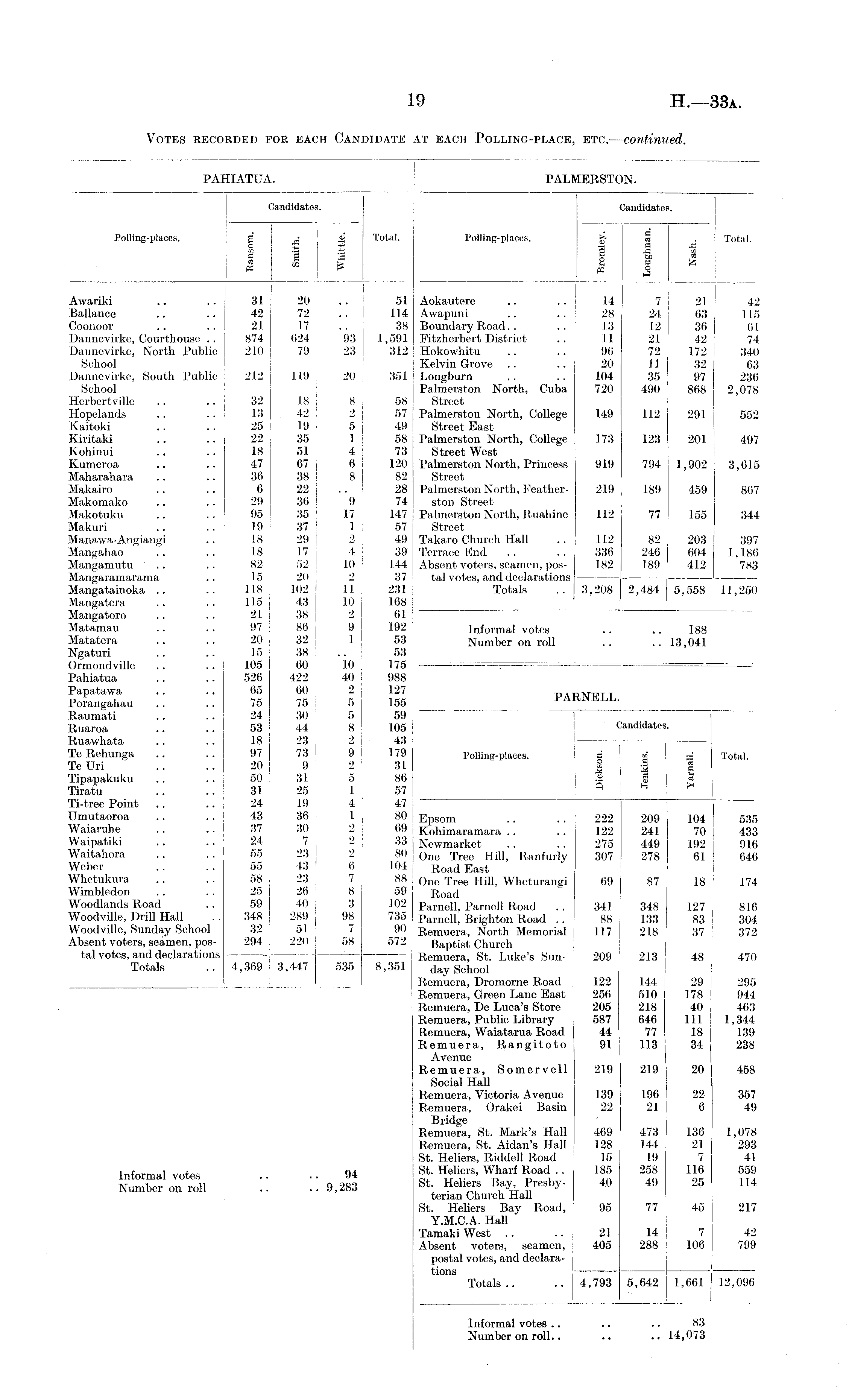 Votes recorded for each Candidate at each Polling-place, etc. —continued.