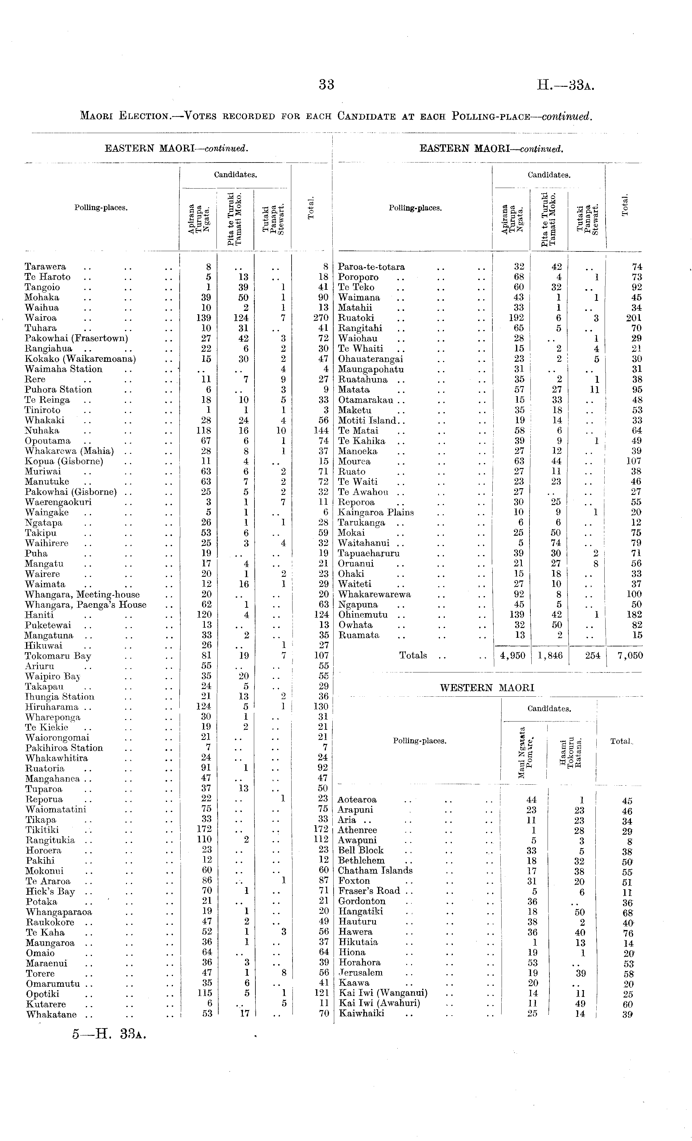 Maori Election.—Votes recorded for each Candidate at each Polling-place—continued.