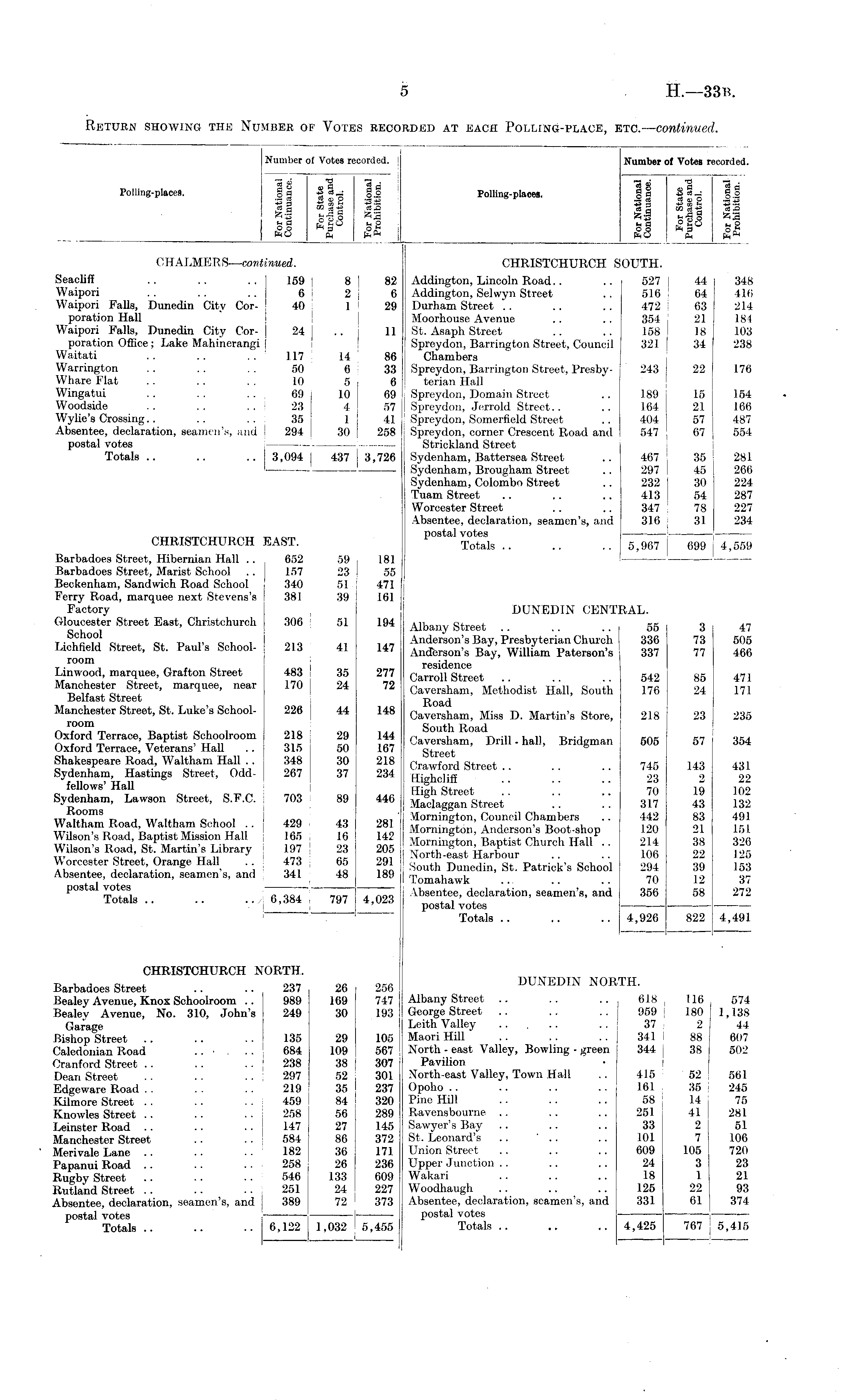 Number of Votes recorded. j Number of Votes recorded. Polling-places. g| ■§ 9 j go Polling-places. go S 3.J || Is SS| P ?! lis i§ fcf g'go *S i fcj S52 00 "a oi-j o 0 w a o Jr' . o P_, ft, P-I J fc© p4 | CHALMERS—continued. CHRISTCHURCH SOUTH. Seacliff .. .. .. 159 | 8 82 Addington, Lincoln Road.. .. 527 j 44 348 Waipori .. .. 6 2 6 Addington, Selwyn Street .. 516 64 416 Waipori Falls, Dunedin City Cor- 40 1 29 Durham Street .. .. .. 472 63 214 poration Hall Moorhouse Avenue .. .. 354 j 21 184 Waipori Falls, Dunedin City Cor- 24 .. 11 St. Asaph Street .. .. 158 I 18 103 poration Office; Lake Mahinerangi Spreydon, Barrington Street, Council 321 ) 34 238 Waitati .. .. .. 117 14 86 j Chambers Warrington .. .. .. 50 6 33 j Spreydon, Barrington Street, Presby- 243 | 22 176 Whare Flat .. .. .. 10 5 6 terian Hall Wingatui .. . . .. 69 10 69 Spreydon, Domain Street .. 189 15 154 Woodside . . .. . . 23 4 57 Spreydon, Jerrold Street.. .. 164 21 166 Wylie's Crossing.. .. . . 35 1 41 Spreydon, Somerfield Street .. 404 57 487 Absentee, declaration, seamen's, and 294 j 30 258 j Spreydon, corner Crescent Road and 547 67 554 postal votes Strickland Street Totals .. .. .. 3,094 f 437 3,726 Sydenham, Battersea Street .. 467 35 281 Sydenham, Brougham Street .. 297 45 266 Sydenham, Colombo Street .. 232 30 224 Tuam Street .. .. .. 413 54 287 j Worcester Street .. .. 347 78 227 Absentee, declaration, seamen's, and 316 31 234 CHRISTCHURCH EAST. j Totals "m67 (iOiT^Sy Barbadoes Street, Hibernian Hall .. 652 59 181 j Barbadoes Street, Marist School .. 157 23 55 Beckenham, Sandwich Road School 340 51 471 Ferry Road, marquee next Stevens's 381 39 161 Factory DUNEDIN CENTRAL. Gloucester Street East, Christchurch 306 51 194 Albany Street 55 3 47 t cu. j. 04 t> i> o 1. 1 0,0 „ ... Anderson's Bay, Presbyterian Church 336 73 505 Lichfield Street, St. Pauls School- 213 41 147 person's Bay, William Paterson's 337 77 466 room residence Linwood, marquee, Grafton Street 483 35 277 p arro ii st TPf ,+ tu9 85 4.71 Manchester Street, marquee, near 170 24 72 Caversham> Methodist Hall, South 176 24 171 -Delfast btreet Road Manchester Street, St. Luke's Schooi- 226 44 148 Gaversham, Miss D. Martin's Store, 218 23 235 Oxford Terrace Baptist Schoolroom 218 29 144 CavTreLm^Drill. hall, Bridgman 505 57 354 Oxford Terrace, Veterans Hall .. 315 50 167 Street Shakespeare Road, Waltham Hall 348 30 218 Crawford gtreet 745 U3 431 Sydenham, Hastings btreet, Odd- 267 37 234 Highcliff 9 3 9 22 fellows' Hall High Street ' !! !! 70 19 102 Sydenham, Lawson Street, S.F.C. 703 89 446 :vla ° laggan street .. .. 317 43 132 Waltham Road, Waltham School .. 429 43 281 j h n '' ttn 9? 1?! iiT-i > t> j x> in/r- • n 11 10c 1a iah Mornington, Anderson s Boot-shop 120 21 151 WJson s Road Baptist Miss l0 n Hall 65 16 142 : Mo rninIton ,B aptist Church Hall . 214 38 326 Wilson s Road, St. Martin s Library 197 23 205 AT " . / , Aa 00 Worcester Street Orange Hall 473 65 291 Xorth ' east Harbour . . . . 106 22 125 VV orcester btreet, Urange ilall .. 473 65 South Dunedin, St. Patrick's School 294 39 153 Absentee, declaration, seamen s, and 341 48 189 | Tomahawk 70 12 37 postal votes : ~~ „ Absentee, declaration, seamen's, and 356 58 272 Totals 6 > 384 797 4 ' 023 postal ™tes : Totals .. .. .. 4,926 822 4,491 . CHRISTCHURCH NORTH. ,, ,, , „„„ „„ 0 „ DUNEDIN NORTH. Barbadoes Street .. .. 237 26 256 : Bealey Avenue, Knox Schoolroom .. 989 169 747 | Albany Street .. .. .. 618 116 574 Bealev Avenue, No. 310, John's 249 30 193 George Street .. .. .. 959 180 1,138 Garage j| Leith Valley ..... .. 37 j 2 44 Bishop Street .. .. . . 135 29 105 Maori Hill .. .. .. 341 88 607 Caledonian Road • 684 109 567 North-east Valley, Bowling - green 344 38 502 Cranford Street .. .. . . 238 38 307 Pavilion Dean Street .. . . . . 297 52 301 North-east Valley, Town Hall .. 415 52 561 Edgeware Road . . . . . . 219 35 237 Opoho . . .. .. .. 161 35 245 Kilmore Street . . .. .. 459 84 320 Pine Hill .. .. .. 58 14 75 Knowles Street .. .. .. 258 56 289 Ravensbourne .. .. .. 251 41 281 Leinster Road . . .. .. 147 27 145 Sawyer's Bay .. .. .. 33 2 51 Manchester Street .. .. 584 86 372 St. Leonard's .. ' .. .. 101 7 106 Merivale Lane .. . . ■ ■ 182 36 171 Union Street .. .. .. 609 105 720 Papanui Road . . .. .. 258 26 236 Upper Junction .. .. .. 24 3 23 Rugby Street .. .. .. 546 133 609 Wakari .. .. .. 18 1 21 Rutland Street . . .. .. 251 24 227 Woodhaugh .. .. . . 125 22 93 Absentee, declaration, seamen's, and 389 72 373 Absentee, declaration, seamen's, and 331 61 374 postal votes postal votes Totals .. .. .. 6,122 1,032 5,455 Totals .. .. .. 4,425 767 5,415