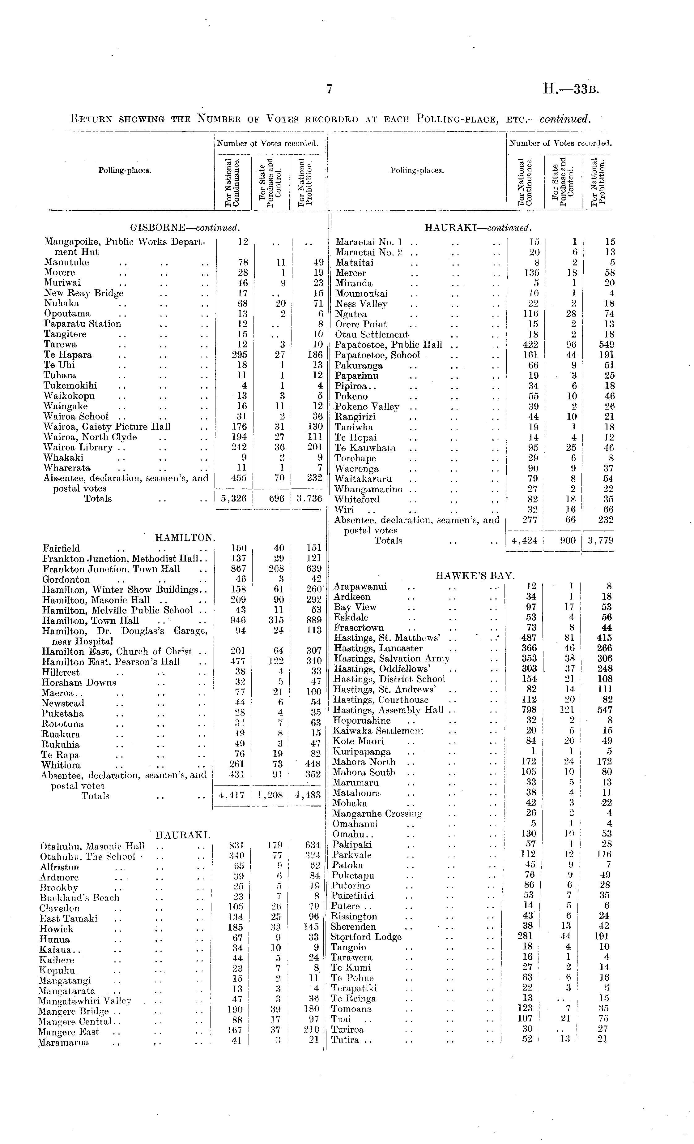 Number of Votes recorded. Number of Votes recorded. _ . goajfllci 1S © g ! *2 g Polling-places. go 05 go Polling-places. og 1$ 2"S o-2 5 a ■** m 8 '■£ ±i 52 -pjt. 3S a 5 CO s 03 rt EC e$-£ C3A fc| g|g f?s I fea Sg £s° Sg o § £s° S2 GISBORNE—continued. HAURAKI—continued. Mangapoike, Public Works Depart- 12 .. .. Maraetai No. 1 . . .. . . 15 1 15 ment Hut Maraetai No. 2 .. .. .. 20 6 13 Manutuke .. .. .. 78 11 49 Mataitai .. .. .. 8 2 5 Morere .. .. ... 28 1 19 Mercer .. .. .. 135 18 58 Muriwai .. .. . . 46 9 23 Miranda .. .. .. 5 1 20 New Reay Bridge .. .. 17 .. 15 Moumoukai .. .. .. j 10 1 4 Nuhaka .. .. . . 68 20 71 Ness Valley .. .. ,; j 22 2 18 Opoutama .. .. ,. 13 2 6 Ngatea .. .. .. I 116 28 74 Paparatu Station .. .. 12 .. 8 Orere Point .. .. .. 15 2 13 Tangitere .. .. .. 15 .. 10 Otau Settlement .. . . 18 2 18 Tarewa .. .. .. 12 3 10 Papatoetoe, Public Hall .. . . 422 96 549 Te Hapara .. .. .. 295 27 186 Papatoetoe, School .. .. 161 44 191 Te Uhi .. .. .. 18 1 13 Pakuranga .. .. .. 66 9 51 Tuhara .. .. .. 11 1 12 Paparimu .. .. .. 19-3 25 Tukemokihi .. .. .. 4 1 4 Pipiroa.. .. .. .. 34 6 18 Waikokopu . . .. .. 13 3 5 Pokeno .. .. . - 55 10 46 Waingake .. .. .. 16 11 12 Pokeno Valley .. .. .. 39 2 26 Wairoa School .. .. .. 31 2 36 Rangiriri .. .. .. 44 10 21 Wairoa, Gaiety Picture Hall .. 176 31 130 Taniwha .. .. .. 19 1 18 Wairoa, North Clyde .. .. 194 ! 27 111 Te Hopai .. .. . 14 4 12 Wairoa Library .. .. .. 242 j 36 201 Te Kauwhata .. .. .. 95 25 46 Whakaki .. .. .. 9 2 9 Torehape .. .. .. 29 6 8 Wharerata .. .. .. 11 1 7 Waerenga .. ... .. 90 9 37 Absentee, declaration, seamen's, and 455 70 232 Waitakaruru .. .. .. 79 8 54 postal votes -| 1 Whangamarino .. .. .. 27 2 22 Totals .. .. 5,326 696 3.736 Whiteford .. .. .. 82 18 35 Wiri _ 32 16 66 Absentee, declaration, seamen's, and 277 66 232 postal votes — HAMILTON. Totals .. .. 4.424 900 3,779 Fairfield .. .. . . 150 40 151 ' Frankton Junction, Methodist Hall. . 137 29 121 .Frankton Junction, Town Hall .. 867 208 639 t» nr Gordonton 46 3 42 A . HAWKE'S BAY. Hamilton, Winter Show Buildings.. 158 61 260 Arapawanui .. .. .. 12 1 8 Hamilton, Masonic Hall .. .. 209 90 292 Ardkeen . . . . .. 34 1 18 Hamilton, Melville Public School .. 43 11 53 gay View .. .. . . 97 17 53 Hamilton, Town Hall .. .. 946 315 889 Eskdale .. . . .. 53 4 56 Hamilton, Dr. Douglas's Garage, 94 24 113 Erasertown .. .. _ 73 8 44 near Hospital " Hastings, St. Matthews .. .." 487 81 415 Hamilton East, Church of Christ .. 201 64 307 Hastings, Lancaster . . . . 366 46 266 Hamilton East, Pearson's Hall .. 477 122 340 Hastings, Salvation Army .. 353 38 306 Hillcrest . 38 4 33 Hastings, Oddfellows .. . . 303 37 248 Horsham Downs !.' !! 32 5 47 Hastings, District School .. 154 21 108 Maeroa.. .. .. .. 77 21 100 Hastings, St. Andrews' .. .. 82 14 111 Newstead .. 44 6 54 Hastings, Courthouse . . .. 112 20 82 Puketaha '' 28 4 35 Hastings, Assembly Hall .. .. 798 121 547 Rototuna 1! !! ' 31 7 63 Hoporuahine 32 2 8 Ruakura 19 8 15 -Kaiwaka Settlement .. .. 20 5 lo Rukuhia :: :: :: 49 3 47 Kote Maori 84 20 49 Te Rapa . . .. .. 76 19 82 Kunpapanga .. .. .. 1 1 5 Whitiora .. .. .. 261 73 448 Mahora North . . . . . . 172 24 172 Absentee, declaration, seamen's, and 431 91 352 Mahora South . . .. .. 105 10 80 postal votes Marumaru .. .. .. 33 5 13 Totals .. .. 4,417 1,208 4,483 Matahoura .. . • •• 38 4 11 Mohaka . . . . ■ • 42 3 22 Mangaruhe Crossing .. .. j 26 2 4 j Omahanui .. .. .. i 5 1 . j 4 HAURAKJ. | Omahu.. .. .. .. 130 10 53 Otahuhu, Masonic Hall .. .. | 831 179 t 634 Pakipaki .. .. 57 1 28 Otahuliu, The School • .. .. 340 77 324; Parkvale .. 112 12 116 Alfriston ... .. •. 'o5 9 62 j Patoka .. • • - • 4o j 9 7 Ardmore .. .. - • 39 6 84 Puketapu .. • ■ • • j 76 J 9 j 49 Brookbv .. .. • ■ j 25 5 19 Putorino .. . . .. j 86 I 6 j 28 Buekland's Beach .. .. 23 7 8 Pnketitiri .. .. . • 53 . 7 35 Clevedon .. .. 105 26 79 Putere .. .. .. .. j 14 j 5 6 East Tamaki .. .. . ■ 134 25 96 Rissington .. .. .. I 43 6 24 Howick .. .. • ■ 185 33 145 Sherenden .. . • • • , 38 13 42 Hunua .. . ■ ■ • 67 9 33 StQrtford Lodge .. .. j 281 44 191 Kaiaua.. .. •• 34 10 9 Tangoio .. .. . ■ j 18 4 10 Kaih ere .. • • • • 44 5 24 Tarawera .. . .. 16 1 4 Kopuku . . • ■ • • 23 7 8 Te Kumi .. ■ • 27 2 14 Mangatangi .. ■ • 15 2 11 Te . . ■ ■ 63 6 16 Mangatarata .. .. • ■ 13 3 4 Terapatiki . . . . .. 22 3 5 Mangatawhiri Valley ... . - 47 3 36 Te Reinga . . • ■ 13 • * ' Mangere Bridge .. .. .. 190 j 39 180 Tomoana . . .123 7 35 Mangere Central.. .. 88 17 97 Tuai .. .. .. •• 107 21 75 Mangere East .. .. ■■ 107 ; 37 210 Turiroa .. .. .. j 30 .. 27 Maramarua ., ,. • ■ 41 • 3 21 Tutira .. .. ,. •• ; 52 13 21