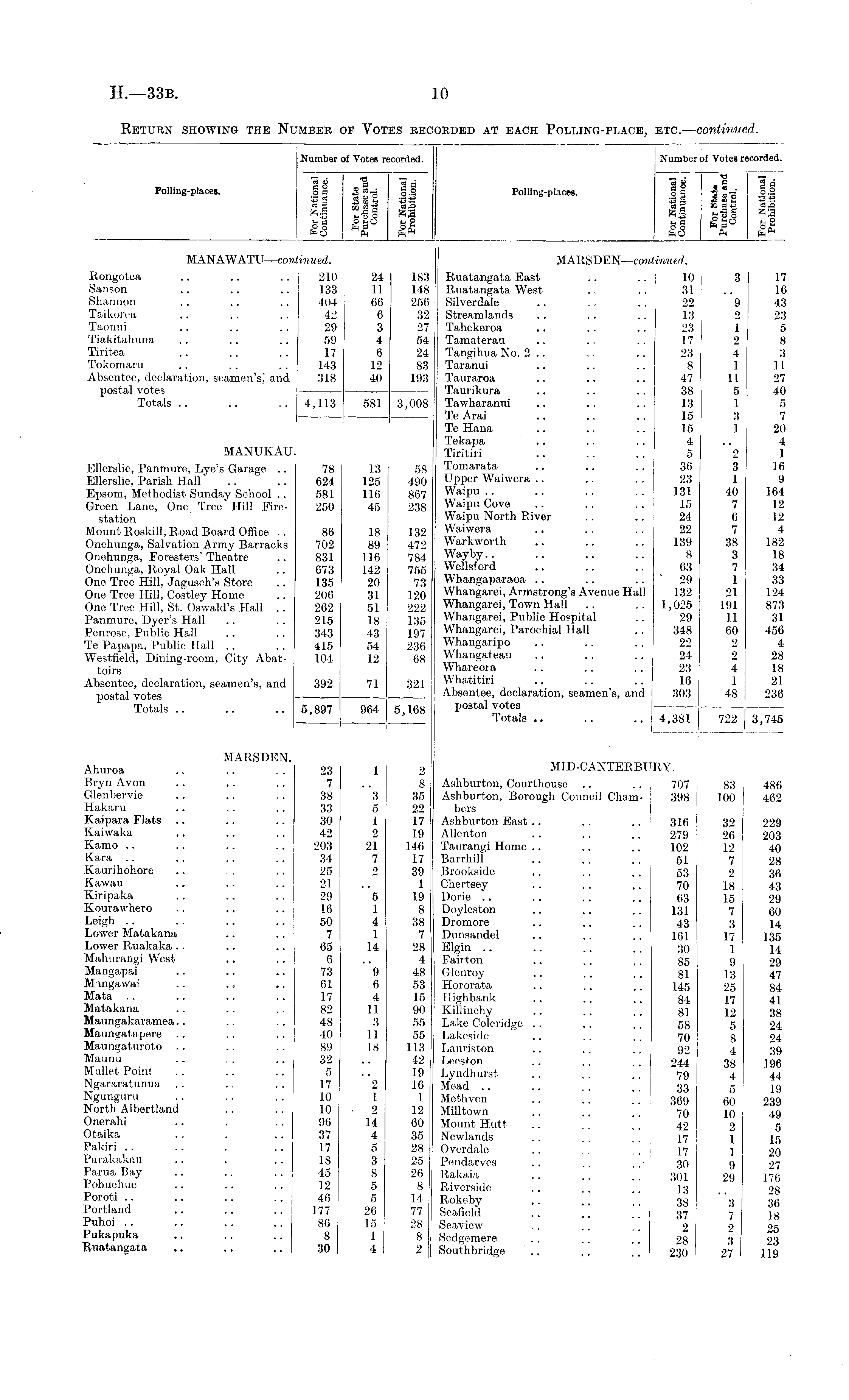 Number of Votes recorded. Number of Votes recorded. "i & H * a dg I ,c "Si Polling-places. op -2 o-2 Polling-places. o « • * ©7? °® II lis 3S i| ; £sf P og igs 5 S| gg feS° s2 ho CM hO I C4 EH" MANAWATU—continued. MARSDEN—continued. Rongotea .. .. .. 210 24 183 Ruatangata East .. .. 10 3 17 Sanson .. .. .. 133 11 148 Ruatangata West .. .. 31 .. 16 Shannon .. .. .. 404 66 256 Silverdale .. . , .. 22 9 43 Taikorea .. .. .. 42 6 32 Streamlands .. .. . . J 3 2 23 Taonui .. .. .. 29 3 27 Tahekeroa .. .. .. 23 1 5 Tiakitahuna .. .. .. 59 4 54 Tamaterau .. .. .. ] 7 2 8 Tiritea .. .. .. 17 6 24 Tangihua No. 2 .. ,. .. 23 4 3 Tokomaru .. .. .. 143 12 83 Taranui .. .. .. 8 1 11 Absentee, declaration, seamen's; and 318 40 193 Tauraroa .. .. .. 47 11 27 postal votes Taurikura .. .. .. 38 5 40 Totals .. .. .. 4,113 581 3,008 Tawharanui .. .. .. 13 1 5 Te Arai .. .. . . 15 3 7 Te Hana .. .. .. 15 1 20 Tekapa .. .. . . 4 .. 4 MANUKAU. Tiritiri 5 2 1 Ellerslie, Panmure, Lye's Garage .. 78 13 58 Tomarata .. .. .. 36 3 16 Ellerslie, Parish Hall .. .. 624 125 490 Upper Waiwera .. .. .. 23 1 9 Epsom, Methodist Sunday School .. 581 116 867 Waipu.. .. .. .. 131 40 164 Green Lane, One Tree Hill Fire- 250 45 238 Waipu Cove .. .. .. 15 7 12 station Waipu North River .. .. 24 6 12 Mount Roskill, Road Board Office .. 86 18 132 Waiwera .. .. .. 22 7 4 Onehunga, Salvation Army Barracks 702 89 472 Warkworth .. .. .. 139 38 182 Onehunga, Foresters'Theatre .. 831 116 784 Wayby.. .. .. .. 8 3 18 Onehunga, Royal Oak Hall .. 673 142 755 Wellsford .. .. .. 63 7 34 One Tree Hill, Jagusch's Store .. 135 20 73 Whangaparaoa .. .. .. 29 1 33 One Tree Hill, Costley Home .. 206 31 120 Whangarei, Armstrong's Avenue Hal! 132 21 124 One Tree Hill. St. Oswald's Hall .. 262 51 222 Whangarei, Town Hall .. .. 1,025 191 873 Panmure, Dyer's Hall .. .. 215 18 135 Whangarei, Public Hospital .. 29 11 31 Penrose, Public Hall .. .. 343 43 197 Whangarei, Parochial Hall .. 348 60 456 Te Papapa, Public Hall .. .. 415 54 236 WJmngaripo .. .. .. 22 2 4 Westfield, Dining-room, City Abat- 104 12 68 Whangateau .. .. .. 24 2 28 toirs Whareoia .. .. . . 23 4 18 Absentee, declaration, seamen's, and 392 71 321 Whatitiri .. .. .. 16 1 21 postal votes Absentee, declaration, seamen's, and 303 48 j 236 Totals .. .. .. 5,897 964 5,168 postal votes Totals.. .. .. 4,381 722 j 3,745 MARSDEN. Ahuroa .. .. .. 23 1 2 MID-CANTERBURY. Bryn Avon .. .. .. 7 .. 8 Ashburton, Courthouse .. .. 707 , 83 486 Glenbervie .. .. .. 38 3 35 Ashburton, Borough Council Cham- j 398 | 100 i 462 Hakaru .. .. .. 33 5 22 bers Kaipara Flats .. .. .. 30 1 17 Ashburton East .. .. .. 316 32 229 Kaiwaka .. .. .. 42 2 19 Allenton .. .. .. 279 26 203 Kamo .. .. .. .. 203 21 146 Taurangi Home .. .. .. 102 12 40 Kara . . .. .. .. 34 7 17 Barrhill .. .. .. 51 7 28 Kaurihohore .. . . . , 25 2 39 Brookside .. .. .. i 53 2 36 Kawau ,. .. .. 21 .. 1 Chertsey .. .. .. 70 18 43 Kiripaka .. .. 29 5 19 Dorie .. .. .. .. 63 ]g 29 Kourawhero ,, .. .. 16 1 8 Doyleston .. .. .. 131 7 60 Leigh .. .. .. .. 50 4 38 Dromore .. .. .. 43 3 14 Lower Matakana .. .. 7 1 7 Dunsandel .. .. .. 161 I 17 135 Lower Ruakaka.. ., .. 65 14 28 Elgin .. .. .. .. 30 1 14 Mahurangi West .. .. 6 .. 4 Fairton .. .. .. 85 9 29 Mangapai .. .. .. 73 9 48 Glenroy .. .. .. 81 13 47 Mmgawai .. .. .. 61 6 53 Hororata .. .. .. 145 25 84 Mata .. .. .. .. 17 4 15 Highbank .. .. .. 84 17 41 Matakana .. .. .. 82 11 90 Killinchy .. .. .. 81 12 38 Maungakaramea.. .. .. 48 3 55 Lake Coleridge .. .. .. 58 ! 5 24 Maungatapere .. . . .. 40 11 55 Lakeside .. ,. ,. 70 8 24 Maungaturoto .. .. .. 89 18 113 Lauriston .. .. .. 92 4 39 Maunu .. .. .. 32 .. 42 Leeston .. .. .. 244 38 196 Mullet Point .. .. .. 5 .. 19 Lyndhurst .. .. .. 79 [ 4 44 Ngararatunua .. .. .. 17 2 16 Mead .. .. .. 33 I 5 19 Ngunguru .. .. . . 10 1 1 Methven .. .. ' 369 60 239 North Albertland . . . . 10 2 12 Milltown .. .. ' 70 10 49 Onerahi .. . .. 96 14 60 Mount Hutt . . . . . . 40 2 5 Otaika .. . .. 37 4 35 Newlands . . .. 17 j jg Pakiri .. .. . ., 17 5 28 Overdale .. , . ! 17 j 20 Parakakati .. . .. 18 3 25 Pendarves .. .. 30 9 07 Parua Bay .. ., .. 45 8 26 Rakaia .. 301 29 176 Pohuehue .. .. .. 12 5 8 Riverside .. .. 13 .. 28 Poroti .. .. .. .. 46 5 14 Rokeby .. , 38 3 36 Portland .. .. .. 177 26 77 Seafield .. .. .. 37 7 18 Puhoi .. .. .. .. 86 15 28 Seaview .. .. .. 2 2 Pukapuka .. .. .. 8 1 8 Sedgemere .. .. . 28 3 '>3 Ruatangata .. .. .. 30 4 2 Southbridge ,, 230 27 119