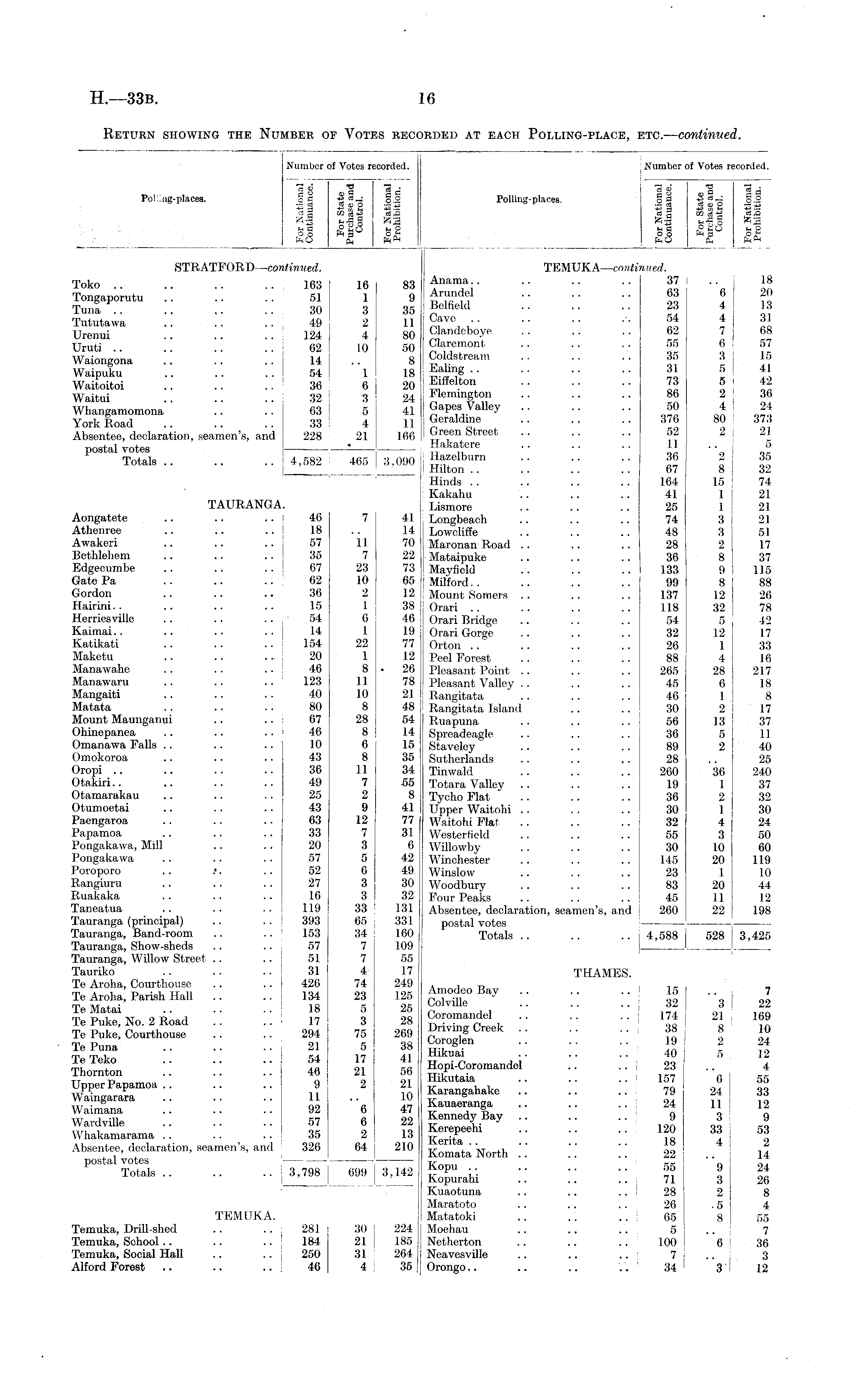 Number of Votes recorded. Number of Votes recorded. "5 ® "3 © T2 *3 ri r-* O fj C r-* O d} ® r - C3 Po!:.ng-places. o c c8 ~' 5.9 Polling-places. o a o.2 53 3 -2 £ 2 £ .-ti 52 ss rtg CflcjP CSX! k| *•§§ «3 s -g§ *2 r£ HO fe 2 fc r? fc 2 OQRpj O Q W 3 O*" 1 STRATFORD—continued. I TEMUKA—continued. Toko 163 16 §3 j Anama.. .. .. .. 37 . j 18 Tongaporutu 51 1 9 63 6 20 Tuna .. .. ,. .. 30 3 35 ! ® elfield • • • ■ • • ?3 4 13 Tututawa .. .. .. 49 2 11 £ave • • •• •• " * Urenui 124 4 80 Clandeboye 62 7 68 Uruti 62 10 50 : Glaremont 55 6 57 Waiongona 14 8 Coldstream 35 g i 15 Waipuku 54 1 18 paling 31 5 I 41 Waitoitoi .. .. .. 36 6 20 ® lffel . ton j ■ '3 6 42 Waitui 32 3 24 I 86 2 36 Whangamomona .. .. 63 5 41 1 Gapes Valley 50 4 24 York Road .. .. .. 33 4 11 Geralduie t • • • ■ 2 l'< Absentee, declaration, seamen's, and 228 21 166 I r ® en street .. .. .. 52 2 21 postal votes , Hakatere 11 . 5 Totals.. .. .. 4,582 465 3,090 i gazelburn .. .. .. 36 2 35 I 1 Hilton .. .. .. .. 67 8 32 ' j Hinds .. .. .. .. 164 15 74 Kakahu .. .. .. 41 1 21 TAURANGA. \ Lismore .. .. .. 25 1 j 21 Aongatete .. .. .. 46 7 41 Longbeach .. .. .. 74 3 21 Atbenree .. .. .. 18 . . 14 Loweliffe .. .. .. 48 3 51 Awakeri .. .. .. 57 11 70 1 Maronan Road .. .. .. 28 2 17 Bethlehem .. .. .. 35 7 22 : Mataipuke .. .. .. 36 8 37 Edgeeumbe .. .. .. 67 23 73 Mayfield . . .. .. 133 9 I 115 Gate Pa .. .. .. 62 10 65 Milford.. .. .. .. 99 8 88 Gordon .. .. .. 36 2 12 Mount Somers .. .. .. 137 12 26 Hairini.. .. .. .. 15 1 38 |j Orari .. .. .. .. 118 32 78 Herriesville .. .. .. j • 54 6 46 :j Orari Bridge .. .. .. 54 5 42 Kaimai.. .. .. .. 14 1 19 Orari Gorge .. .. .. 32 12 17 Katikati .. .. .. 154 22 77 Orton .. .. .. .. 26 1 33 Maketu .. .. ... 20 1 12 p ee l Forest .. .. .. 88 4 16 Manawahe .. . . . . 46 8 - 26 Pleasant Point .. .. .. 265 28 217 Manawaru .. .. .. 123 11 78 Pleasant Valley . . .. .. 45 6 18 Mangaiti .. .. .. 40 10 21 Rangitata .. .. .. 46 1 8 Matata .. .. .. 80 8 48 I Rangitata Island .. .. 30 2 17 Mount Maunganui .. .. 67 28 54 Ruapuna .. .. .. 56 13 37 Ohinepanea .. .. .. 46 8 14 Spreadeagle .. .. .. 36 5 11 Omanawa Falls .. .. .. 10 6 15 Staveley .. .. .. 89 2 40 Omokoroa .. .. .. 43 8 35 Sutherlands .. .. .. 28 .. 25 Oropi .. .. .. .. 36 11 34 Tinwald .. .. .. 260 36 240 Otakiri.. .. .. .. 49 7 55 Totara Valley .. .. .. 19 1 37 Otamarakau .. .. .. 25 2 8 Tycho Flat .. .. .. 36 2 32 Otumoetai .. .. .. 43 9 41 Upper Waitohi .. .. .. 30 1 30 Paengaroa .. .. .. 63 12 77 Waitohi Flat .. .. .. 32 4 24 Papamoa .. .. .. 33 7 31 Westerfield .. .. .. 55 3 50 Pongakawa, Mill .. .. 20 3 6 Willowby .. .. .. 30 10 60 Pongakawa .. .. .. 57 5 42 Winchester .. .. .. 145 20 119 Poroporo .. . .. 52 6 | 49 Winslow .. .. .. 23 1 10 Rangiuru .. .. .. 27 3 | 30 Woodbury .. . . .. 83 20 44 Ruakaka .. .. .. 16 3 32 Four Peaks .. .. .. 45 11 12 Taneatua .. . . .. 119 33 ' 131 Absentee, declaration, seamen's, and 260 22 198 Tauranga (principal) .. .. 393 65 331 postal votes Tauranga, Band-room .. .. 153 34 160 Totals .. .. ..4,588 528 3,425 Tauranga, Show-sheds .. .. 57 7 109 1 Tauranga, Willow Street .. .. 51 7 55 Tauriko .. .. .. 31 4 17 THAMES. Te Aroha, Courthouse .. .. 426 74 249 , , „ . IS'— ;; :: 'ft » » " V. :: j g "31 22 Te Puke, No. 2 Road . . .. 17 3 28 Coromandel .. .. .. 174 21 169 Te Puke. Courthouse .. .. 294 75 269 l ? nvm % Creek ' • "' '' f8 8 10 TePuna 21 5 38 19 2 24 Te Teko .. .. .. 54 17 41 , :' *" '' 5 j l2 A Thornton .. .. .. 46 21 56 Hopi-Coromandel .. .. 23 4 T t t> n o oi Hikutaia .. .. .. 157 6 55 U 10 Karangahake 79 24 33 Sana " " " 92 "el « g™& 24 11 12 Wardville 57 6 j 22 K™hi 1"0 33 53 Whakamarama .. .. . . 35 2 1 13 K . P * * i c a o Absentee, declaration, seamen's, and 326 64 210 ,"vr *' 00 , i , i ivomata North .. .. .. 22 .. 14 postal votes „ __ _ _. Totals.. .. ..|3,798 j 699 3,142 f opu ** " " & 24 I J I Kopurahi .. .. .. 71 3 26 Kuaotuna .. .. .. 28 2 8 Maratoto .. .. .. 26 .5 4 TEMUKA. Matatoki .. . . .. 65 8 55 Temuka, Drill-shed .. .. i 281 30 ! 224 Moehau .. .. .. 5 .. 7 Temuka, School.. .. .. 184 21 185 h Netherton .. .. .. 100 6 36 Temuka, Social Hall .. .. 250 31 264 Neavesville .. .. .. 7 .. 3 Alford Forest .. .. .. I 46 4 35 || Orongo.. .. .. .. ' 34 1 3 12