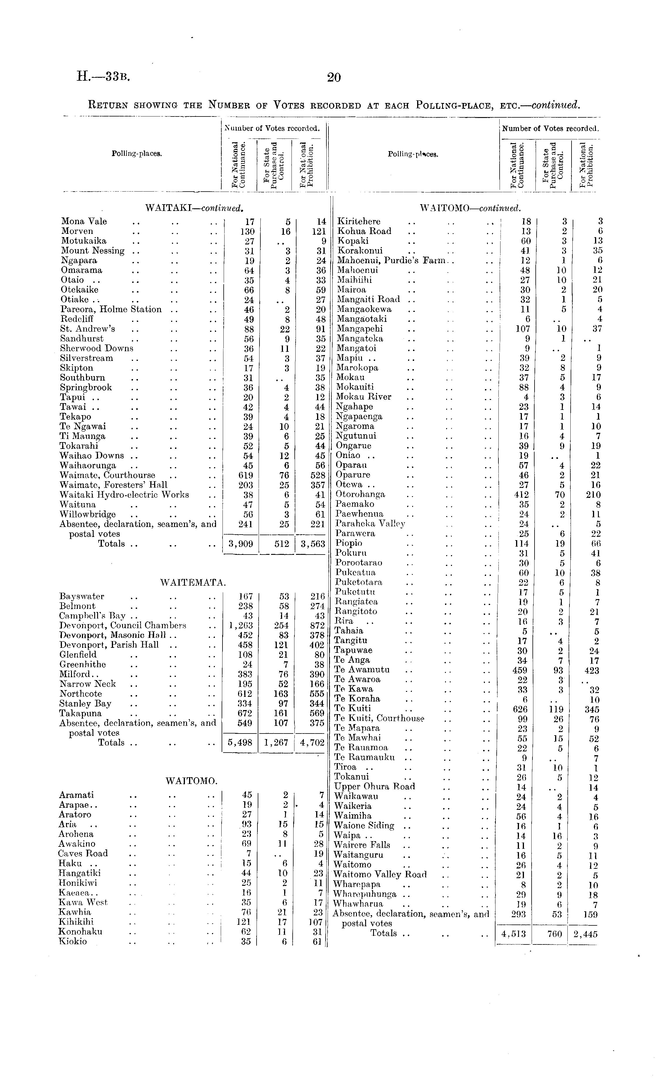 Return showing the Number of Votes recorded at each Polling-place, etc.—continued.