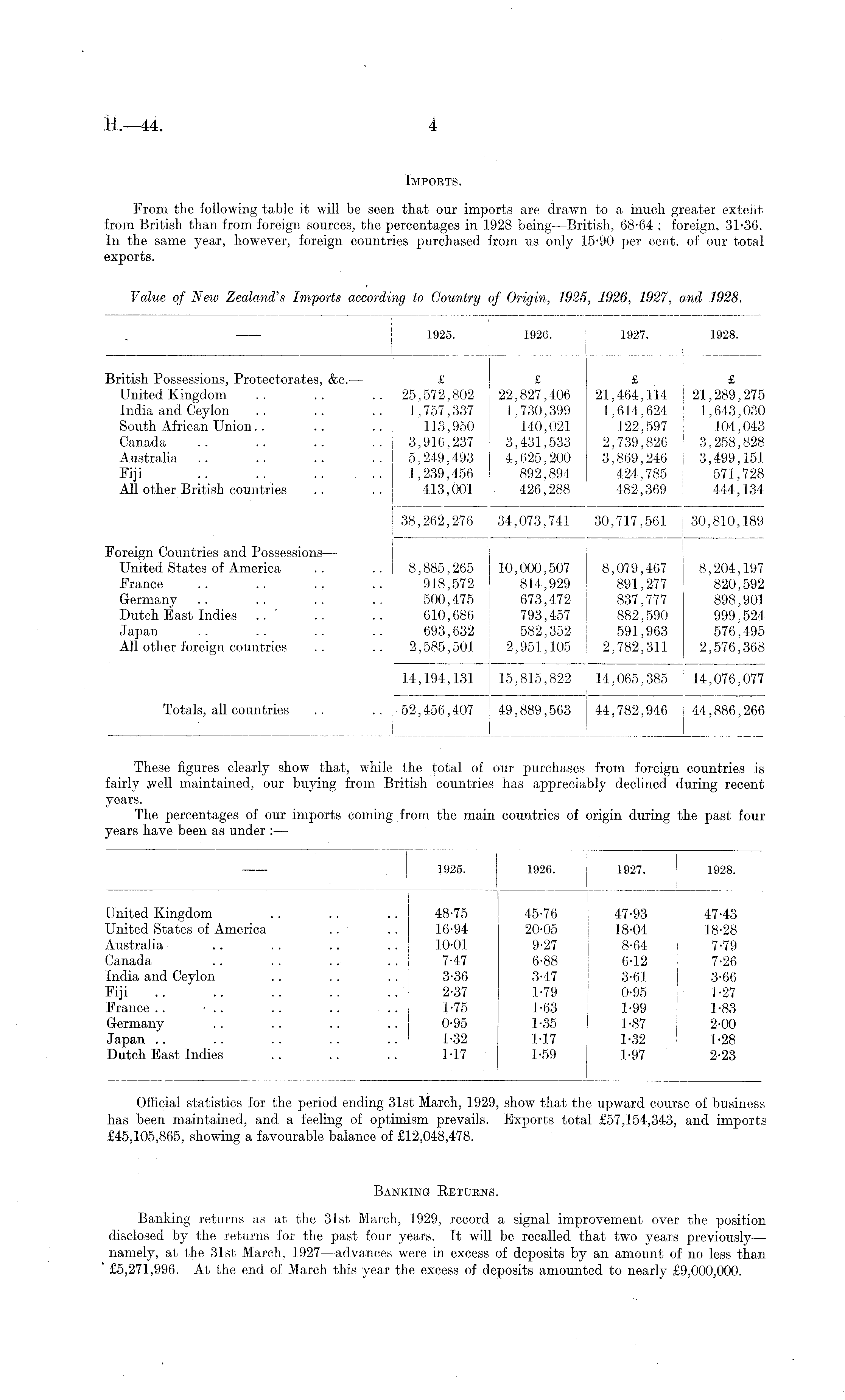 Value of New Zealand's Imports according to Country of Origin, 1925, 1926, 1927, and 1928.