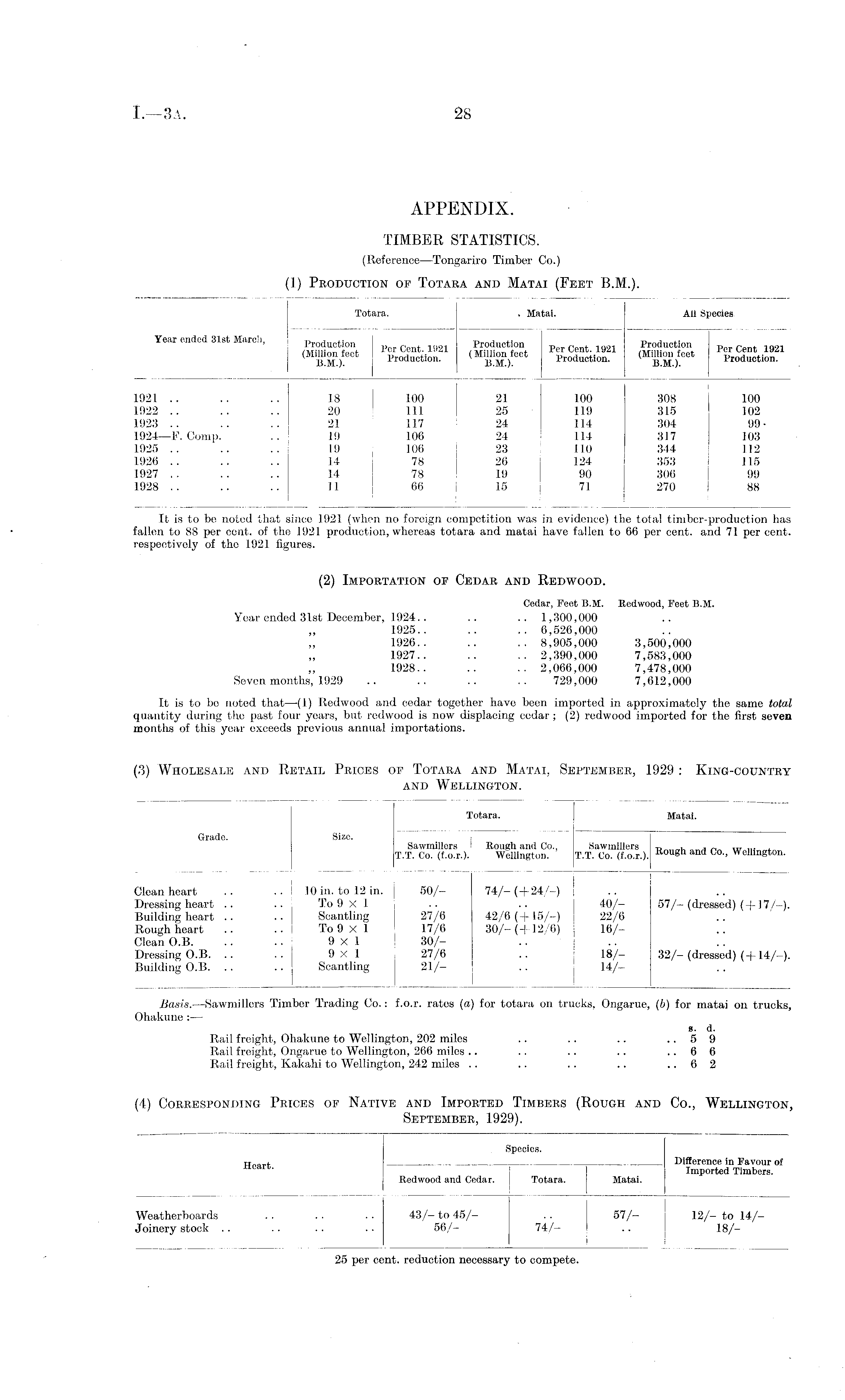 (3) Wholesale and Retail Prices of Totara and Matai, September, 1929: King-country and Wellington.