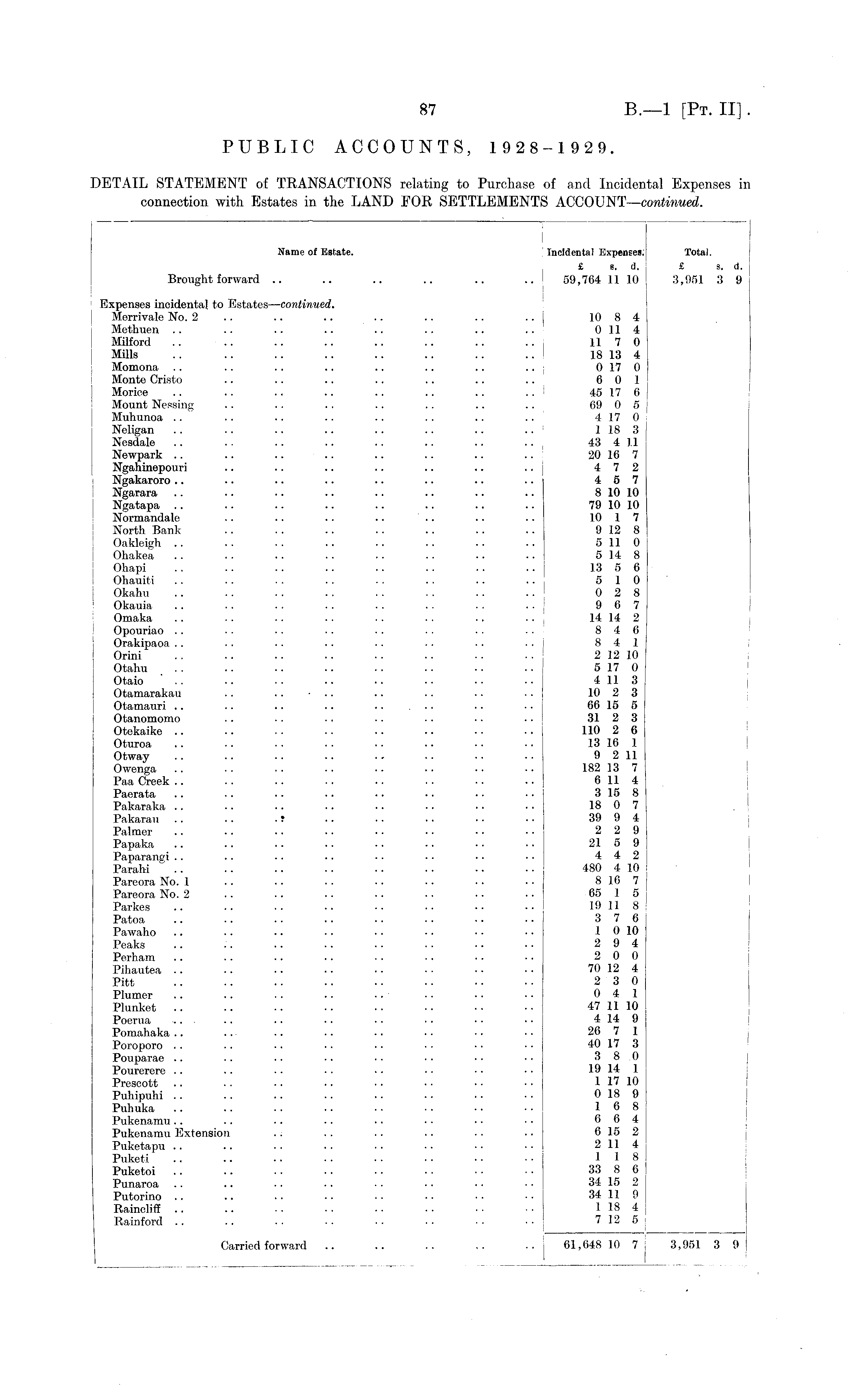 Name of Estate. Incidental Expenses. Total. £ s. d. £ s. d. Brought forward .. .. .. .. .. .. 59,764 11 10 3,951 3 9 Expenses incidental to Estates—continued. Merrivale No. 2 .. .. .. .. .. .. .. 10 8 4 Methuen .. .. .. .. .. .. .. .. 0114 Milford .. .. .. .. .. .. .. .. 11 7 0 Mills . . .. .. .. .. .. .. .. 18 13 4 Momona .. .. .. .. .. .. .. .. 0 17 0 Monte Cristo .. .. .. .. .. .. .. 601 Morice .. .. .. .. .. .. .. .. 45 17 6 Mount Nessing .. .. .. .. .. .. .. 69 0 5 Muhunoa .. .. .. .. .. .. .. .. 4 17 0 Neligan . . .. .. .. . . .. .. .. 1 18 3 Nesdale .. . . .. .. .. .. .. .. 43 4 1.1 Newpark .. . . .. .. .. .. .. .. 20 16 7 Ngahinepouri .. .. .. .. .. .. .. 472 Ngakaroro .. .. .. .. .. .. .. .. 457 Ngarara .. .. .. .. .. .. .. .. 8 10 10 Ngatapa .. .. .. .. .. .. .. .. 79 10 10 Normandale .. .. .. .. .. .. .. 10 1 7 North Bank .. . . .. .. .. .. .. 9 12 8 Oakleigh .. .. .. .. .. .. .. .. 5110 Ohakea .. .. .. .. • • • • ■. ■. 5 14 8 Ohapi .. .. .. .. .. .. .. .. 13 5 6 Ohauiti .. .. .. .. ■■ •• ... 510 Okahu .. .. .. .. .. .. .. .. 028 Okauia .. .. . . . . . . . ■ • ■ .. 9 6 7 Omaka .. ■ . .. .. .. . . .. ... 14 14 2 Opouriao .. .. .. .. .. ■■ .. 846 Orakipaoa .. .. .. .. .. •• .. ■. 841 Orini . . .. .. .. . . . • • • ■. ! 2 12 10 Otahu . . .. .. .. • • • • •• •. 5 17 0 Otaio .. .. •• .. •• • • 4113 OtamarakaU .. .. • .. .. .. •. .. j 10 2 3 Otamauri .. .. .. .. .. • • • • • • I 66 15 5 Otanomomo .. .. • . •. . ■ • • ■ • 31 2 3 ! Otekaike .. .. ■■ ■■ .. •• 11026 Oturoa .. •. .. ■• •• .. •■ • • | 13 16 1 Otway .. .. •• •. •- •• • • • • 9 2 11 Owenga .. ■ . . . . ■ • • • • ■ • • • 1 182 13 7 Paa Creek .. .. .. .. .. .. •• ■• | 6114 Paerata .. .. .. •. •• • ■ • • • • 3 15 8 Pakaraka .. ■. .. • ■ ■. ■ • • • • ■ 18 0 7 Pakarau .. • • ■ ? • ■ • • • • • • • • 39 9 4 Palmer .. .. .. •• ■■ •• •• 229 Papaka .. ■. .. . ■ • • • • • • • • 21 5 9 Paparangi .. •• •• •• •• 442 Parahi .. .. .. .. .. .. •. • • 480 4 10 Pareora No. 1 . . • • . . • • ■ • • • • • 8 16 7 Pareora No. 2 .. ■. • • ■. ■ • • • • • 65 1 5 Parkes .. .. .. •• •• •• •• 19 11 8 Patoa .. .. .. •• •• •• 376 Pawaho .. • • . • • • .... .. .. 1 0 10 Peaks .. .. .. ■. ■• •• ■ • • ■ 2 9 4 Perham .. .. .. .. •• •• •• 200 Pihautea .. •. •• •■ • • • ■ • • • • 70 12 4 Pitt .. .. .. .. •• •• • • •• 230 Plumer .. .. . . . • ■ • • • • • ■ • 0 4 1 Plunket .. .. ■■ •• 47 11 10 Poerua ,. .. .. •. • • ■ • • • • • 4 14 9 Pomahaka .. ... .. •. •. • • • • • • 26 7 1 Poroporo . . •. ■. •• •• ■• • • • ■ 40 17 3 Pouparae .. .. .. •• •• 380 Pourerere .. .. . • • . • ■ • • • • • • 19 14 1 Prescott .. • • • • •. ■ • ■ ■ • • ■ • 1 17 10 Puhipuhi .. .. . . .. • • • • • ■ ■ • 0 18 9 Puhuka .. .. .. .. •• •• 168 Pukenamu.. .. .. .. .. •• 664 Pukenamu Extension .. • . . • ■ • • ■ • • 6 15 2 Puketapu .. .. .. .. •• •• •• •• 2114 Puketi .. .. •• •• •• •• 118 Puketoi .. .. ■ • • • • • • ■ ■ • ■ • 33 8 6 Punaroa .. .. • • •. ■ • ■ • • • ■ • 34 15 2 Putorino .. .. . • • • ■ ■ • • • • • • 34 11 9 Rainoliff .. .. ■ • • . • • • • ■ • • • 1 18 4 Rainford .. .. . . ■ • • ■ ■ • • • 7 12 5 ' 1 Carried forward .. .. .. .. .. j 61,648 10 7 I 3,951 3 9 ■ 1 I J