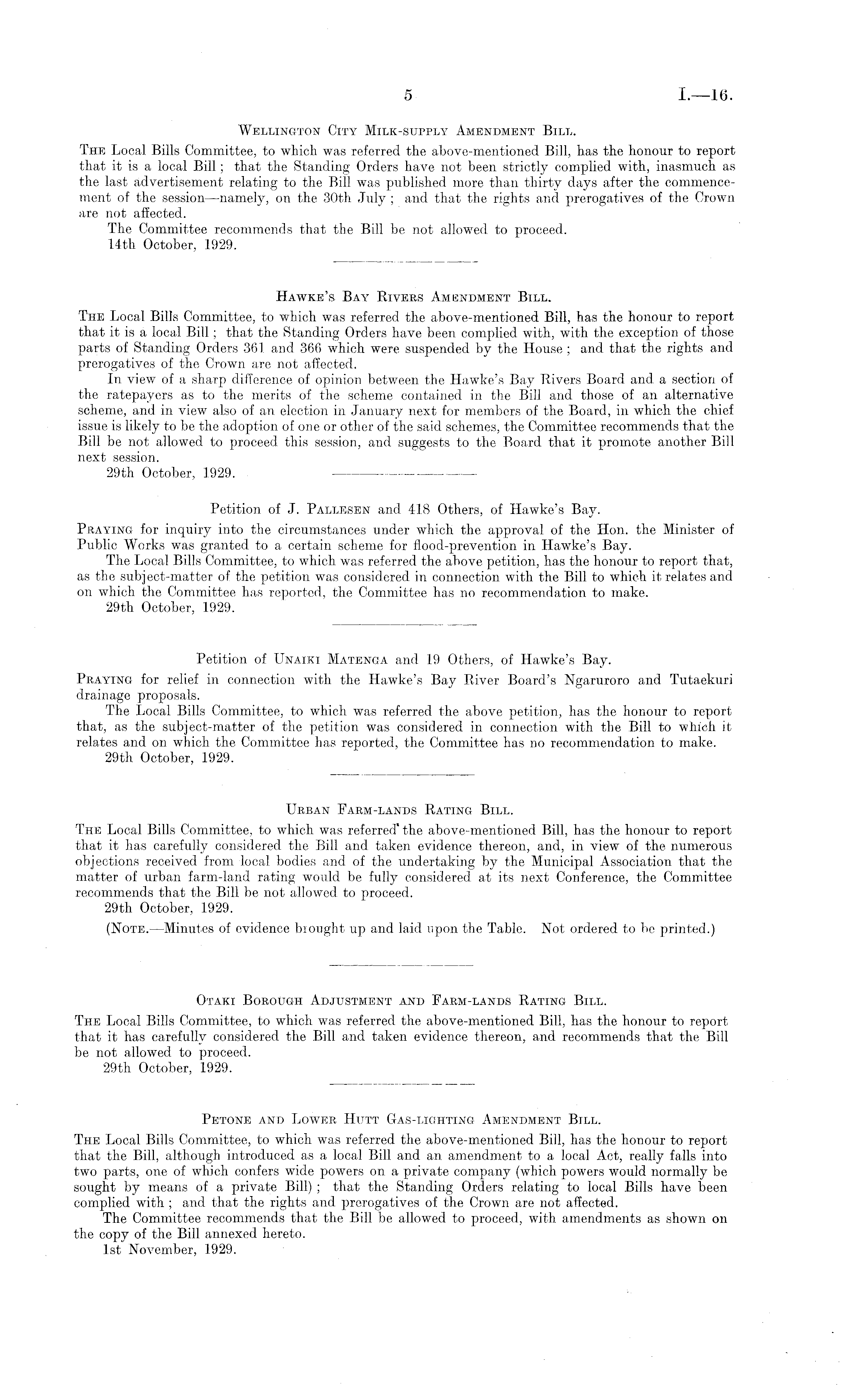 Otaki Borough Adjustment and Farm-lands Rating Bill. The Local Bills Committee, to which was referred the above-mentioned Bill, has the honour to report that it has carefully considered the Bill and taken evidence thereon, and recommends that the Bill be not allowed to proceed. 29th October, 1929.