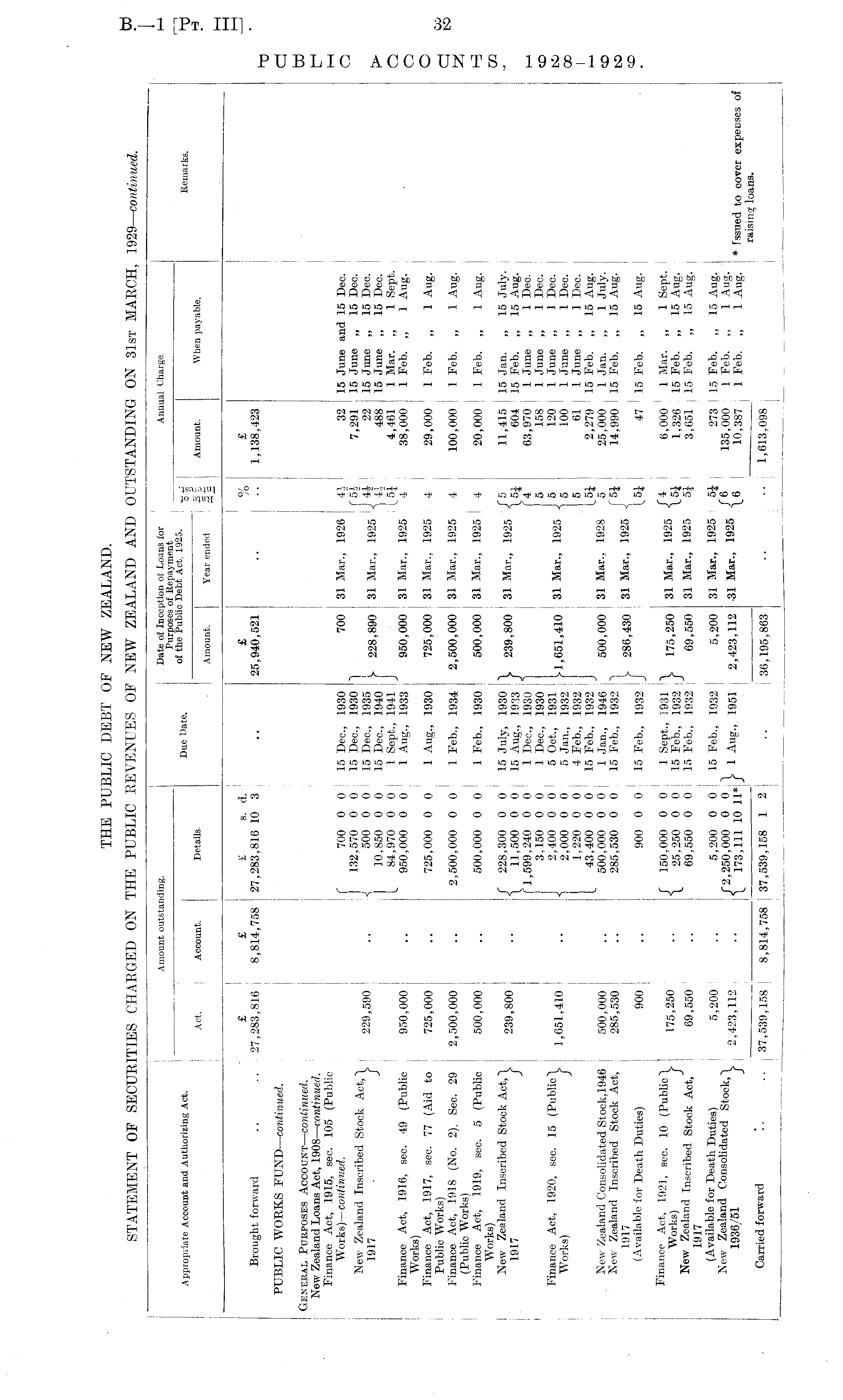 THE PUBLIC DEBT OF NEW ZEALAND. STATEMENT OF SECURITIES CHARGED ON THE PUBLIC REVENUES OF NEW ZEALAND AND OUTSTANDING ON 31st MARCH, 1929-continued.