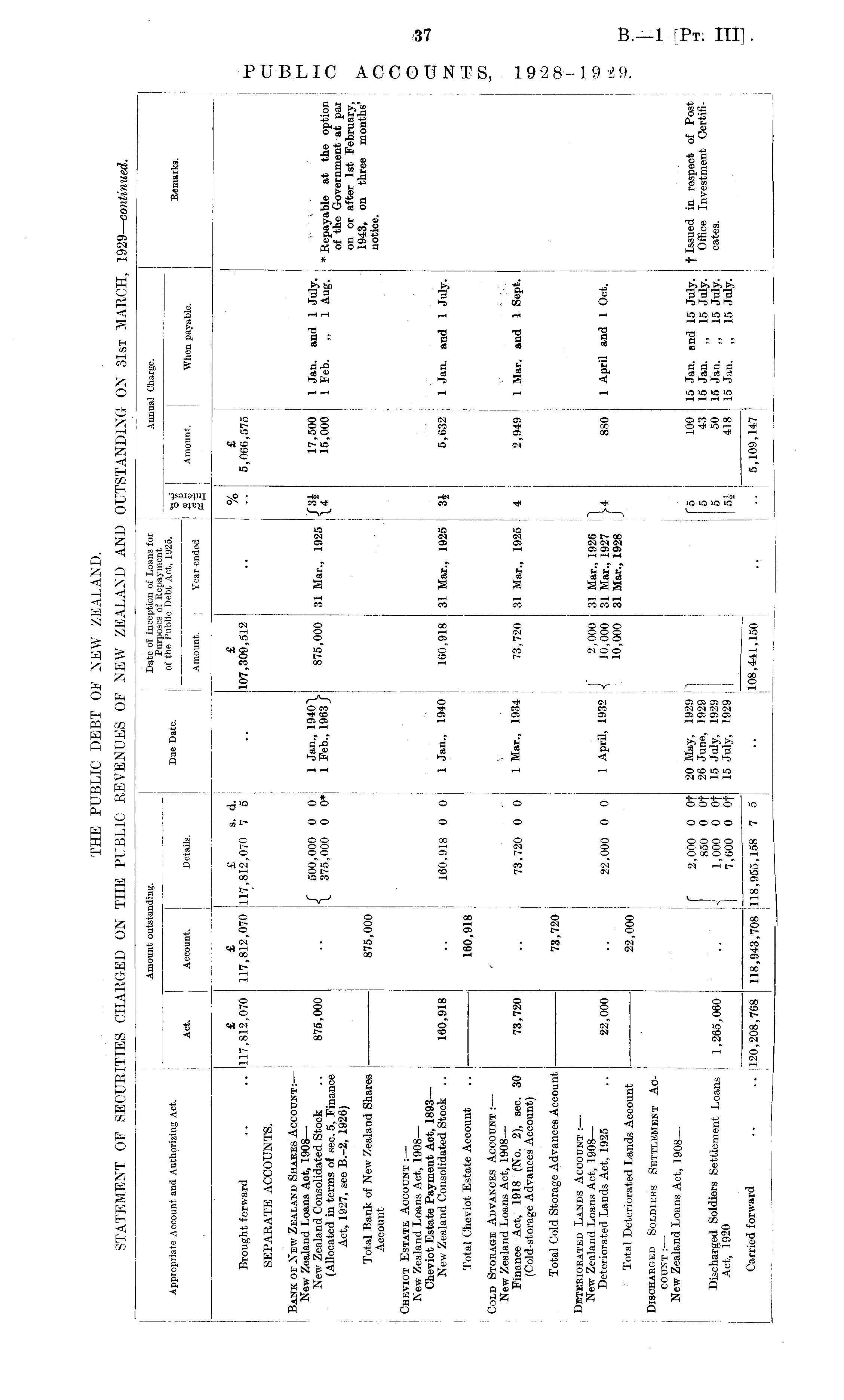 THE PUBLIC DEBT OF NEW ZEALAND. STATEMENT OF SECURITIES CHARGED ON THE PUBLIC REVENUES OF NEW ZEALAND AND OUTSTANDING ON 31st MARCH, 1929-continued.