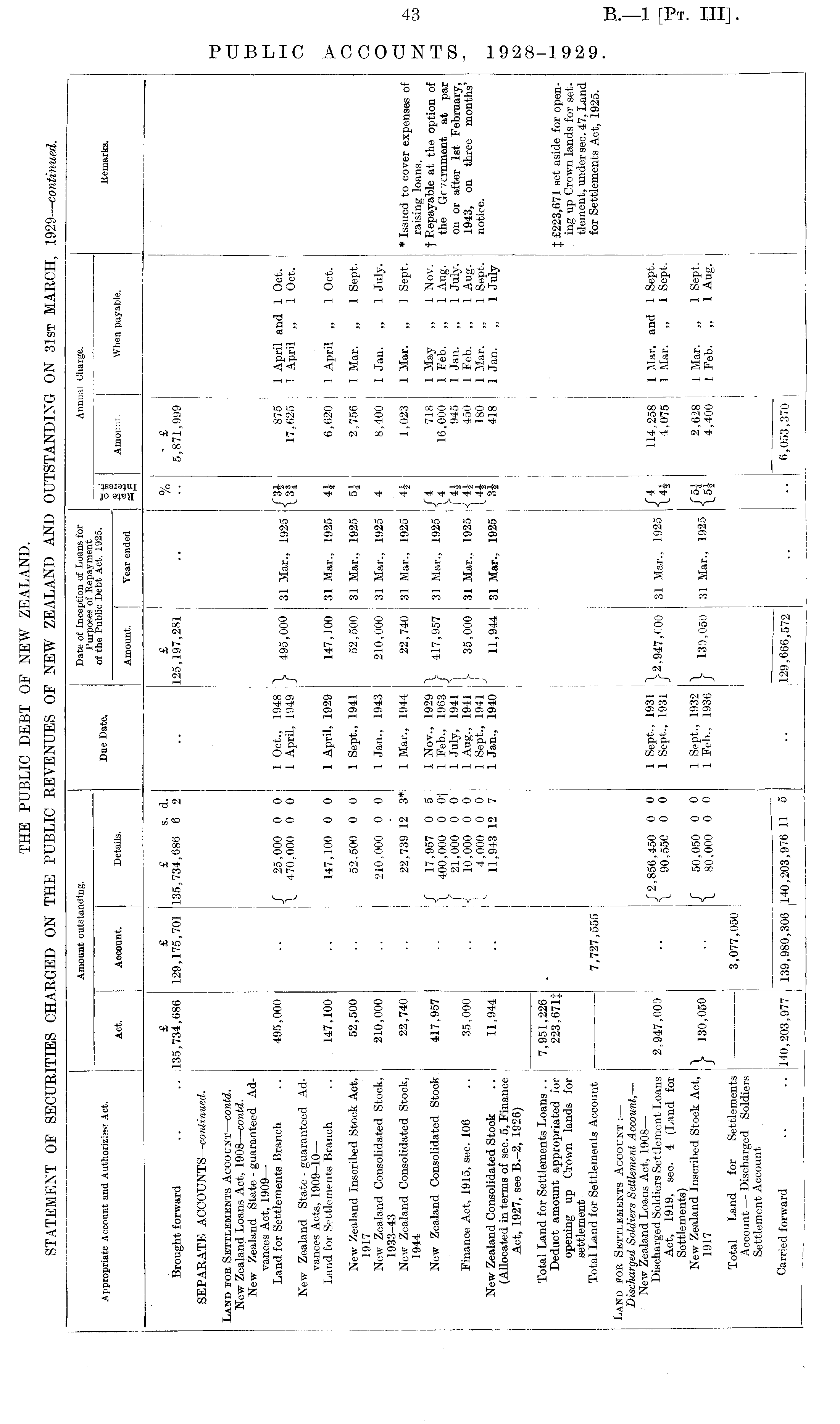 THE PUBLIC DEBT OF NEW ZEALAND. STATEMENT OF SECURITIES CHARGED ON THE PUBLIC REVENUES OF NEW ZEALAND AND OUTSTANDING ON 31st MARCH, 1929-continued.