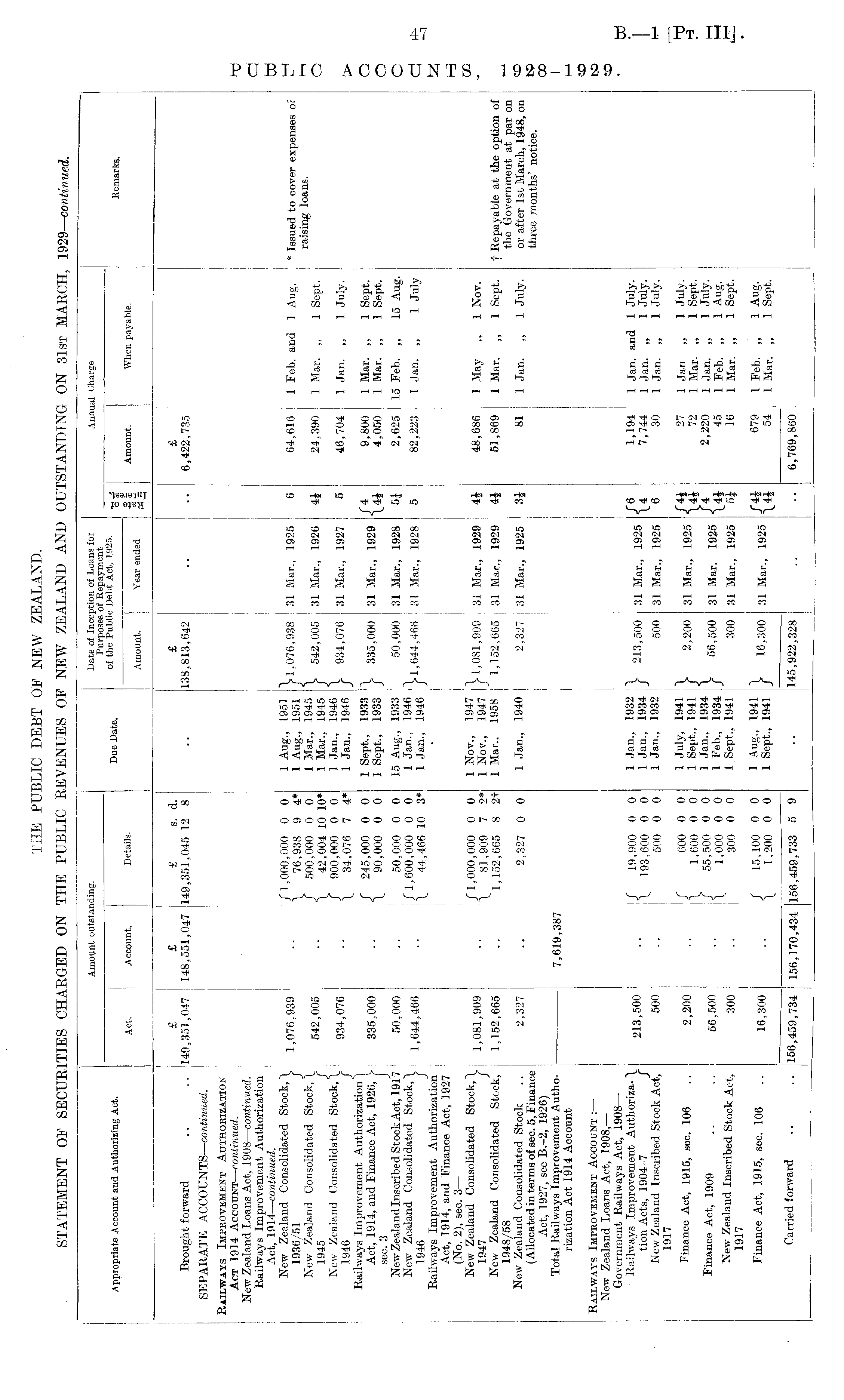 THE PUBLIC DEBT OF NEW ZEALAND. STATEMENT OF SECURITIES CHARGED ON THE PUBLIC REVENUES OF NEW ZEALAND AND OUTSTANDING ON 31st MARCH, 1929-continued.