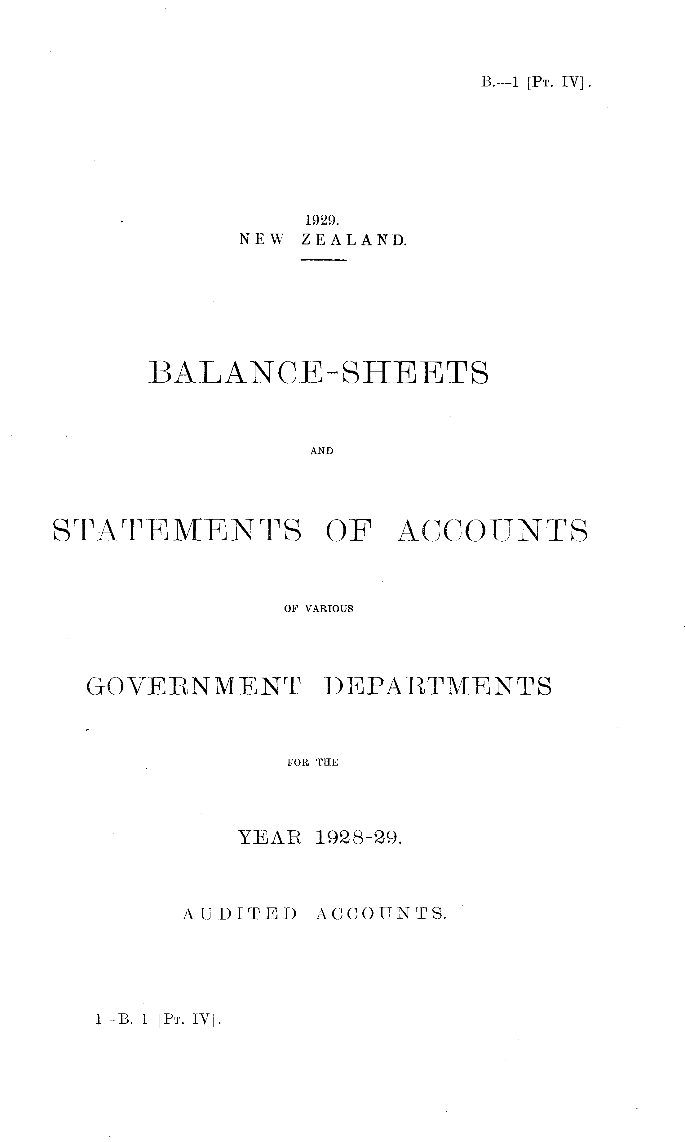 1929. NEW ZEALAND. BALANCE-SHEETS AND STATEMENTS OF ACCOUNTS OF VARIOUS GOVERNMENT DEPARTMENTS FOR THE YEAR 1928-29. AUDI TE I) ACGOIT N T S.