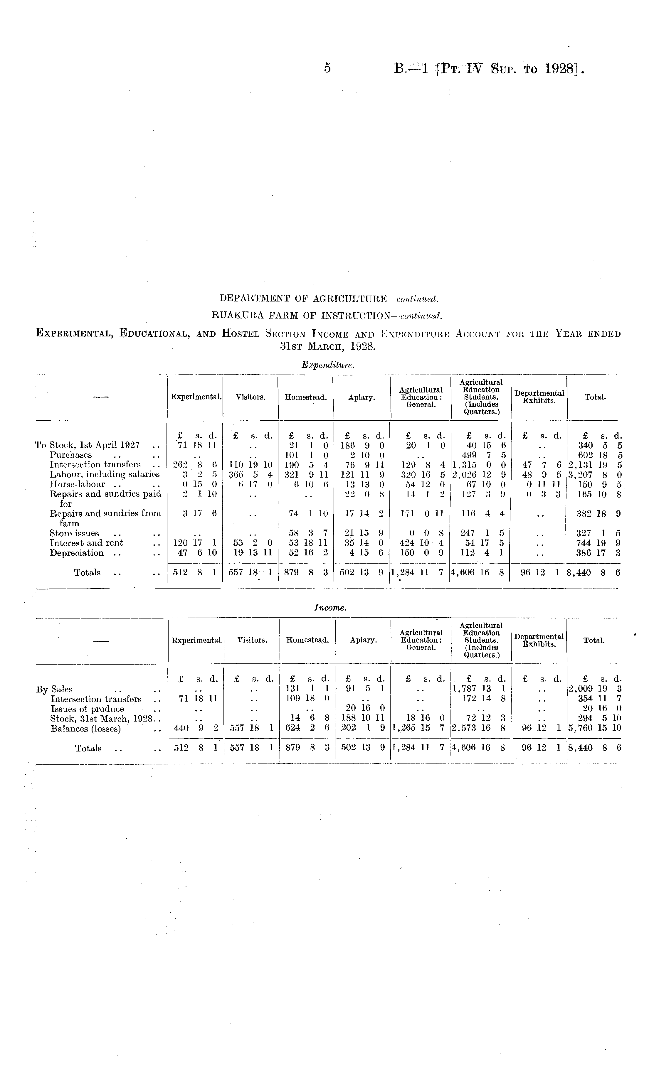 DEPARTMENT OF AGRICULTURE—continued. RUAKURA FARM OF INSTRUCTION—continued. Experimental, Educational, and Hostel Section Income and Expenditure Account for the Year ended 31st March, 1928.