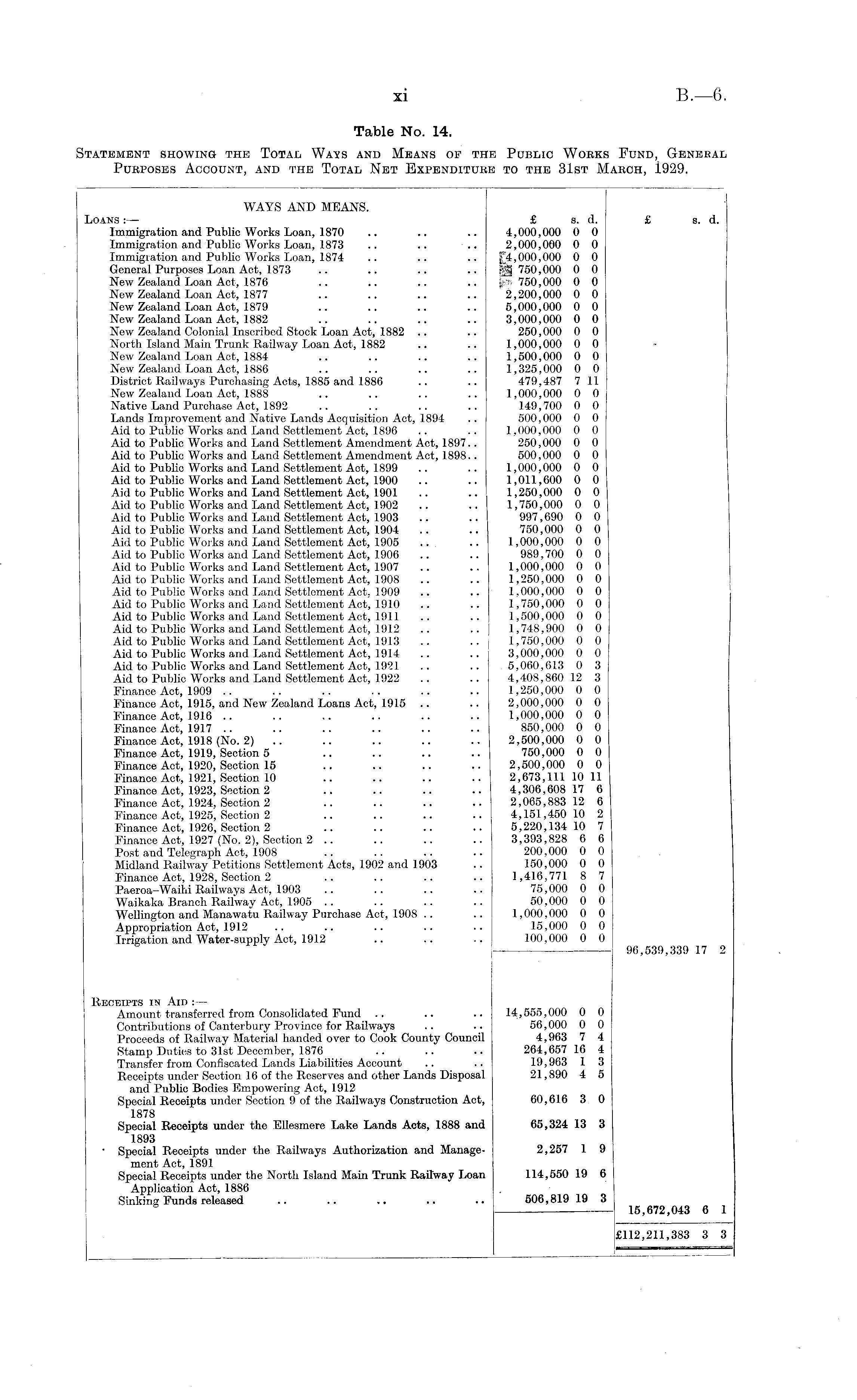 Table No. 14. Statement showing the Total Ways and Means of the Public Works Fund, General Purposes Account, and the Total Net Expenditure to the 31st March, 1929.