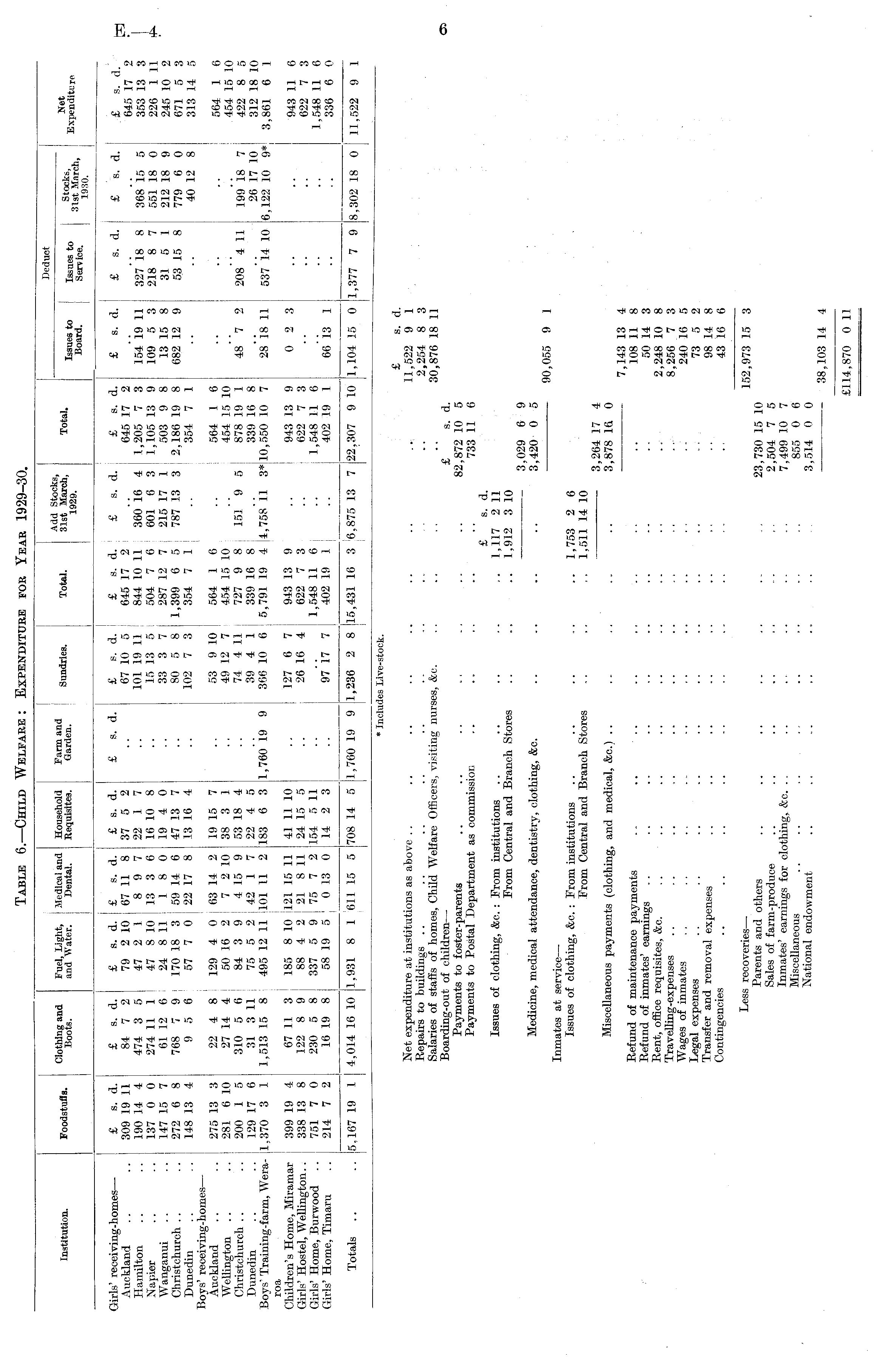 Table 6.—Child Welfare: Expenditure for Year 1929-30.