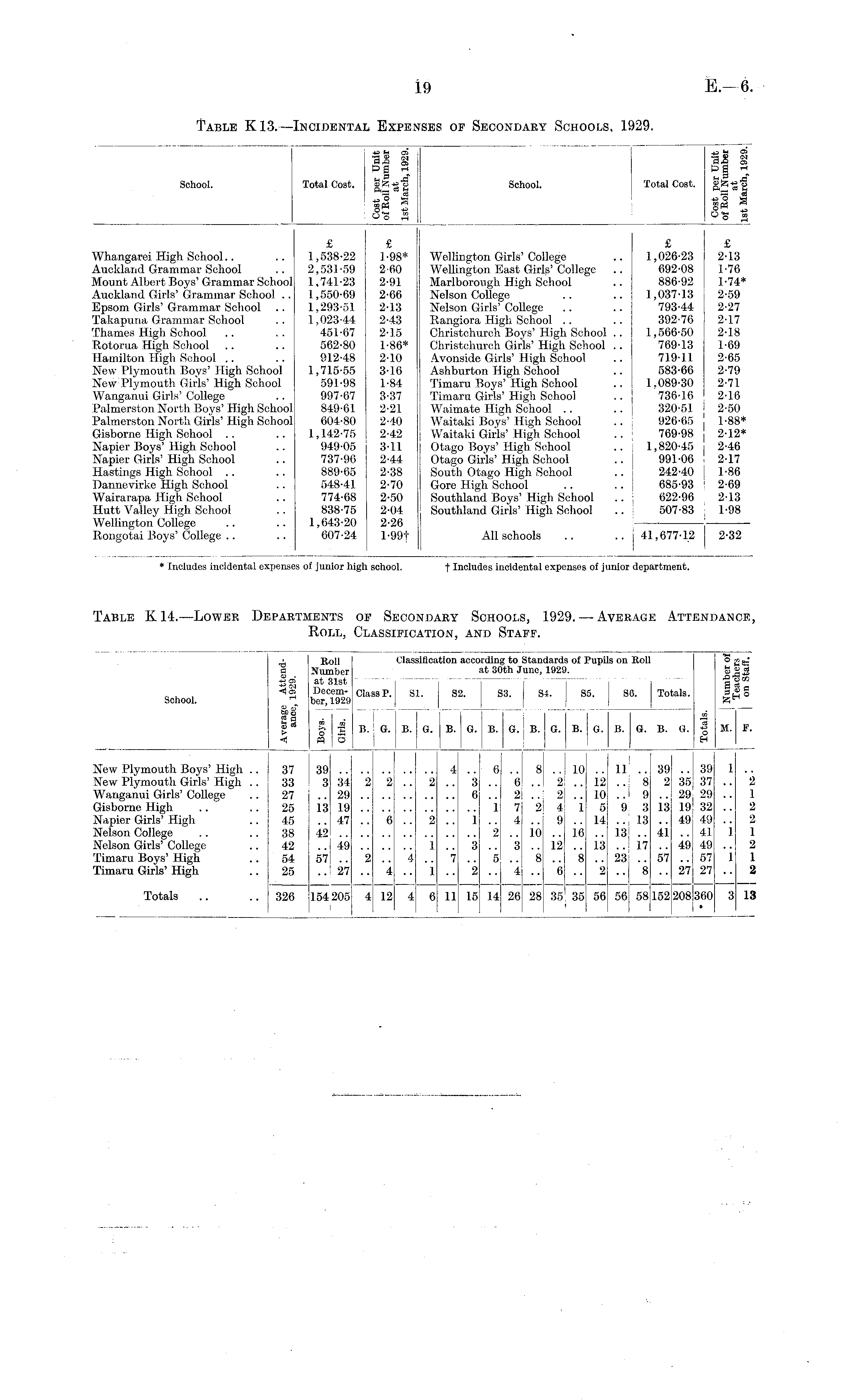 Table K13.—lncidental Expenses of Secondary Schools, 1929.