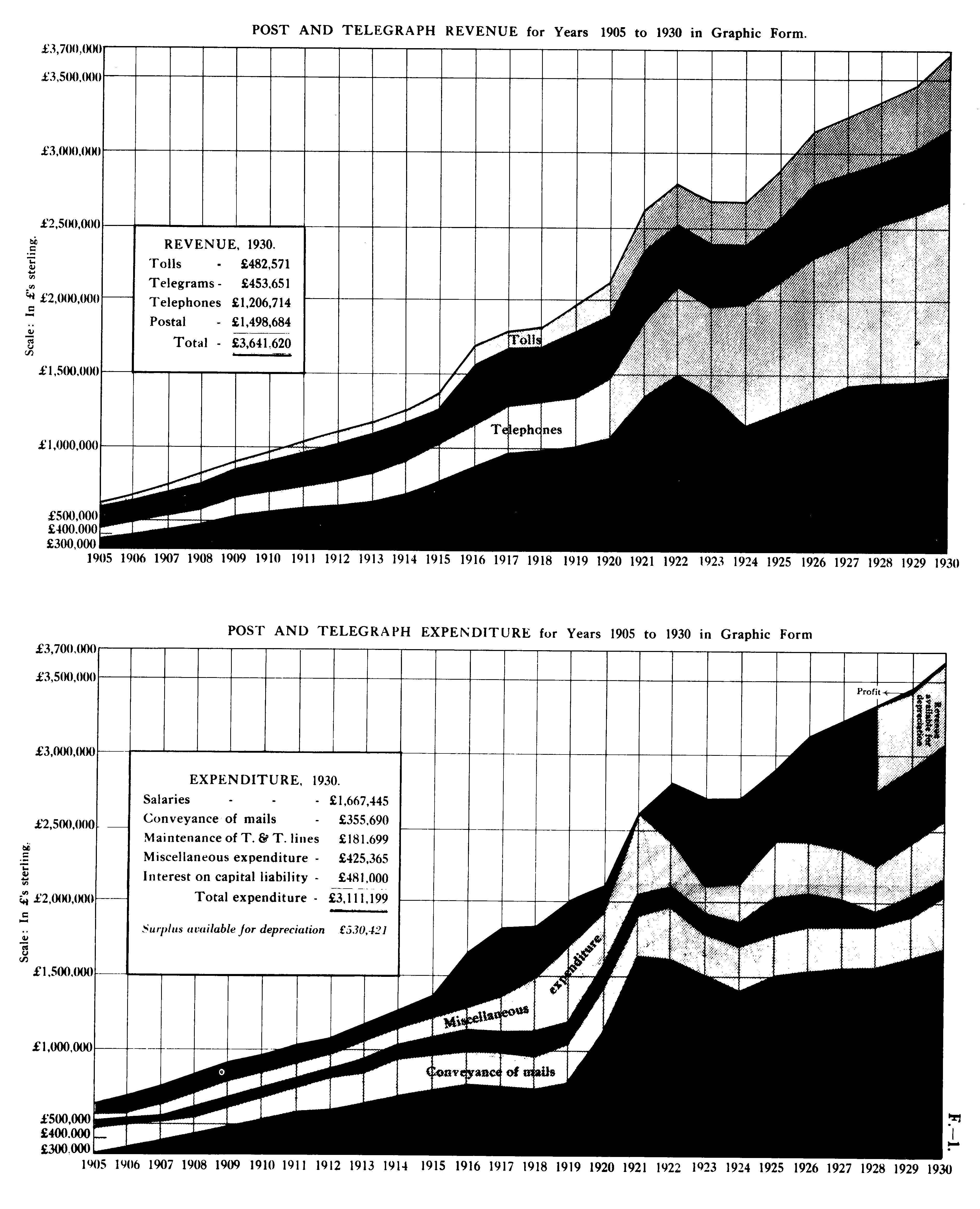 POST AND TELEGRAPH EXPENDITURE for Years 1905 to 1930 in Graphic Form.