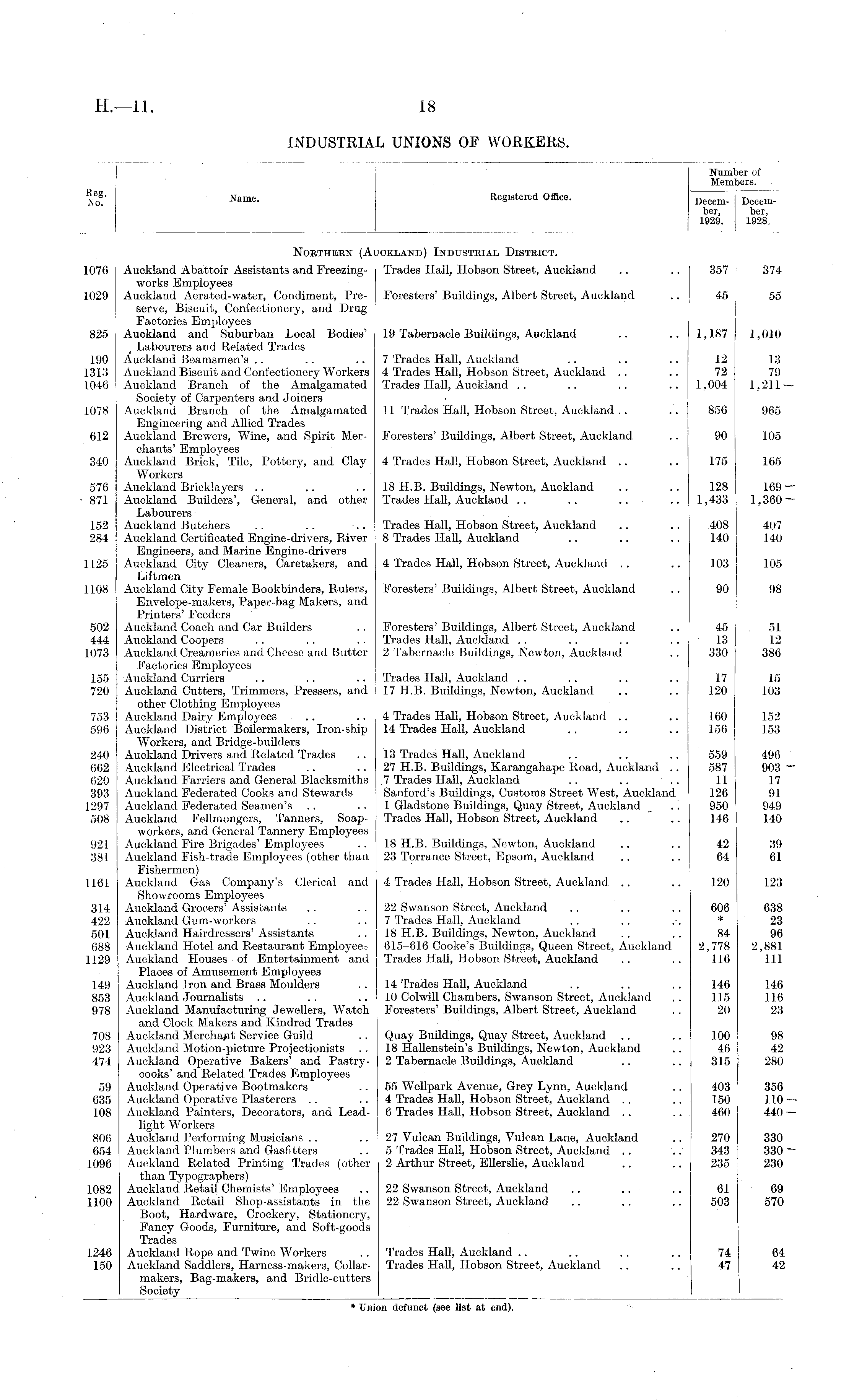 Number of Members. No 8 ' Name - Registered Office. Decern- Decernber, ber, 1929. 1928. Northern (Auckland) Industrial District. 1076 Auckland Abattoir Assistants and Freezing- Trades Hail, Hobson Street, Auckland .. .. 357 374 works Employees 1029 Auckland Aerated-water, Condiment, Pre- Foresters' Buildings, Albert Street, Auckland .. 45 55 serve, Biscuit, Confectionery, and Drug Factories Employees 825 Auckland and Suburban Local Bodies' 19 Tabernacle Buildings, Auckland .. .. 1,187 1,010 Labourers and Related Trades 190 Auckland Beamsmen's .. .. 7 Trades Hall, Auckland .. .. .. 12 13 1313 Auckland Biscuit and Confectionery Workers 4 Trades Hall, Hobson Street, Auckland .. .. 72 79 1046 Auckland Branch of the Amalgamated Trades Hall, Auckland .. .. .. .. 1,004 1,211Society of Carpenters and Joiners 1078 Auckland Branch of the Amalgamated 11 Trades Hall, Hobson Street, Auckland .. .. 856 965 Engineering and Allied Trades 612 Auckland Brewers, Wine, and Spirit Mer- Foresters' Buildings, Albert Street, Auckland .. 90 105 chants' Employees 340 Auckland Brick, Tile, Pottery, and Clay 4 Trades Hall, Hobson Street, Auckland .. .. 175 165 Workers 576 Auckland Bricklayers .. .. 18 H.B. Buildings, Newton, Auckland .. .. 128 169 - 871 Auckland Builders', General, and other Trades Hall, Auckland .. .. . . .. 1,433 1,360 ~ Labourers 152 Auckland Butchers .. .. .. Trades Hall, Hobson Street, Auckland .. . . 408 407 284 Auckland Certificated Engine-drivers, River 8 Trades Hall, Auckland .. .. .. 140 140 Engineers, and Marine Engine-drivers 1125 Auckland City Cleaners, Caretakers, and 4 Trades Hall, Hobson Street, Auckland .. .. 103 105 Liftmen 1108 Auckland City Female Bookbinders, Rulers, Foresters' Buildings, Albert Street, Auckland .. 90 98 Envelope-makers, Paper-bag Makers, and Printers' Feeders 502 Auckland Coach and Car Builders .. Foresters' Buildings, Albert Street, Auckland .. 45 51 444 Auckland Coopers .. .. .. Trades Hall, Auckland .. .. .. .. 13 12 1073 Auckland Creameries and Cheese and Butter 2 Tabernacle Buildings, Newton, Auckland .. 330 386 Factories Employees 155 Auckland Curriers .. .. . . Trades Hall, Auckland .. .. .. .. 17 15 720 Auckland Cutters, Trimmers, Pressors, and 17 H.B. Buildings, Newton, Auckland .. .. 120 103 other Clothing Employees 753 Auckland Dairy Employees .. 4 Trades Hall, Hobson Street, Auckland .. .. 160 152 596 Auckland District Boilermakers, Iron-ship 14 Trades Hall, Auckland .. .. . . 156 153 W T orkers, and Bridge-builders 240 Auckland Drivers and Related Trades .. 13 Trades Hall, Auckland .. .. .. 559 496 662 Auckland Electrical Trades .. .. 27 H.B. Buildings, Karangahape Road, Auckland .. 587 903 620 Auckland Farriers and General Blacksmiths 7 Trades Hall, Auckland .. .. .. 11 17 393 Auckland Federated Cooks and Stewards Sanford's Buildings, Customs Street West, Auckland 126 91 1297 Auckland Federated Seamen's .. 1 Gladstone Buildings, Quay Street, Auckland . . 950 949 508 Auckland Fellmongers, Tanners, Soap- Trades Hall, Hobson Street, Auckland .. .. 146 140 workers, and General Tannery Employees 921 Auckland Fire Brigades' Employees .. 18 H.B. Buildings, Newton, Auckland .. . . 42 39 381 Auckland Fish-trade Employees (other than 23 Torrance Street, Epsom, Auckland .. .. 64 61 Fishermen) 1161 Auckland Gas Company's Clerical and 4 Trades Hall, Hobson Street, Auckland .. .. 120 123 Showrooms Employees 314 Auckland Grocers' Assistants .. 22 Swanson Street, Auckland .. . . .. 606 638 422 Auckland Gum-workers .. 7 Trades Hall, Auckland . . .. . . * 23 501 Auckland Hairdressers' Assistants .. 18 H.B. Buildings, Newton, Auckland . . .. 84 96 688 Auckland Hotel and Restaurant Employee-- 615-616 Cooke's Buildings, Queen Street, Auckland 2,778 2,881 1129 Auckland Houses of Entertainment and Trades Hall, Hobson Street, Auckland . . .. 116 111 Places of Amusement Employees 149 Auckland Iron and Brass Moulders .. 14 Trades Hall, Auckland .. .. .. 146 146 853 Auckland Journalists .. .. .. 10 Colwill Chambers, Swanson Street, Auckland .. 115 116 978 Auckland Manufacturing Jewellers, Watch Foresters' Buildings, Albert Street, Auckland .. 20 23 and Clock Makers and Kindred Trades 708 Auckland Merchant Service Guild .. Quay Buildings, Quay Street, Auckland .. .. 100 98 923 Auckland Motion-picture Projectionists .. 18 Hallenstein's Buildings, Newton, Auckland .. 46 42 474 Auckland Operative Bakers' and Pastry- 2 Tabernacle Buildings, Auckland .. .. 315 280 cooks' and Related Trades Employees 59 Auckland Operative Bootmakers .. 55 Wellpark Avenue, Grey Lynn, Auckland .. 403 356 635 Auckland Operative Plasterers .. 4 Trades Hall, Hobson Street, Auckland .. .. 150 110 108 Auckland Painters, Decorators, and Lead- 6 Trades Hall, Hobson Street, Auckland .. .. 460 440 light Workers 806 Auckland Performing Musicians .. 27 Vulcan Buildings, Vulcan Lane, Auckland .. 270 330 654 Auckland Plumbers and Gasfitters .. 5 Trades Hall, Hobson Street, Auckland .. .. 343 330 1096 Auckland Related Printing Trades (other 2 Arthur Street, Ellerslie, Auckland .. .. 235 230 than Typographers) 1082 Auckland Retail Chemists' Employees .. 22 Swanson Street, Auckland .. .. .. 61 69 1100 Auckland Retail Shop-assistants in the 22 Swanson Street, Auckland .. .. .. 503 570 Boot, Hardware, Crockery, Stationery, Fancy Goods, Furniture, and Soft-goods Trades 1246 Auckland Rope and Twine Workers .. Trades Hall, Auckland .. .. .. .. 74 64 150 Auckland Saddlers, Harness-makers, Collar- Trades Hall, Hobson Street, Auckland .. .. 47 42 makers, Bag-makers, and Bridle-cutters Society * Union defunct (see list at end).